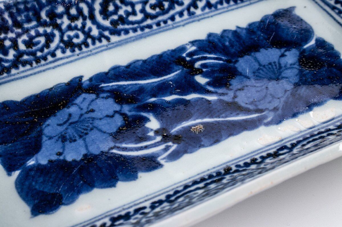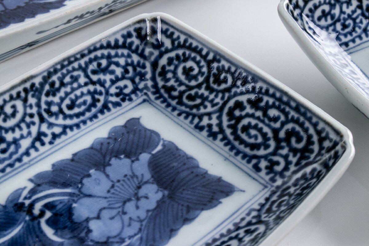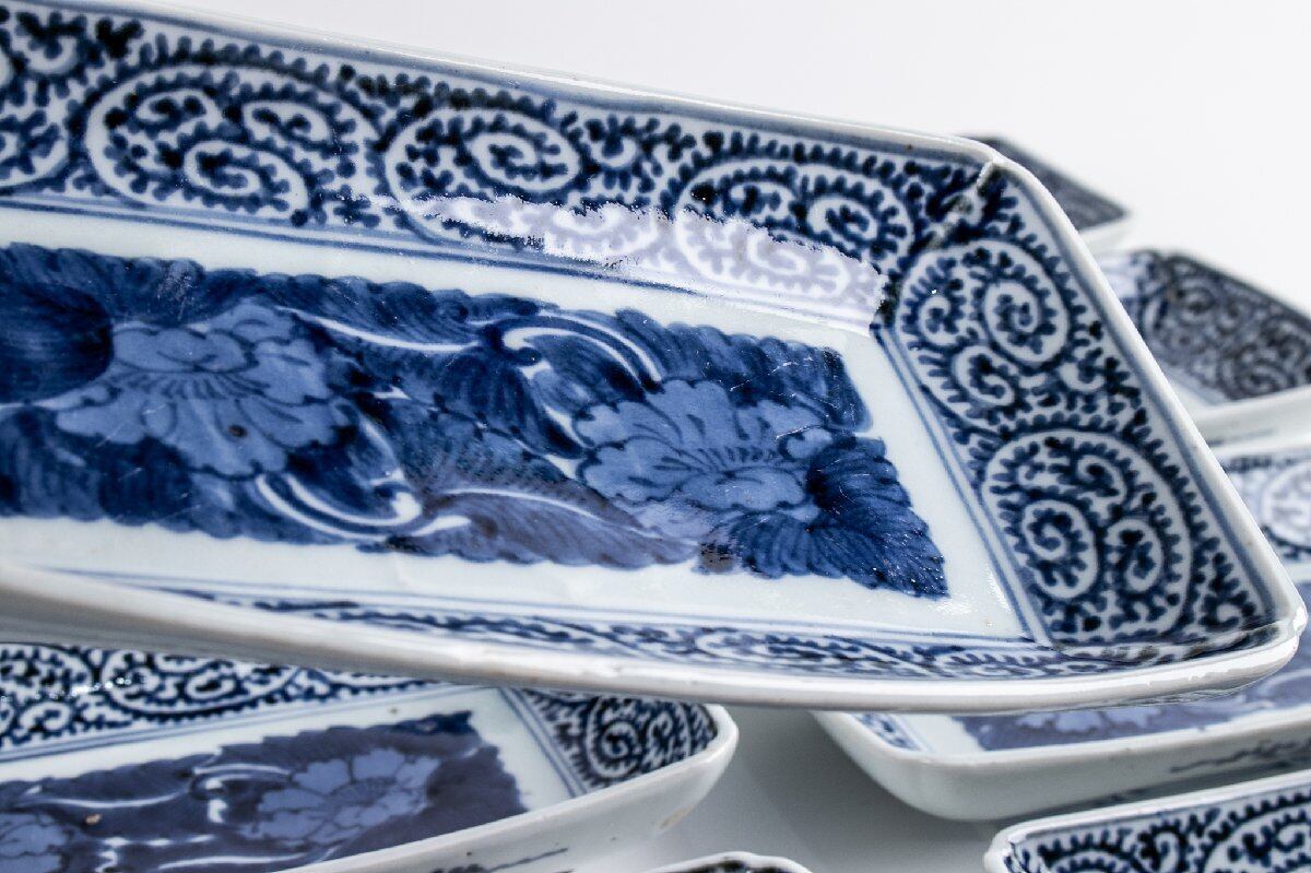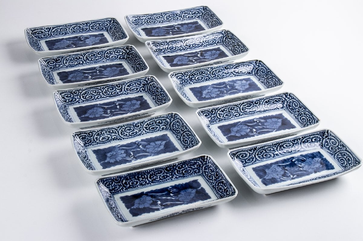 古伊万里 染付牡丹蛸唐草文長皿 10客 江戸後期 E2293A バラ売り可能です