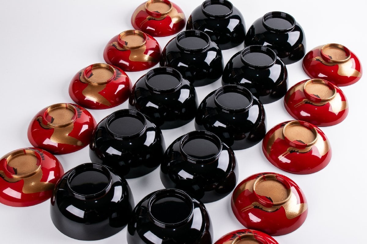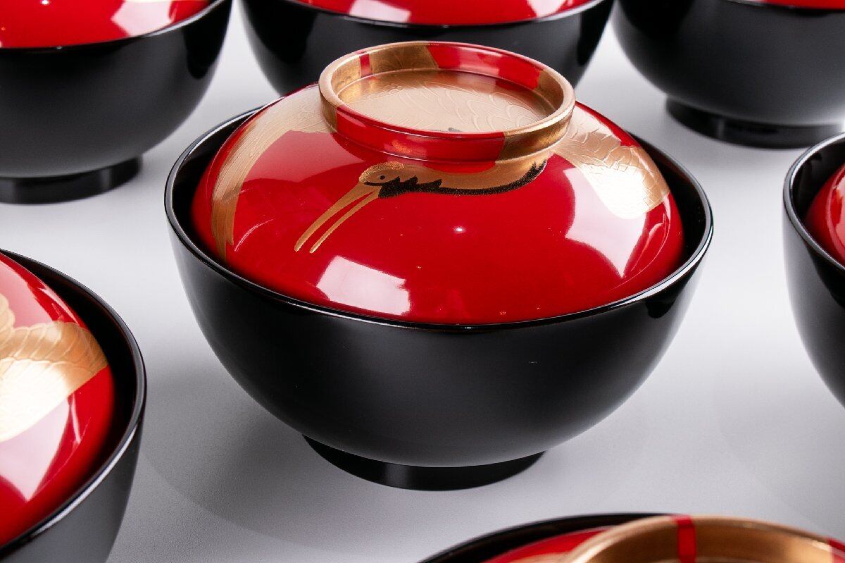 鶴松葉蒔絵煮物椀 日の出椀 10客 E1919 バラ売り可能です