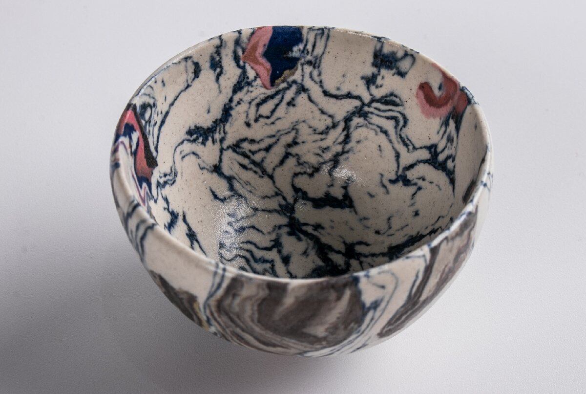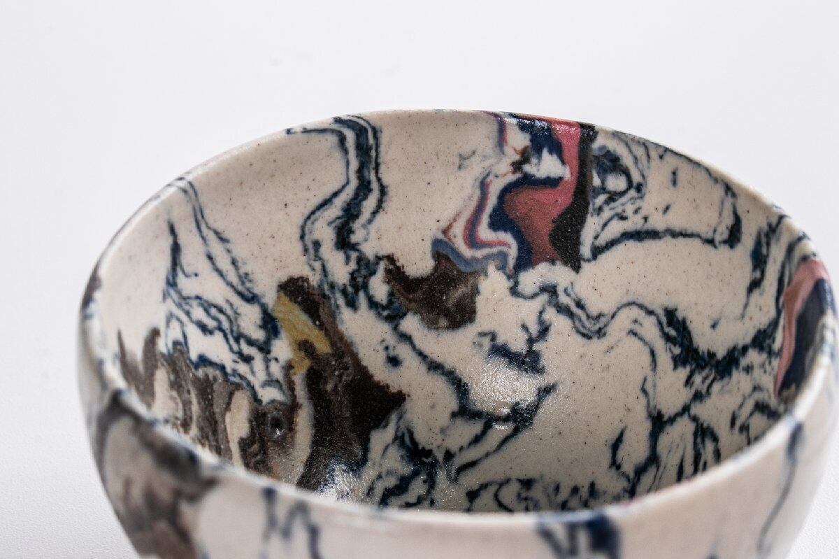 人間国宝 松井康成 練上酒呑 共箱 F010