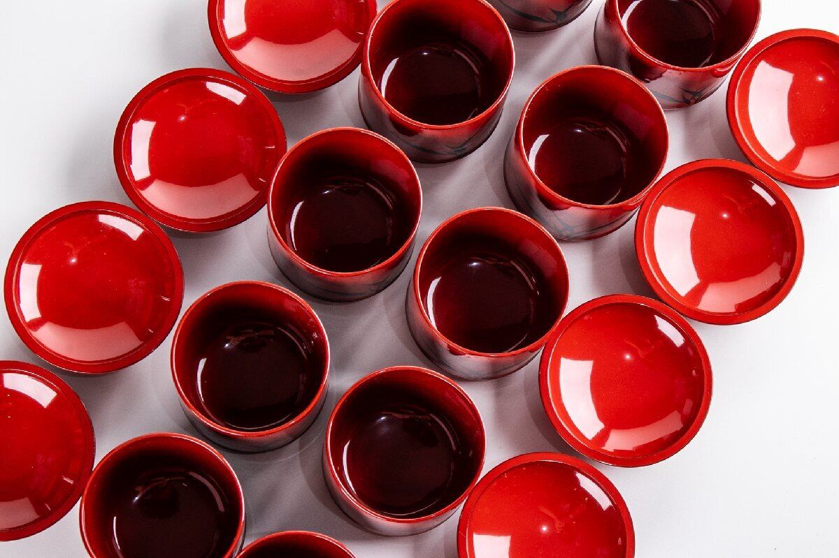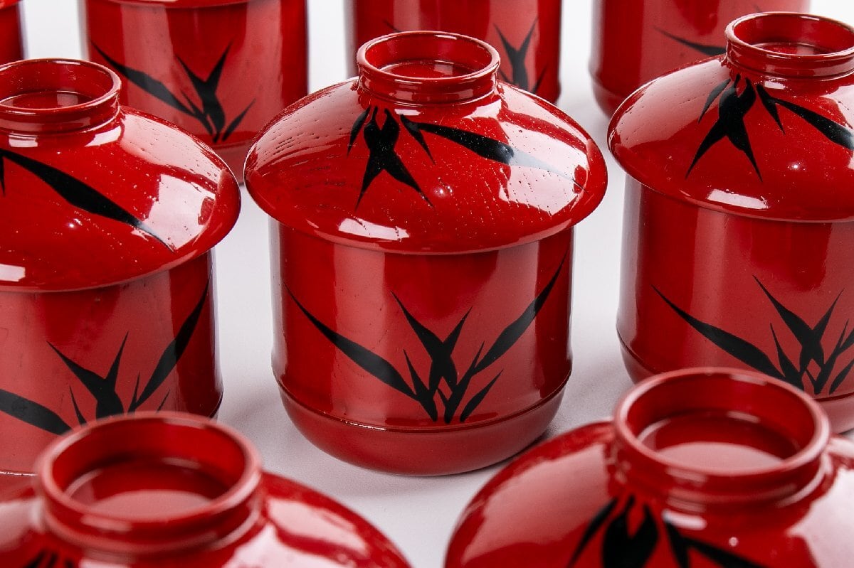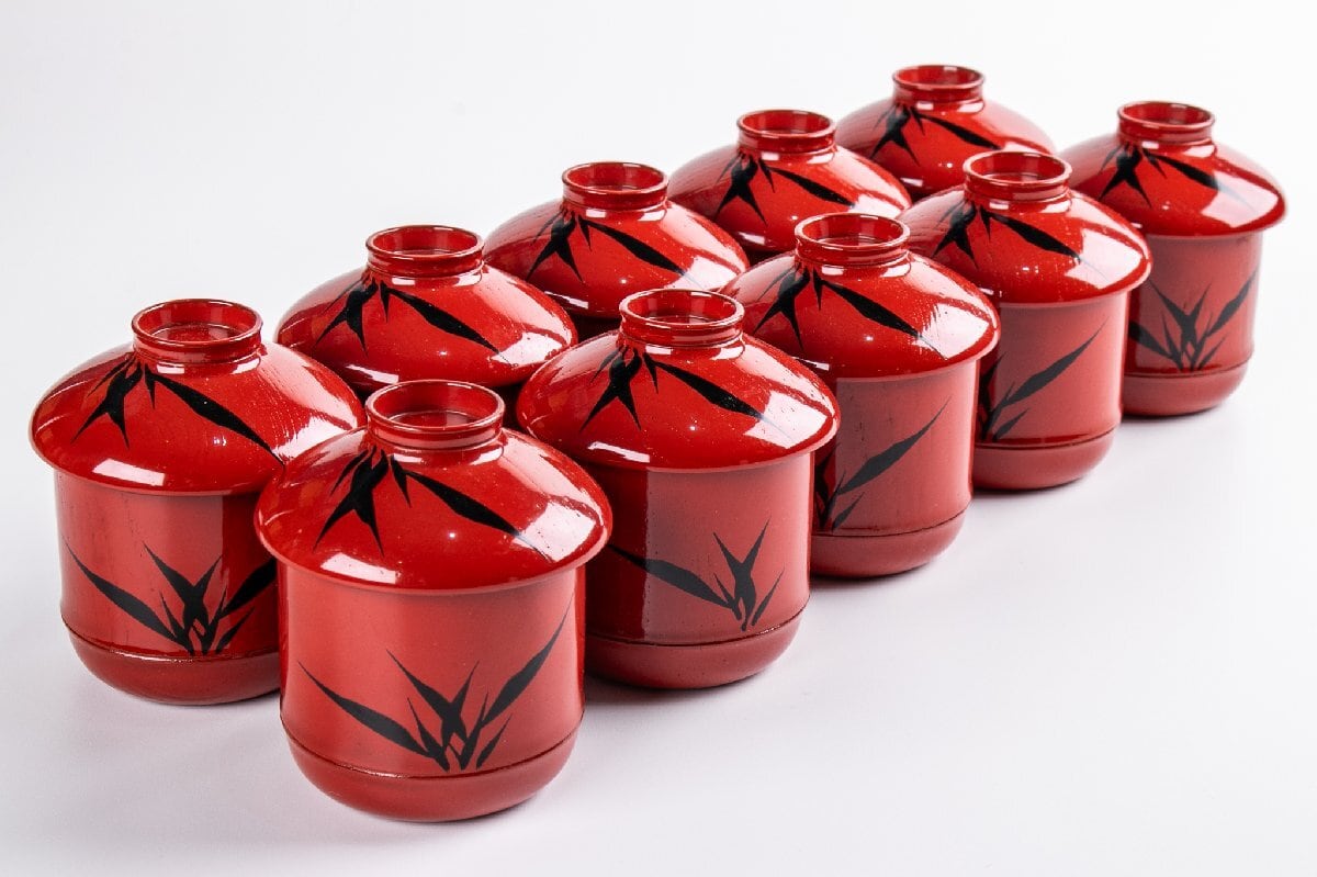 漆匠 川端近左 朱竹節小吸物椀 10客 共箱 F014