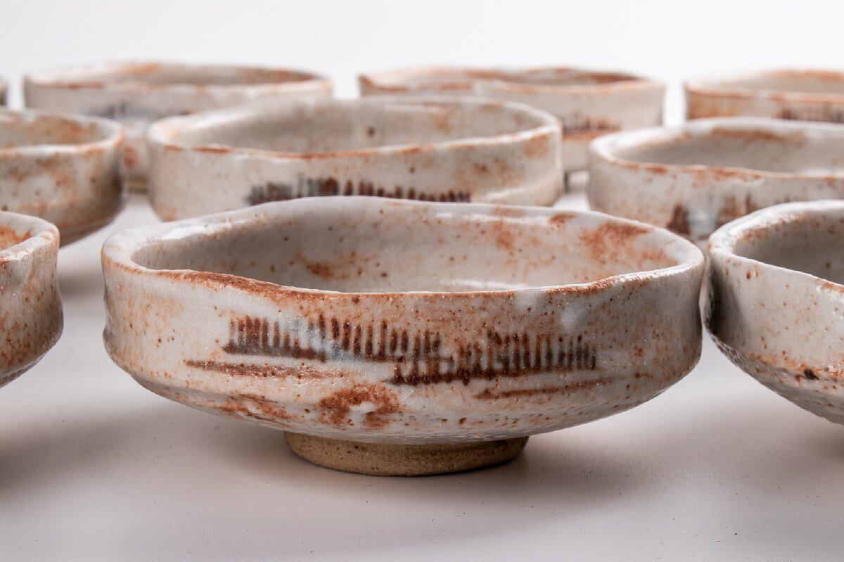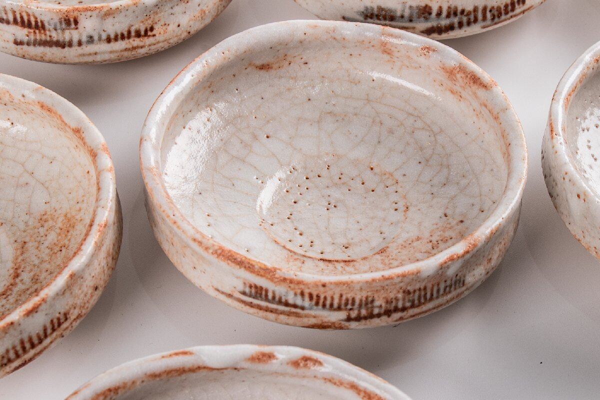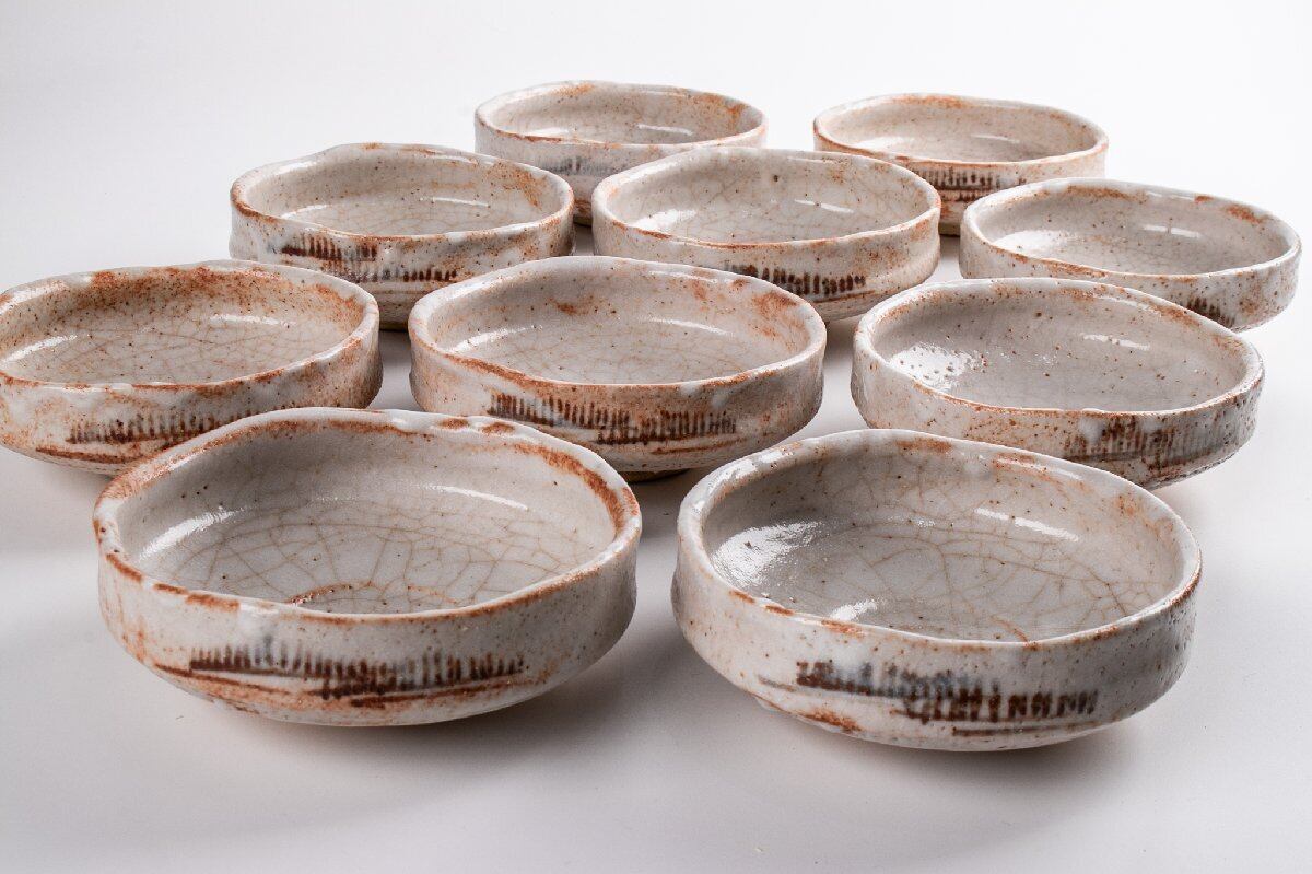 水野古麦 志野平茶碗 10客 共箱 F043B