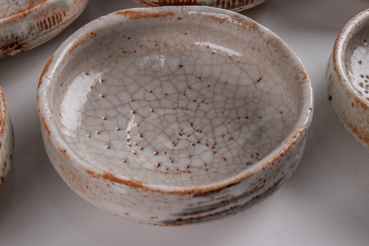 水野古麦 志野 馬盥茶碗 平茶碗 10客 共箱 F043C