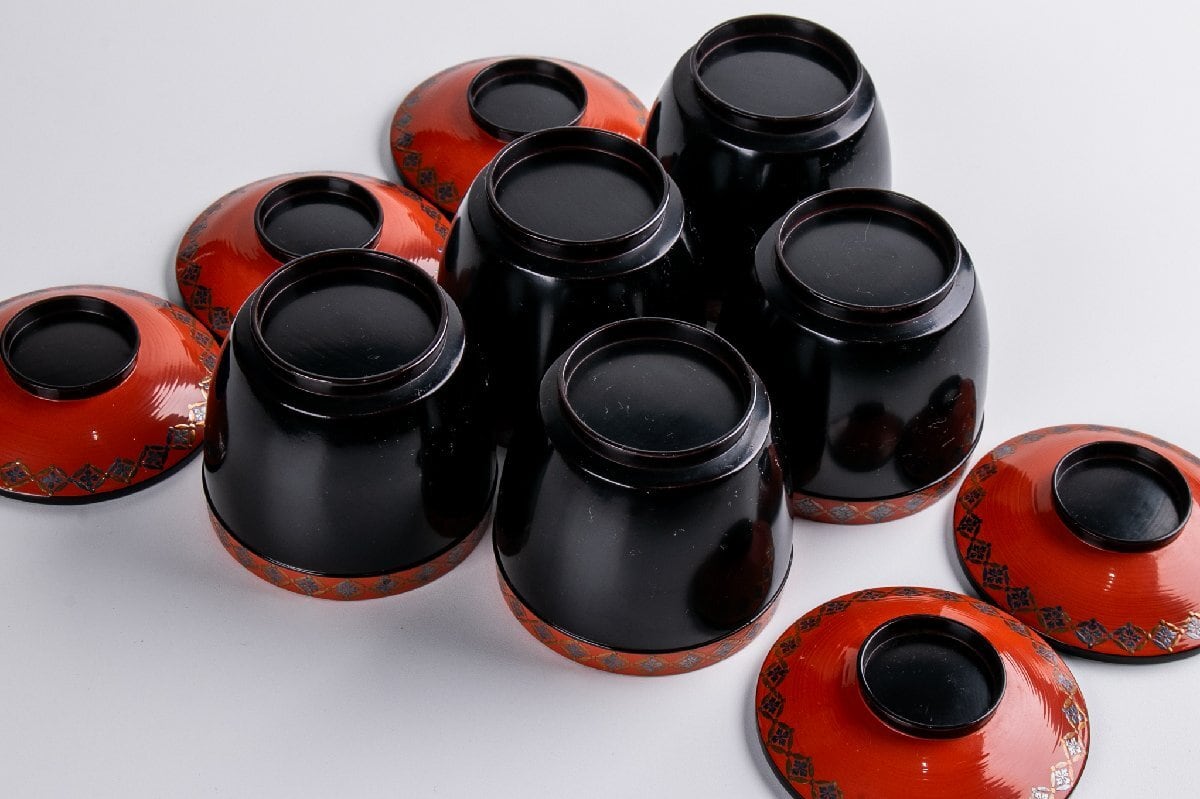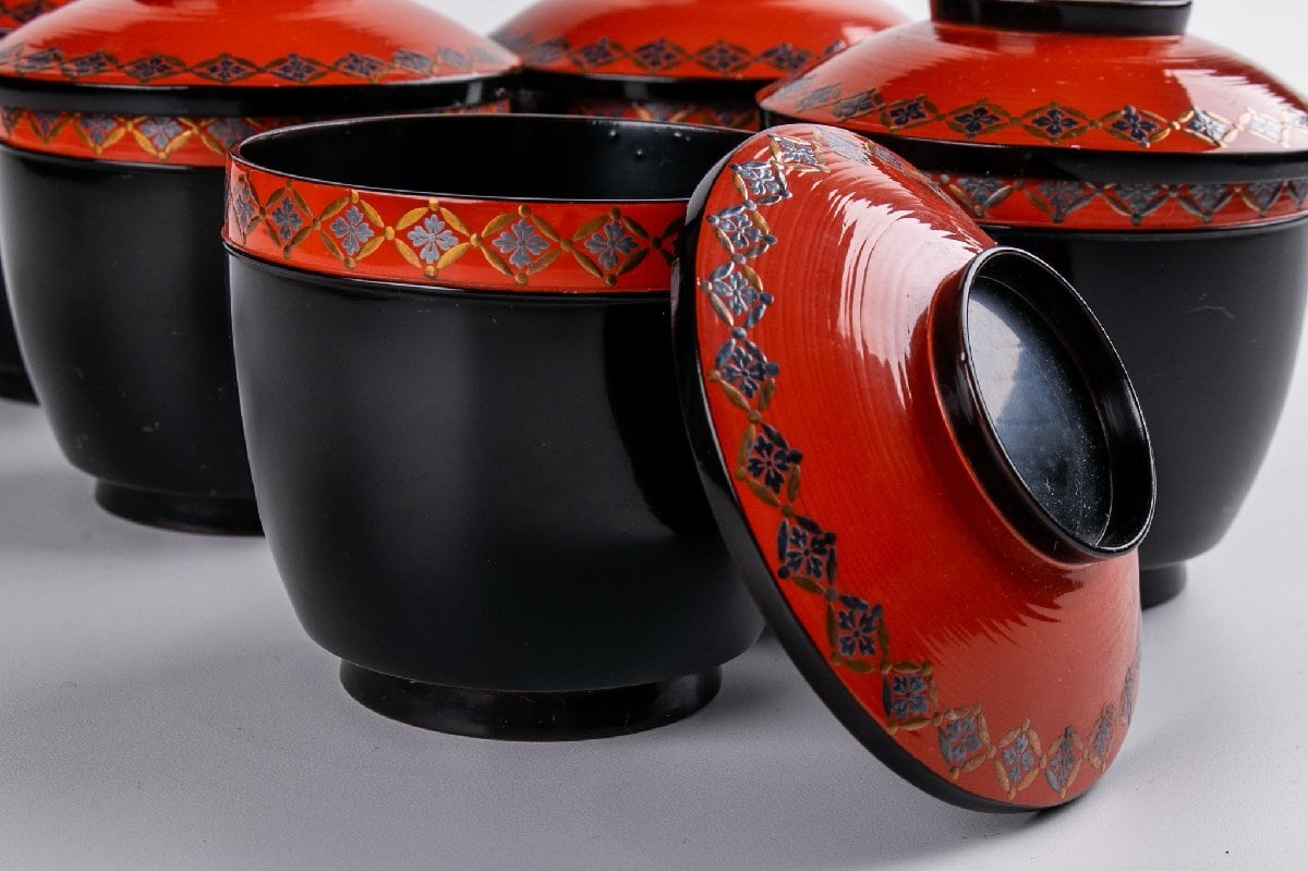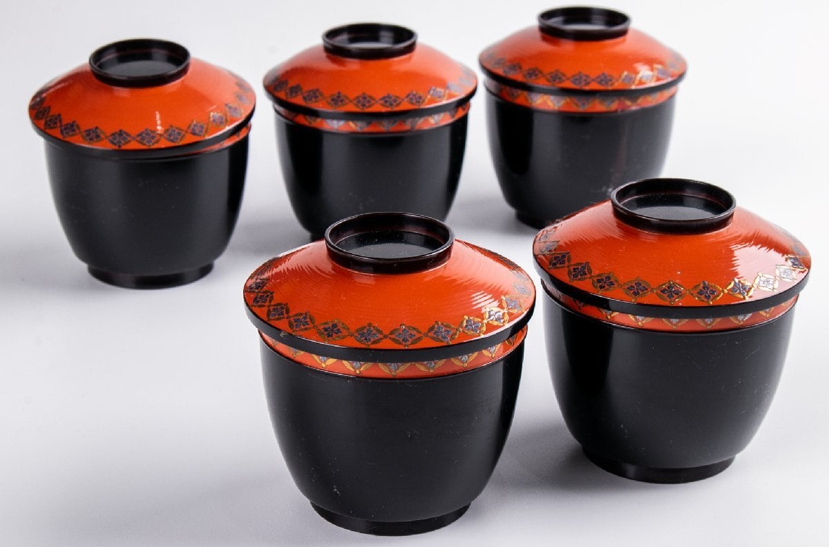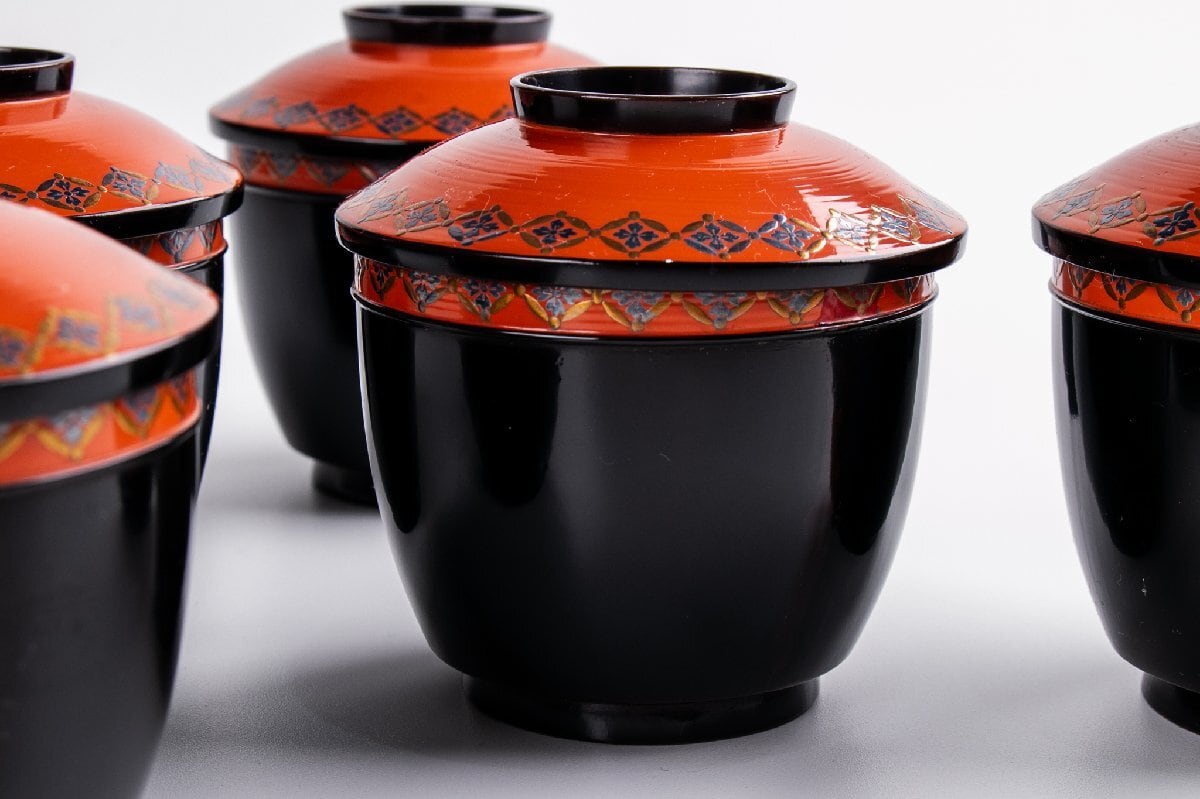 時代物 七宝繋ぎ蒔絵 小吸物椀 5客 箱付 F092