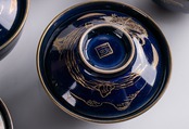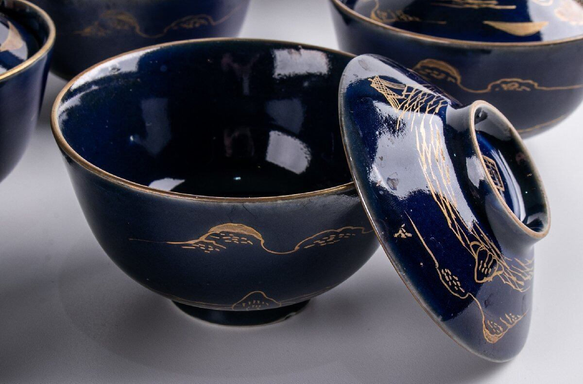 古伊万里 瑠璃釉金彩山水文蓋茶碗 10客 明治時代 F175E バラ売り可能です