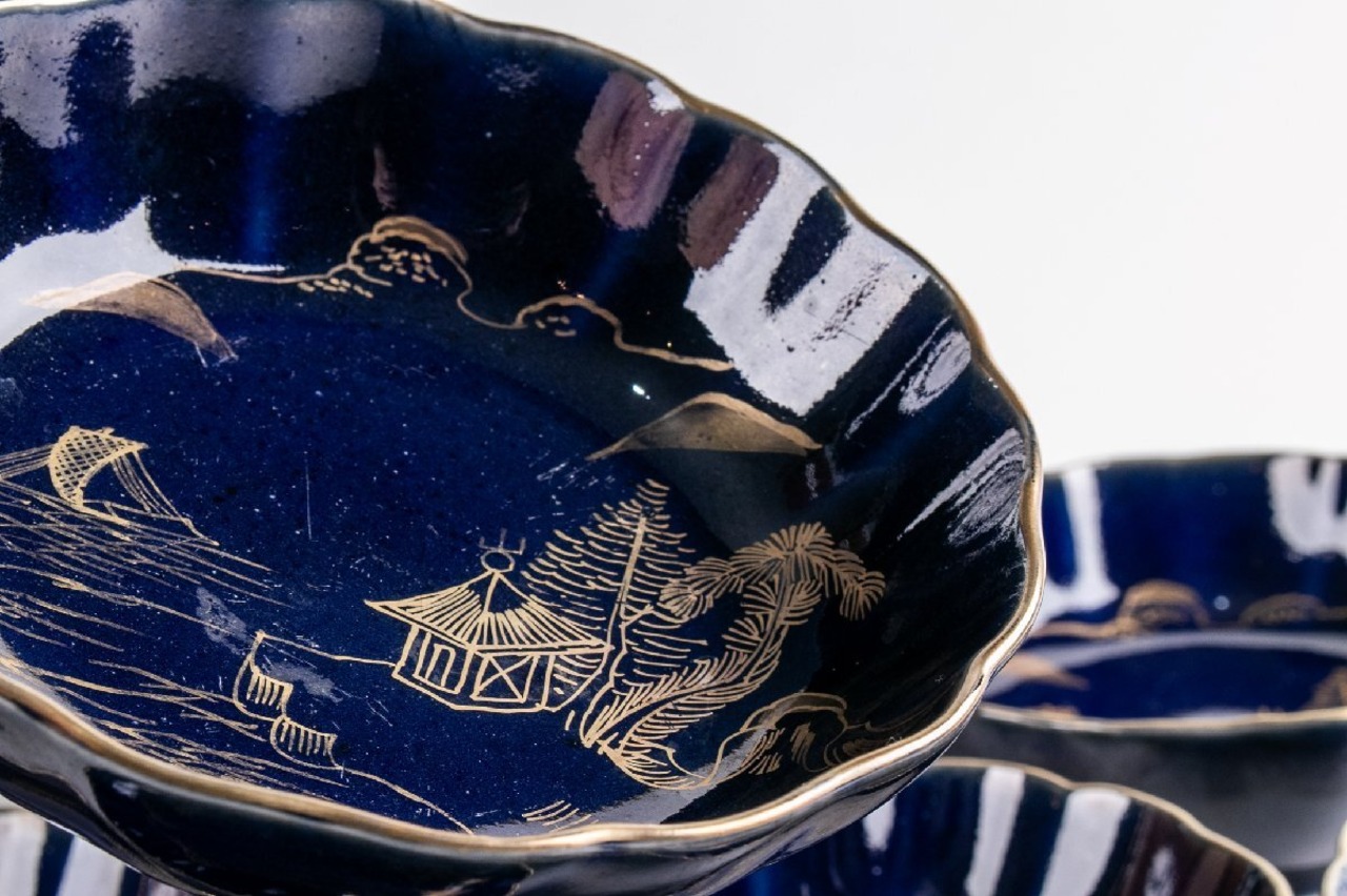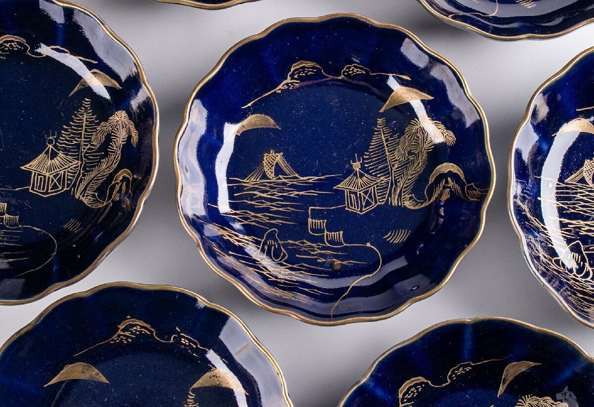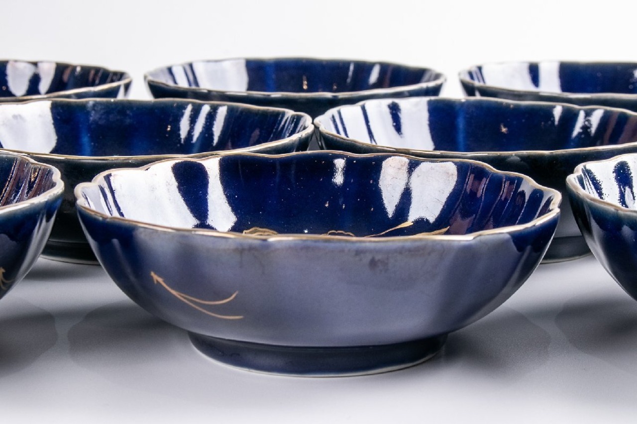 古伊万里 瑠璃釉金彩山水文なます皿 10客 明治時代 F175C バラ売り可能です