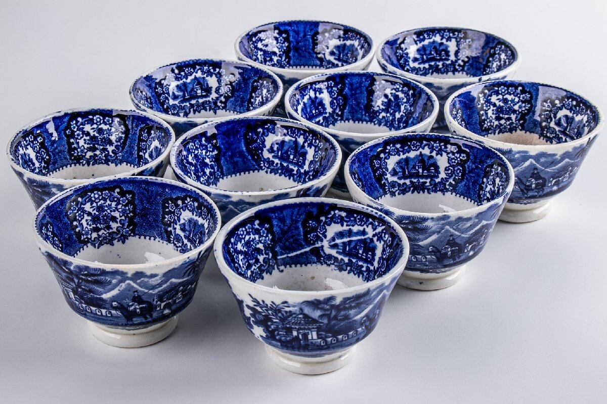 阿蘭陀 デルフト染付花風景文向付 10客 F063A バラ売り可能です