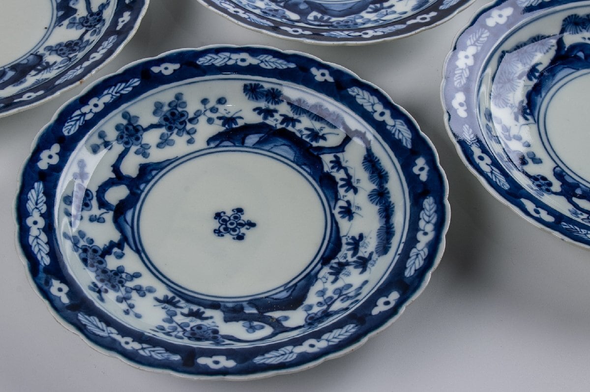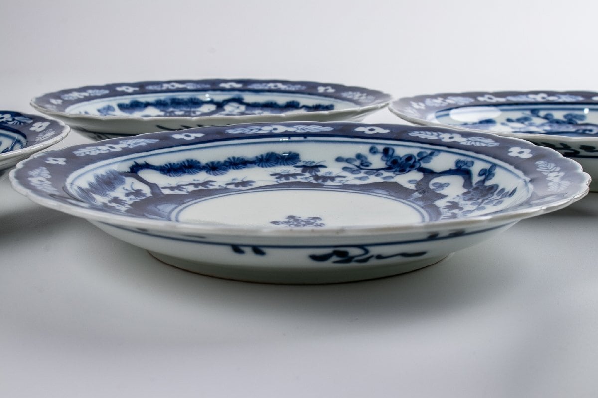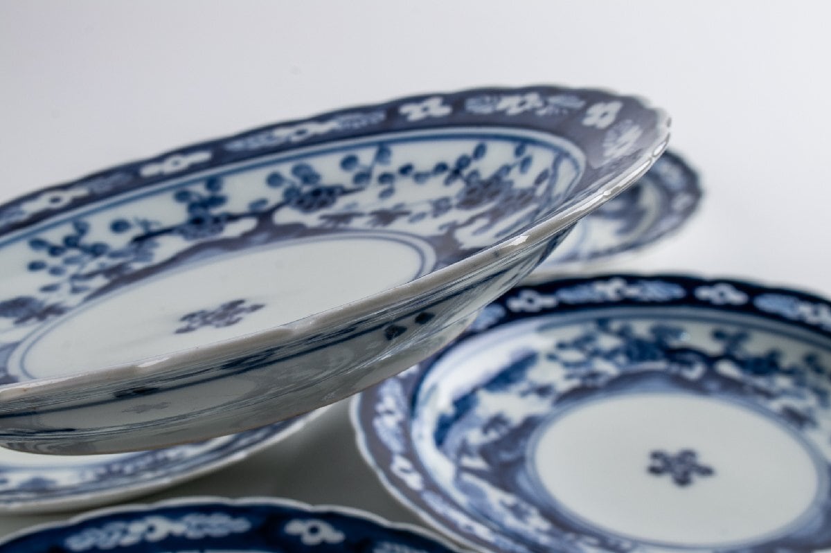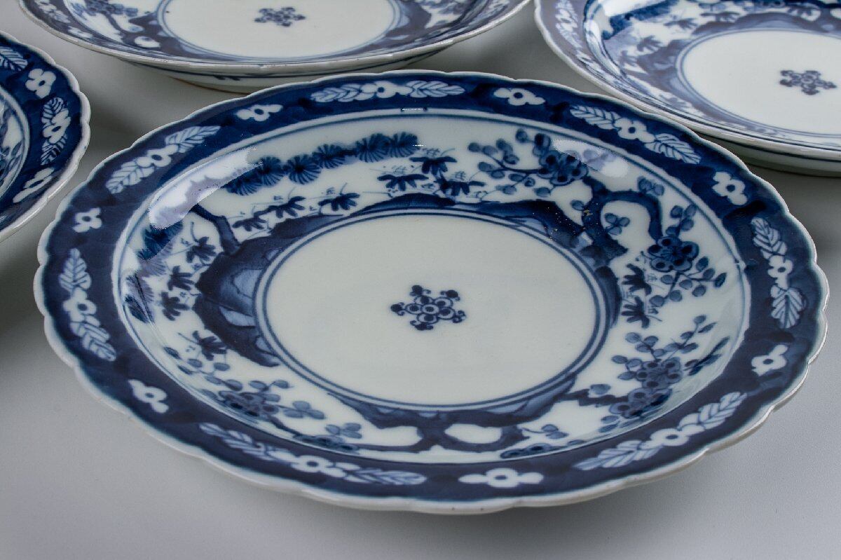 古伊万里 染付松竹梅文七寸皿 4客 明治時代 F131 バラ売り可能です