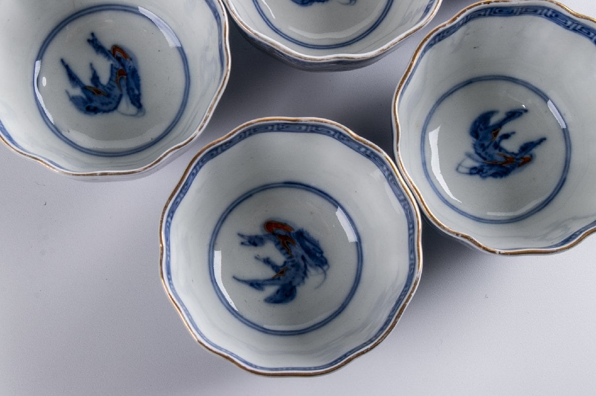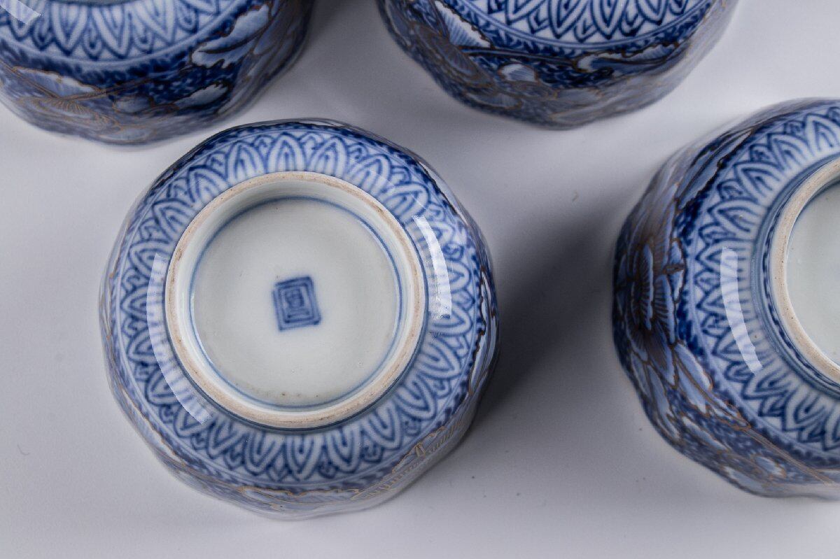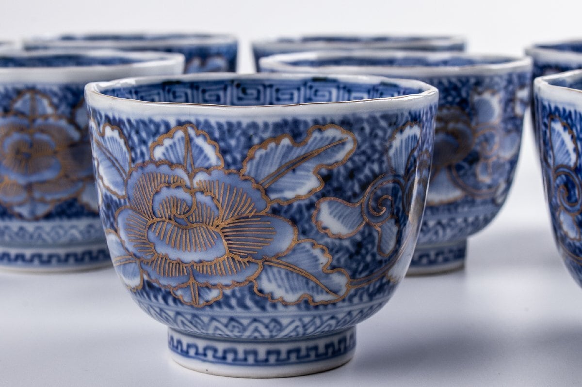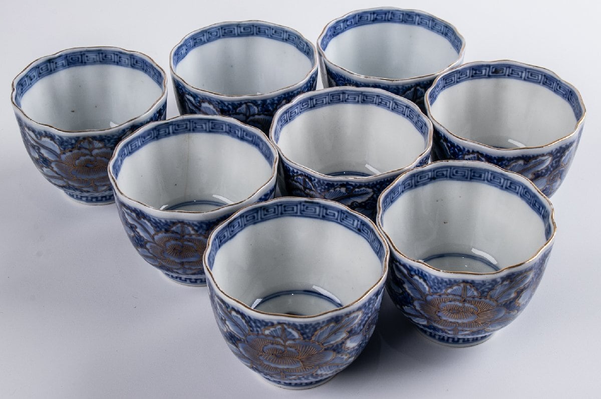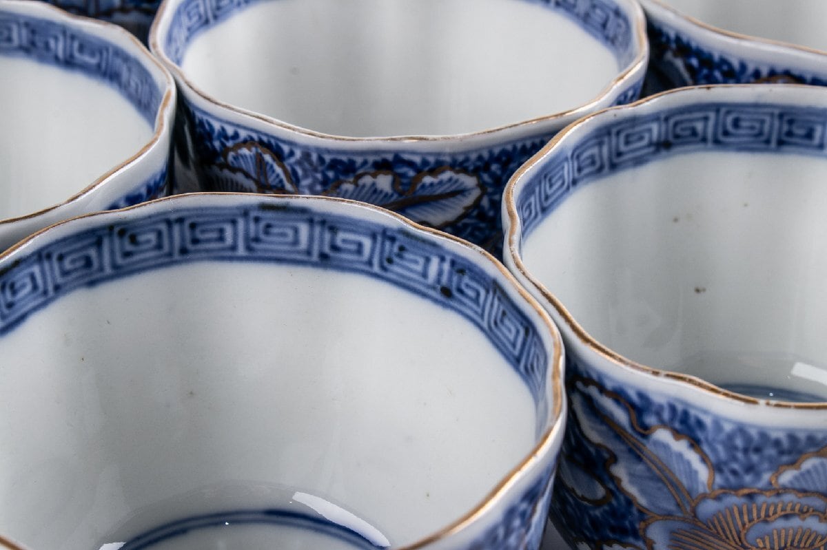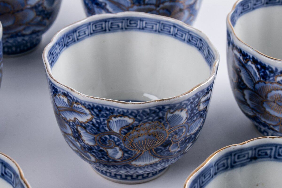 古伊万里 染付金彩牡丹文向付 8客 明治時代 F133 バラ売り可能です