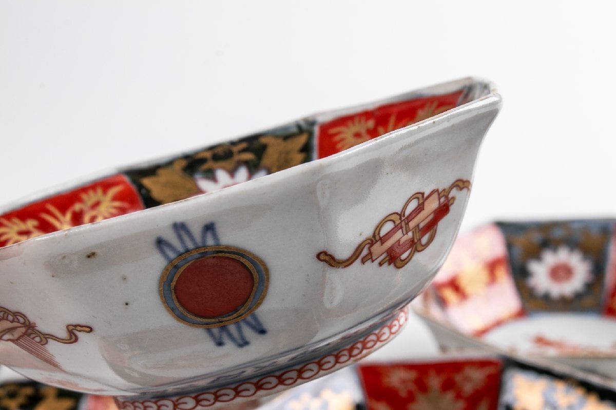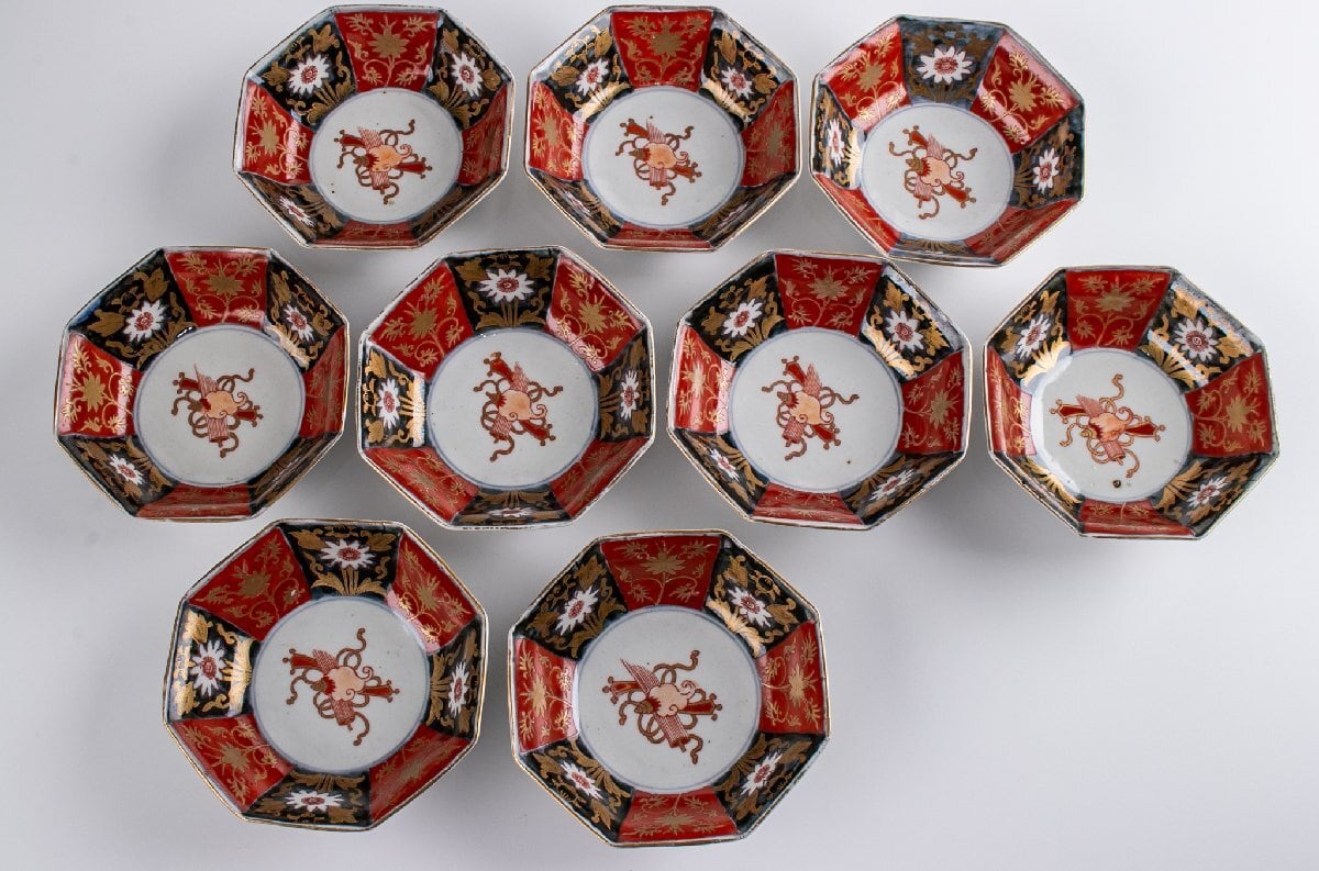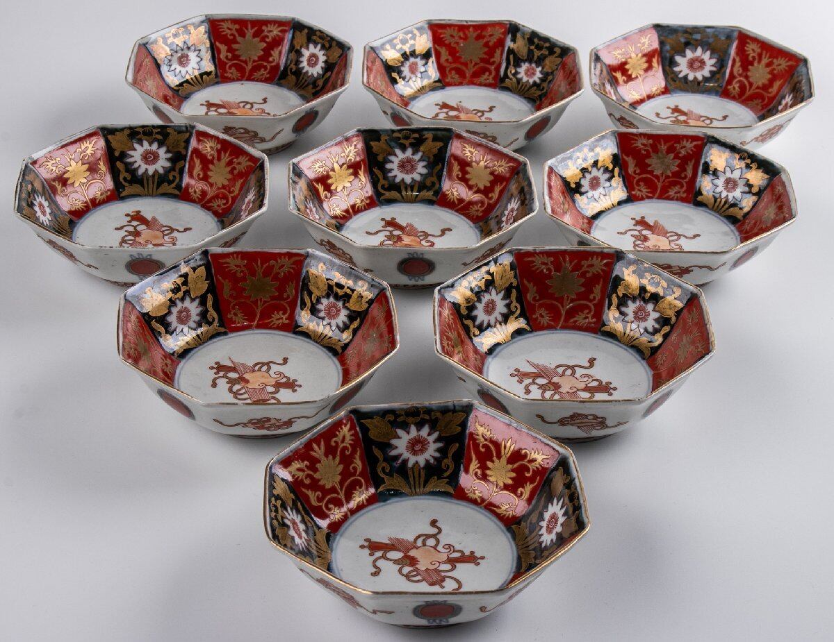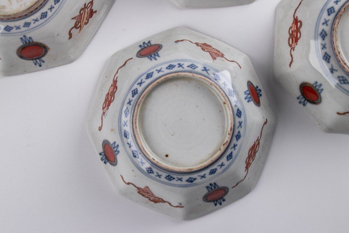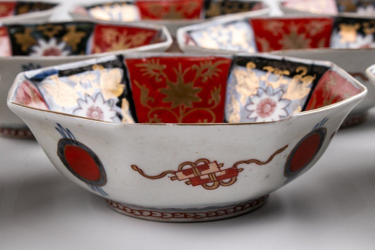 古伊万里 染錦草花文八角鉢 9客 明治時代 F139B バラ売り可能です