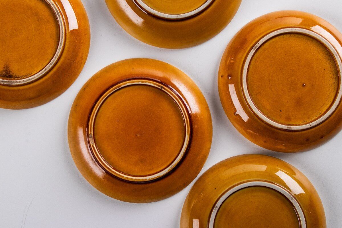 淡路焼 民平焼 黄釉陰刻雲龍文小皿 7客 F164A バラ売り可能です