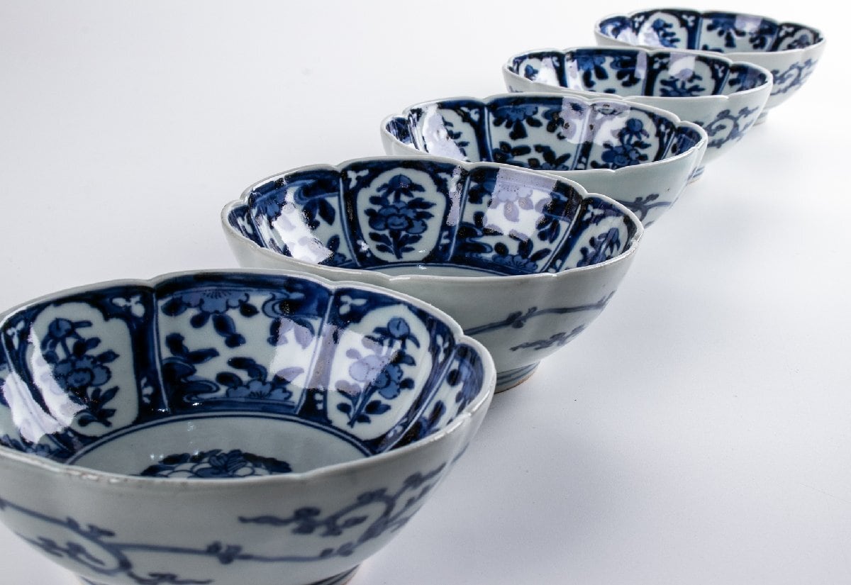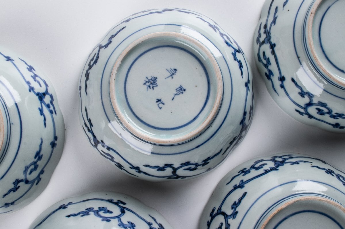 古伊万里 染付草花文なます皿 5客 江戸後期 F155F バラ売り可能です
