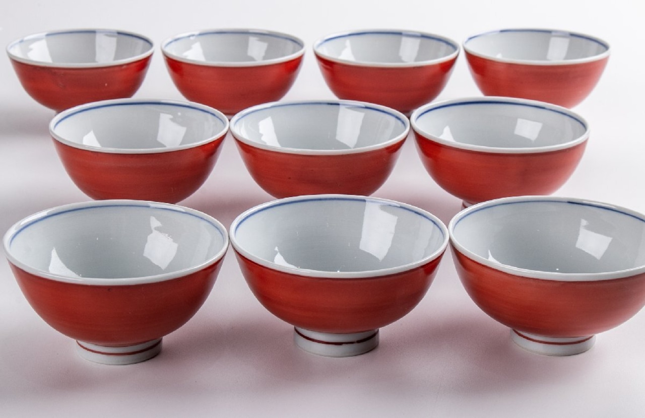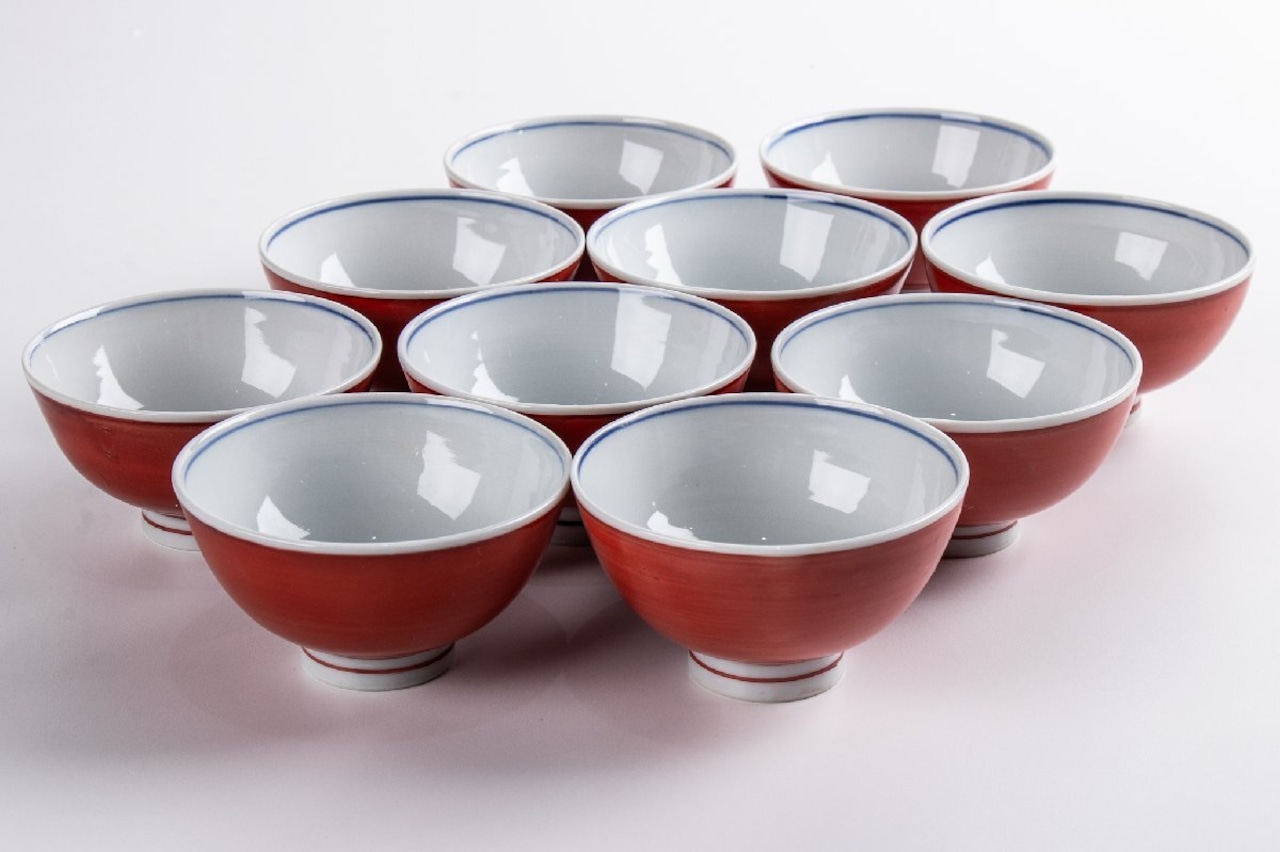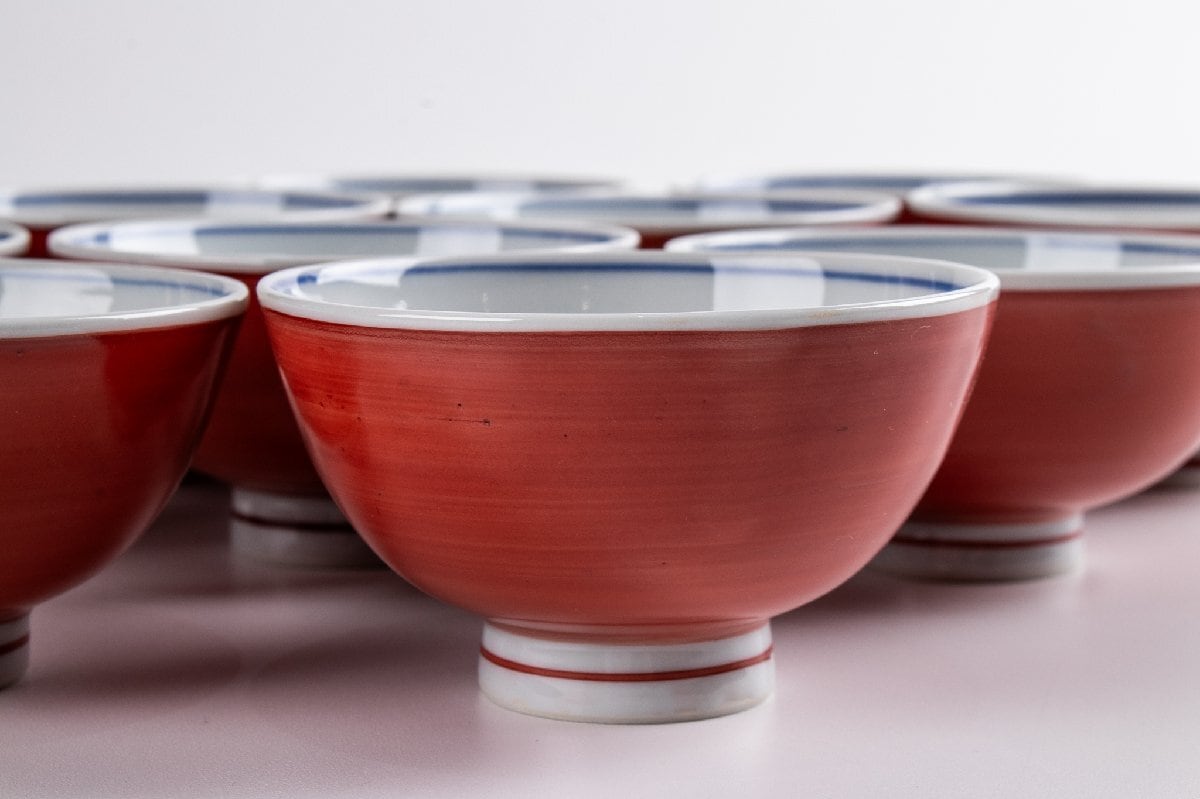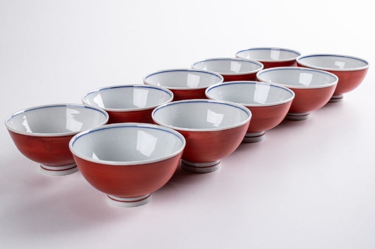 寺前瑛生 九谷赤絵汲み出し碗 10客 F271D