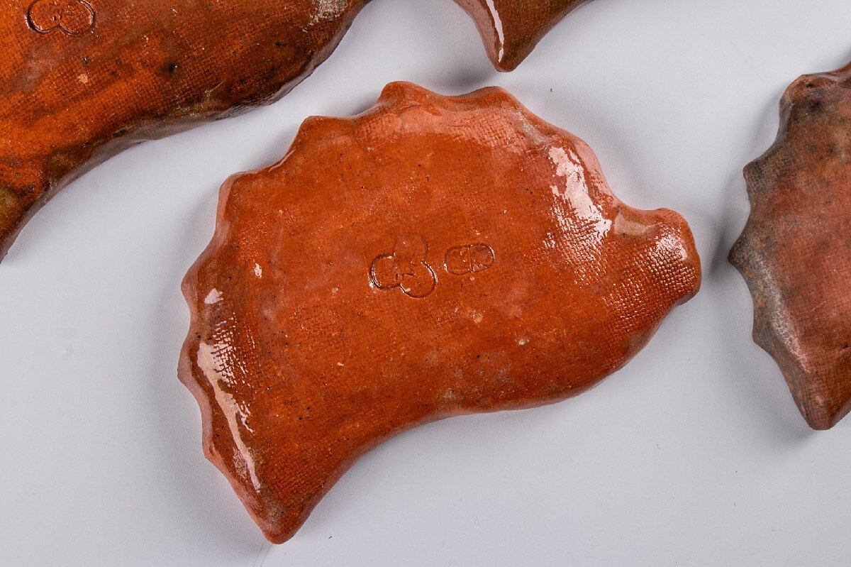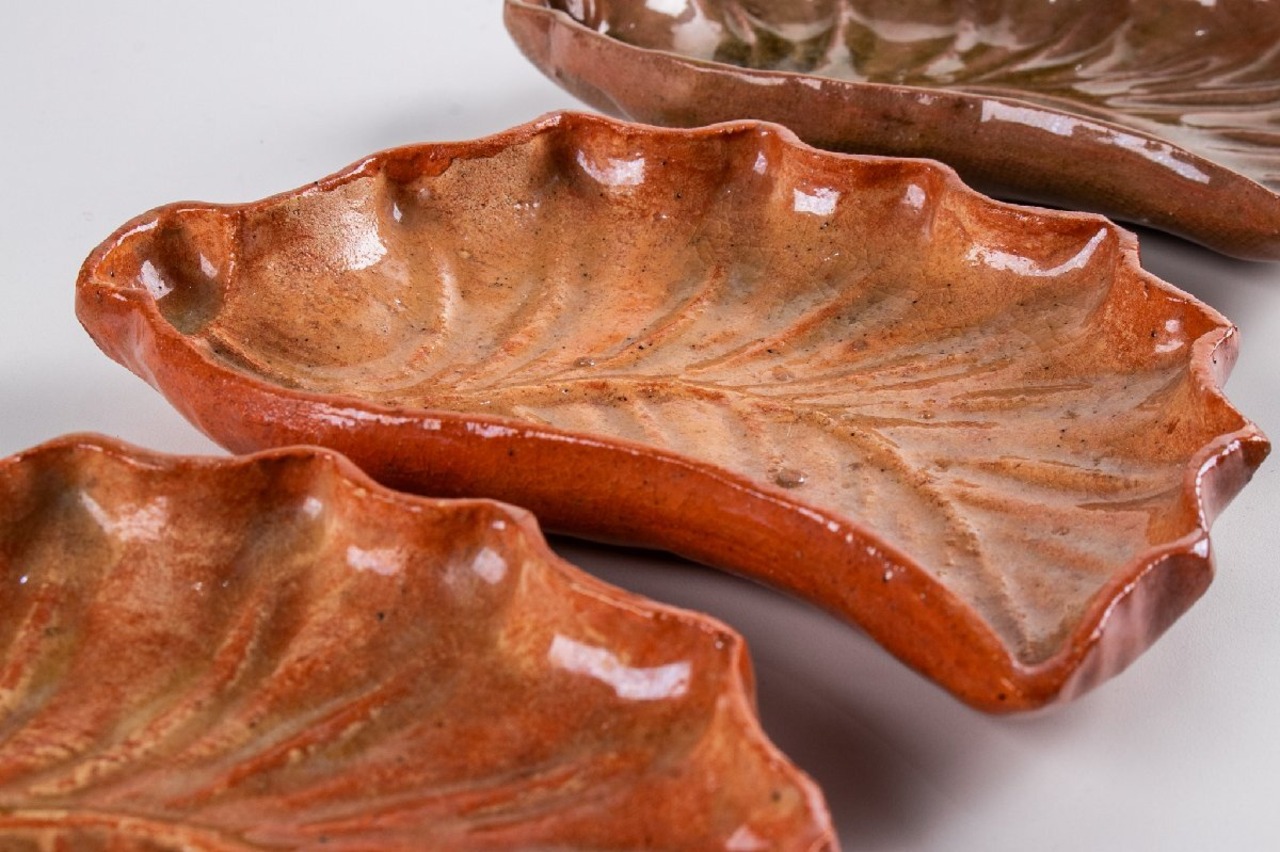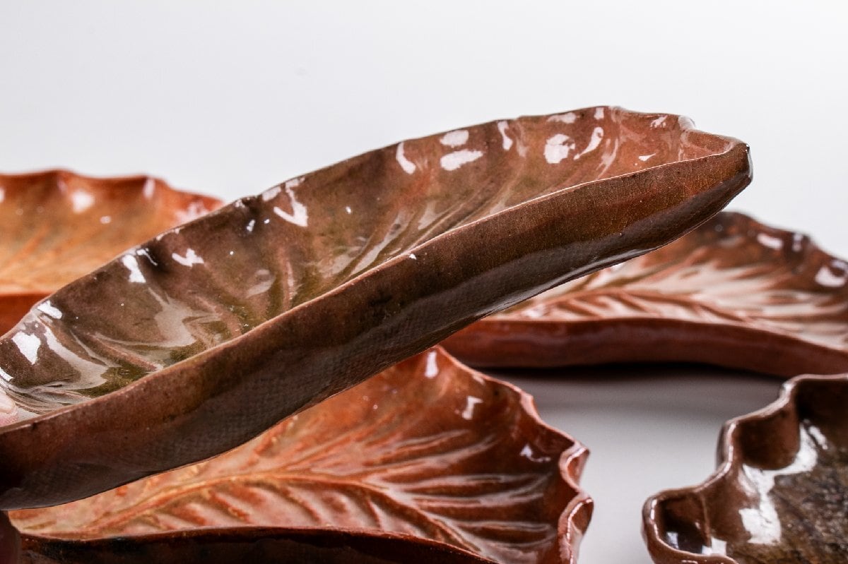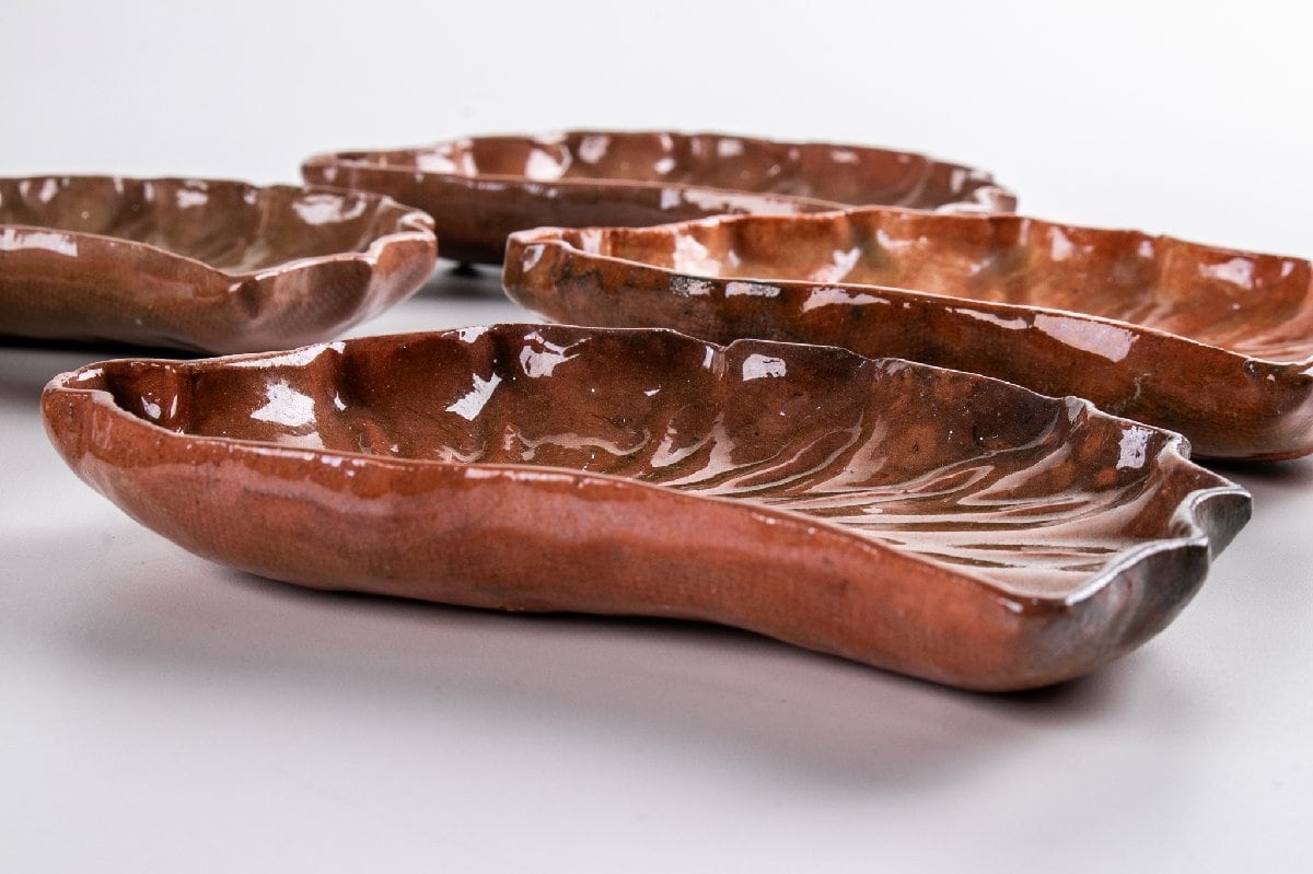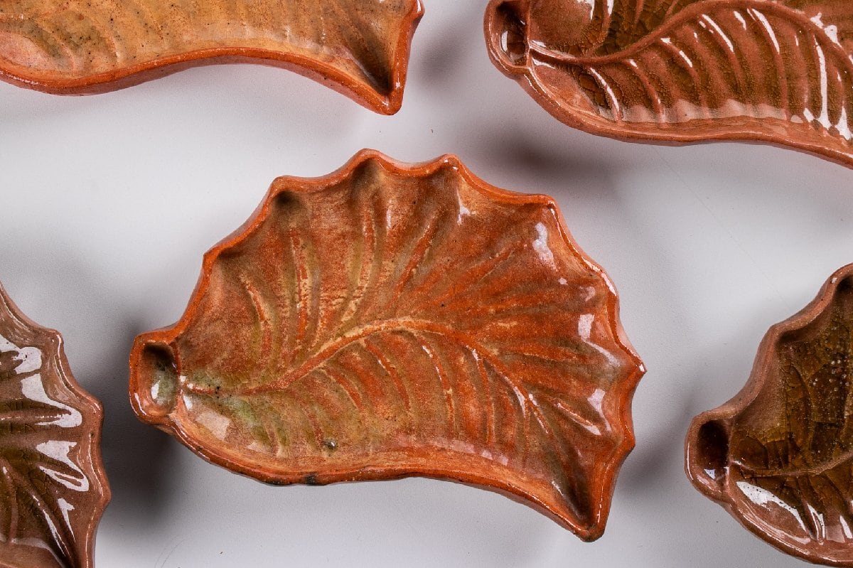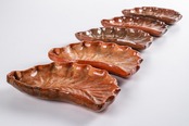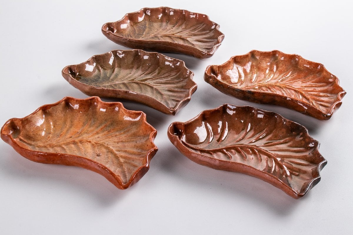 湊焼 湊本窯 葉形 銘々皿 5客 箱付 F312