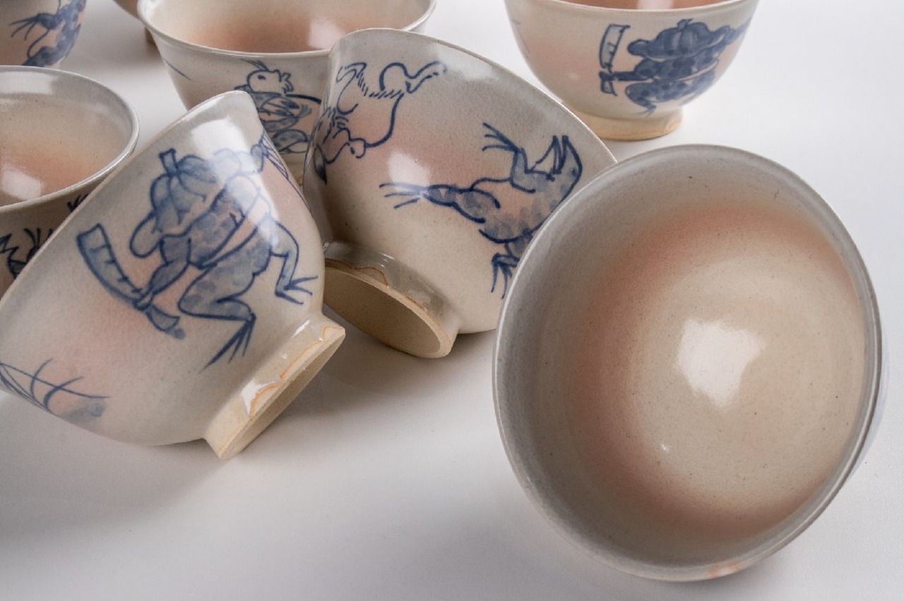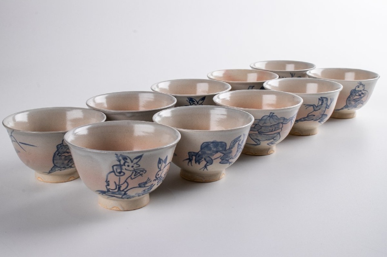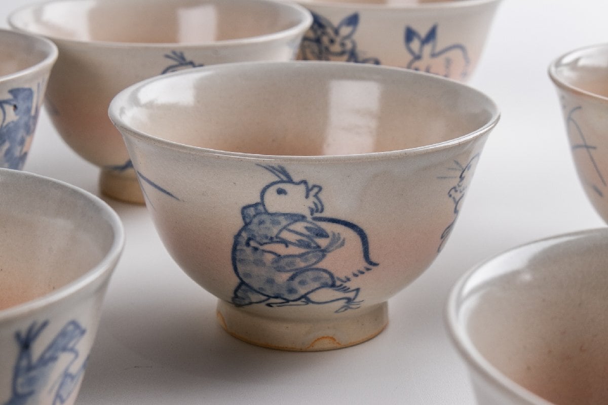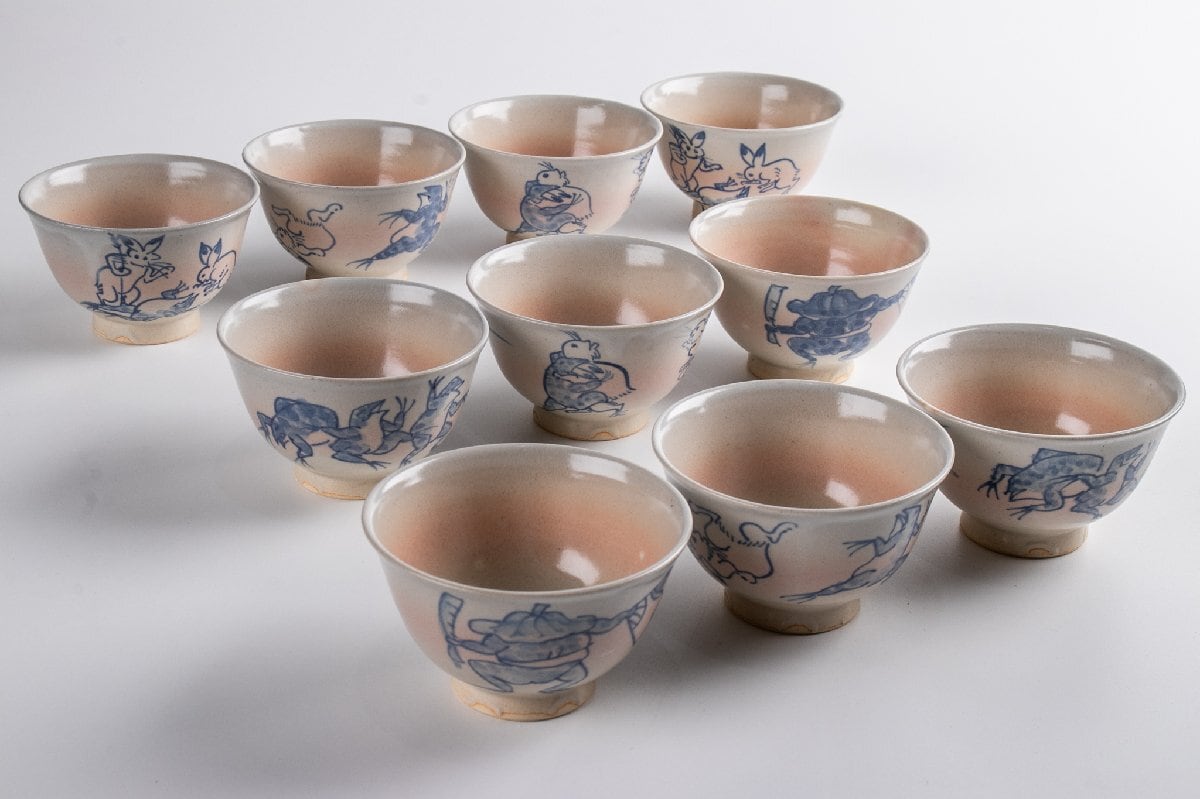 竜谷窯 宮川香雲 鳥羽絵 汲出茶碗 10客 共箱 F274
