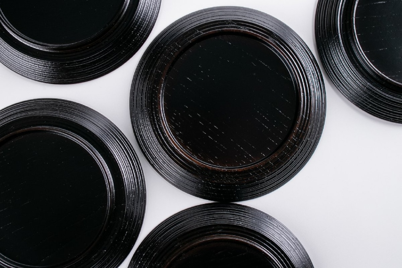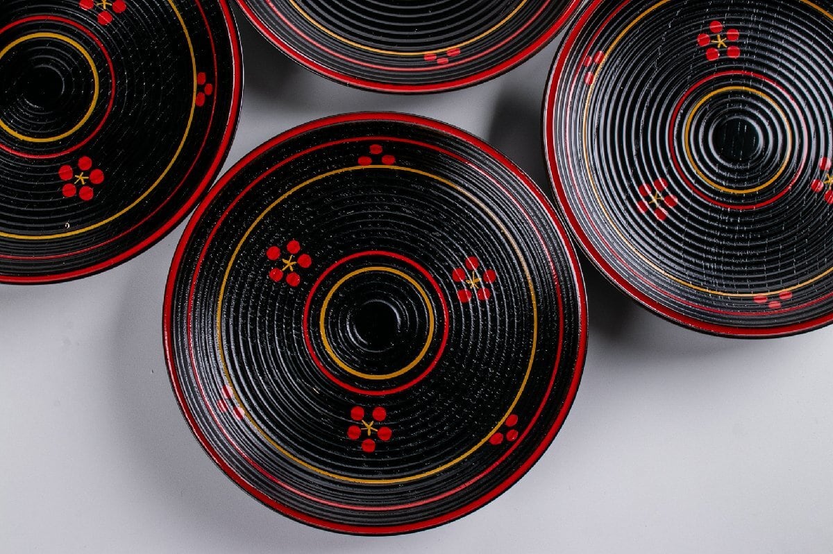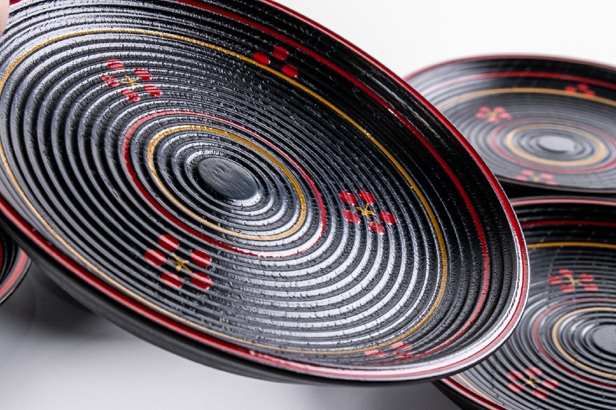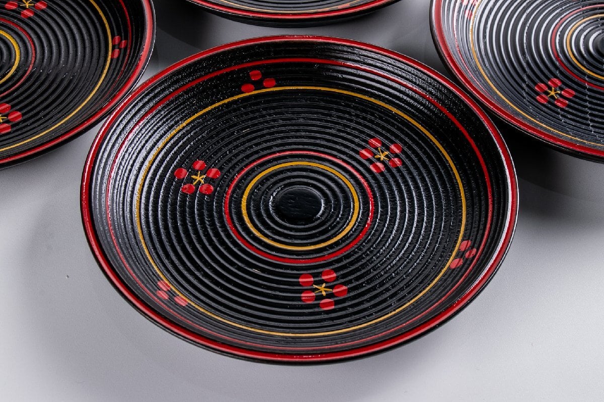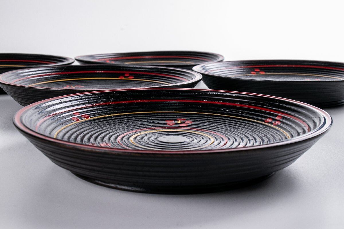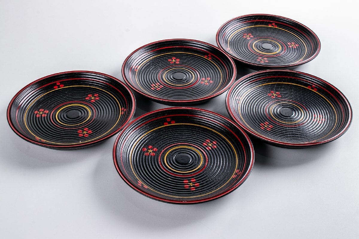 前端雅峯 梅鉢絵銘々盆 5客 共箱 F300