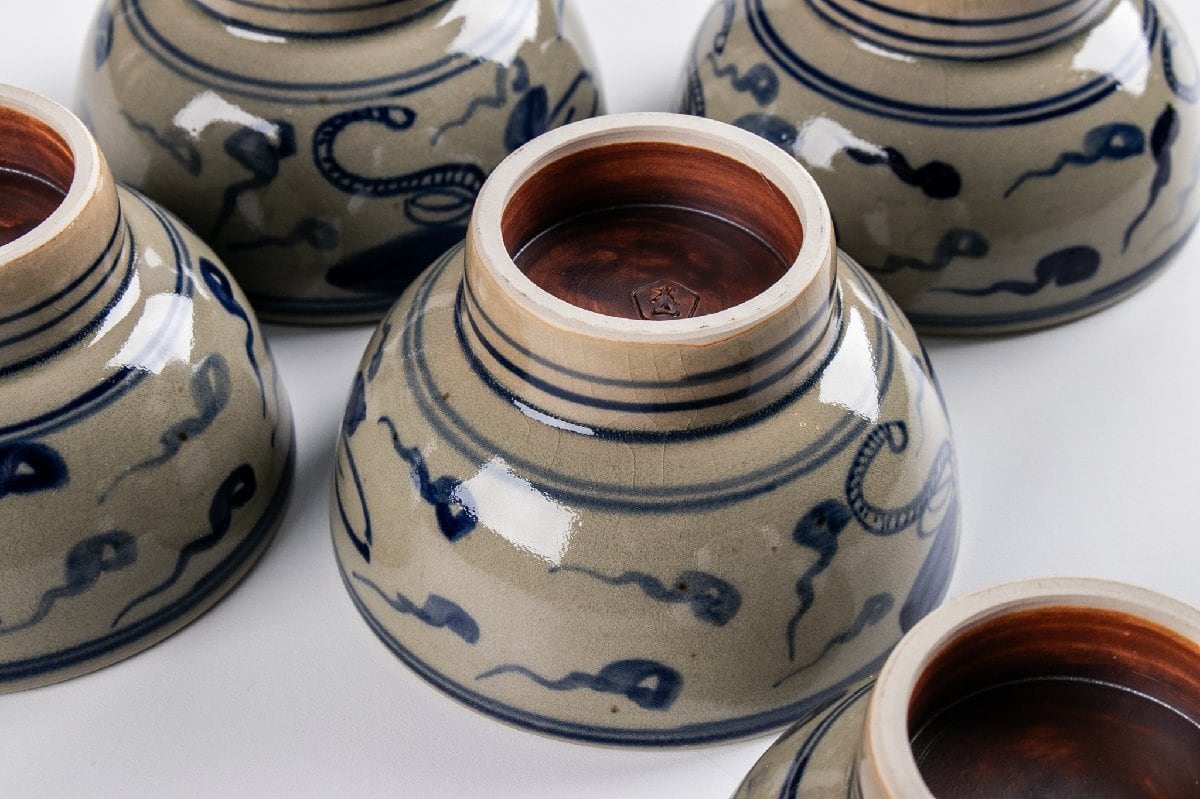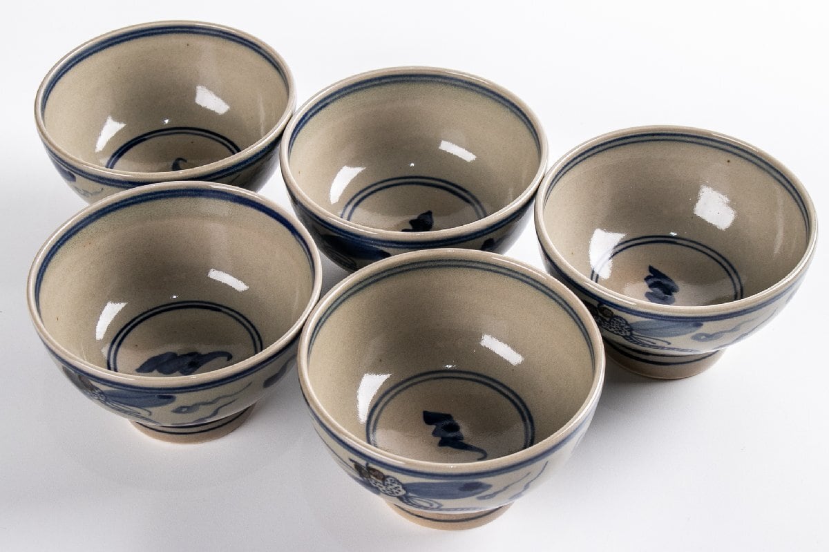 犬山本窯 尾関作十郎 安南写 汲出碗 5客 共箱 F169