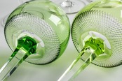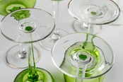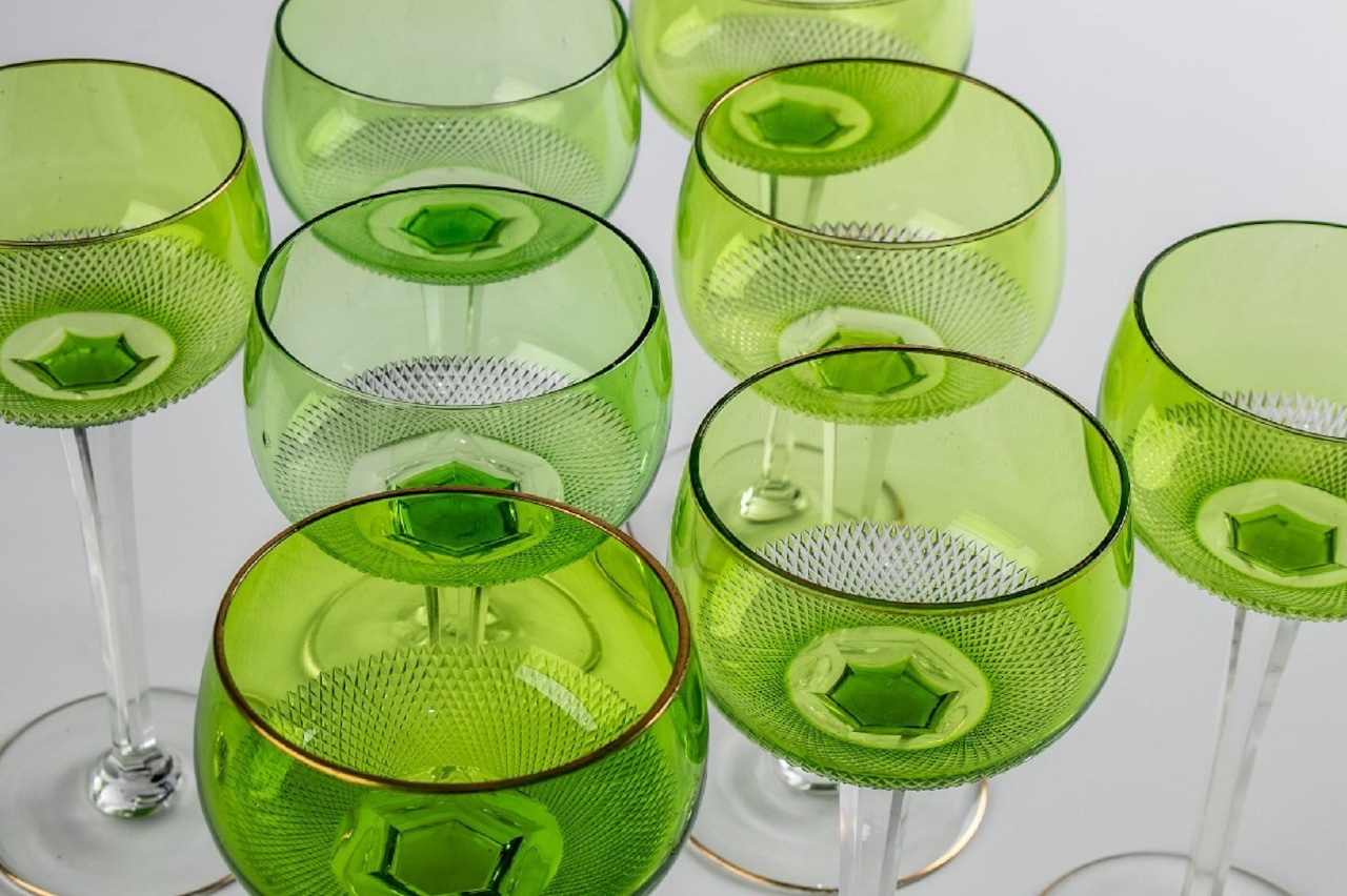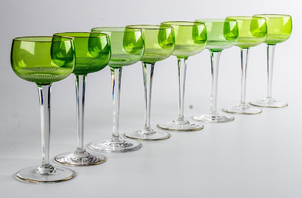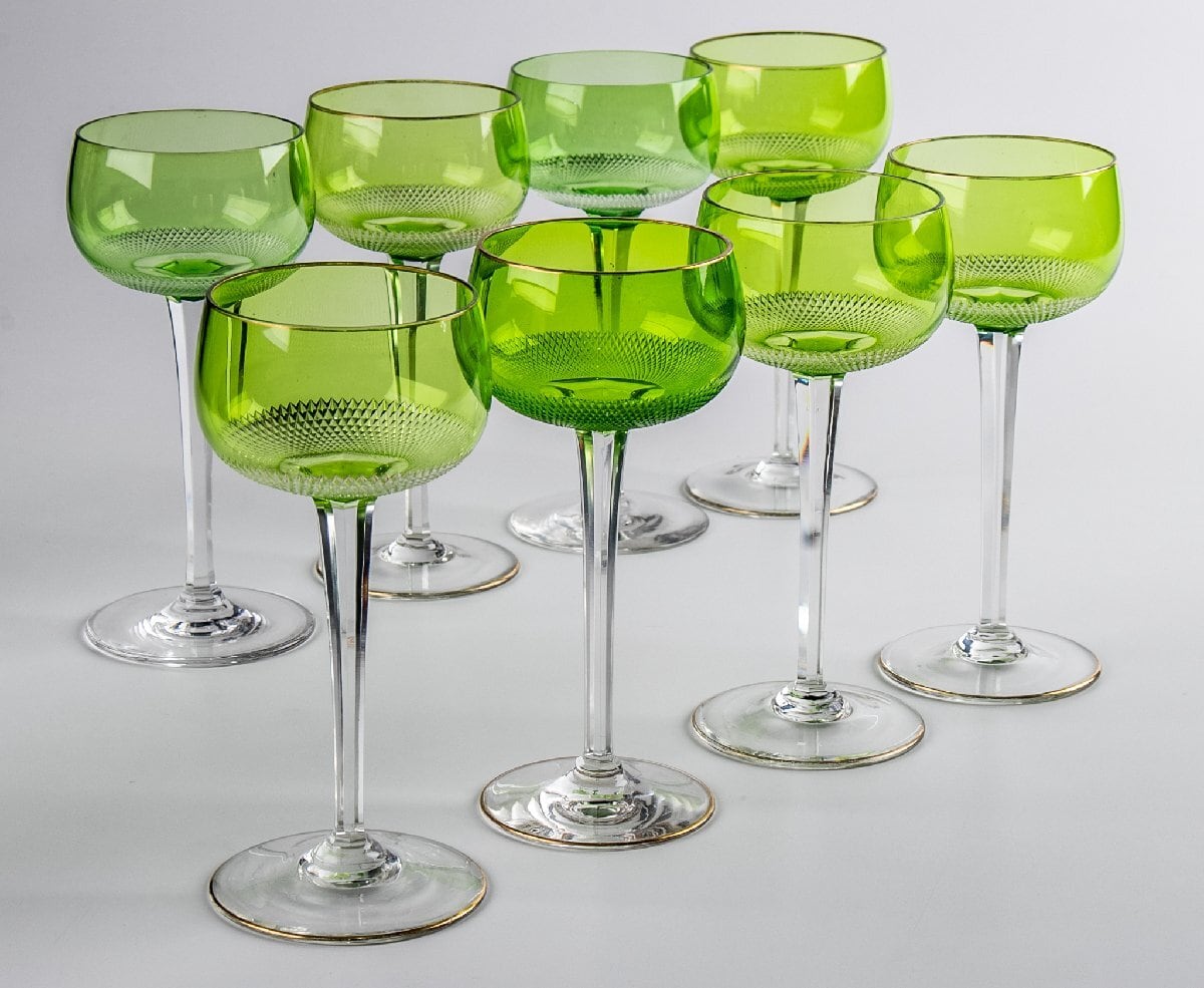ウランガラス ギヤマン切子 緑被せワイングラス 8客 F297