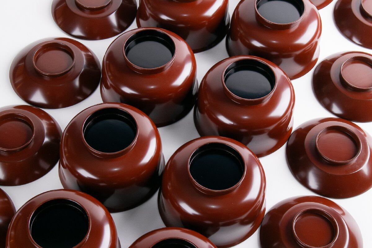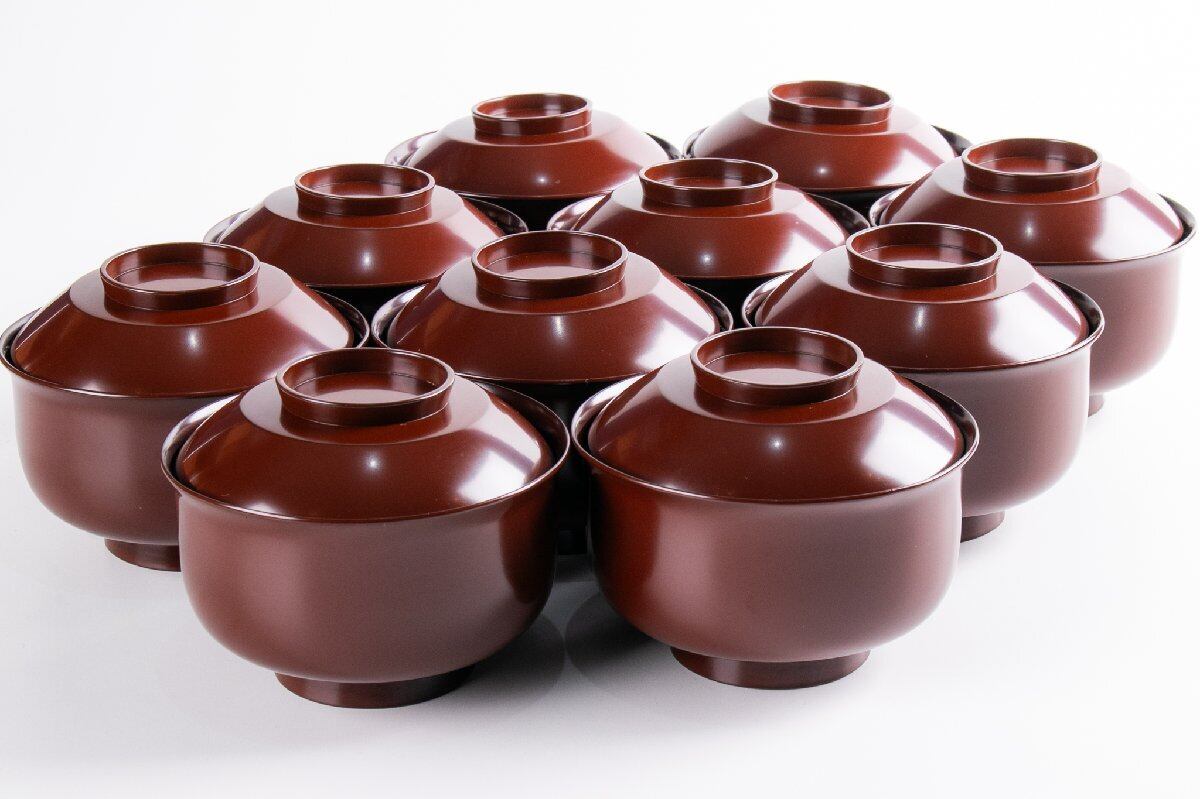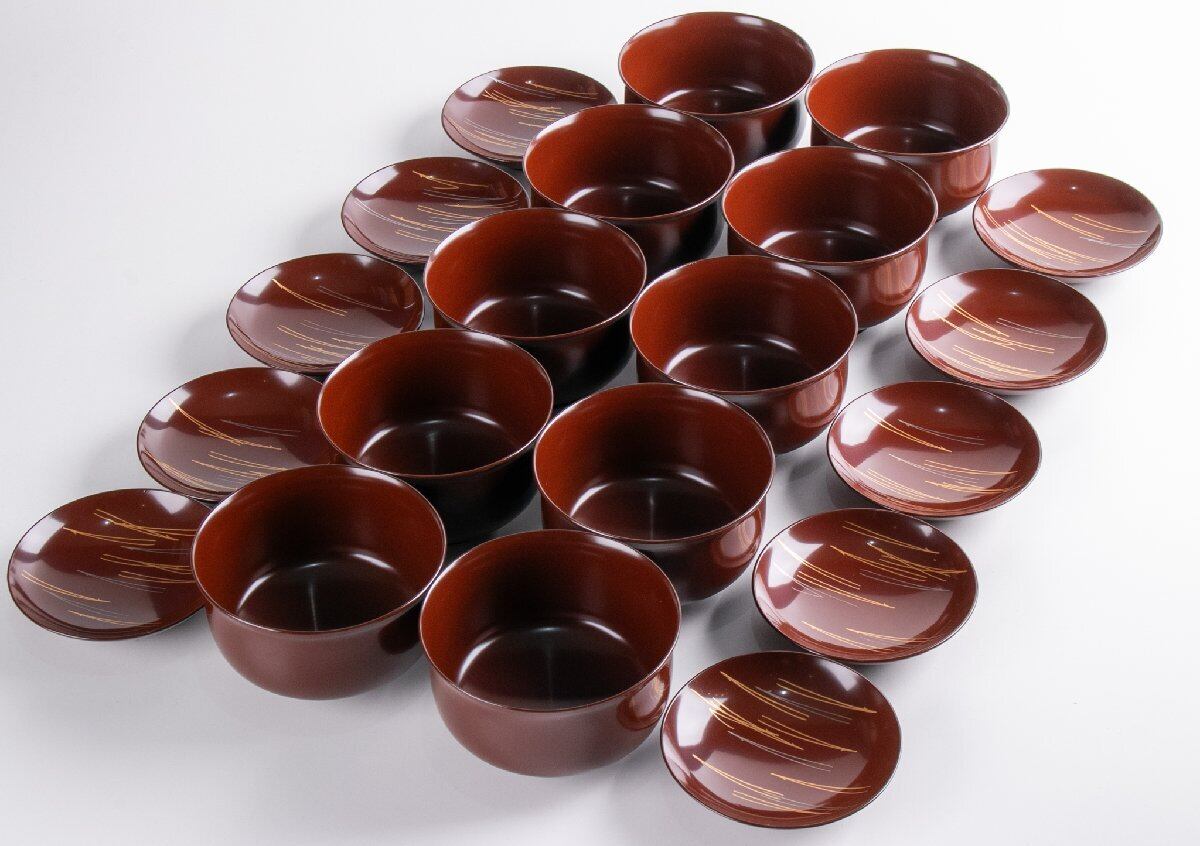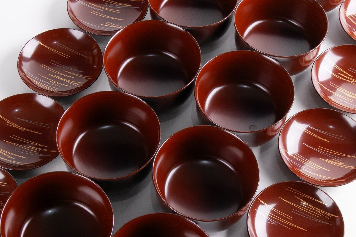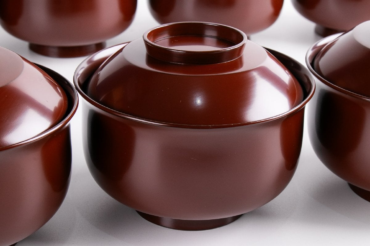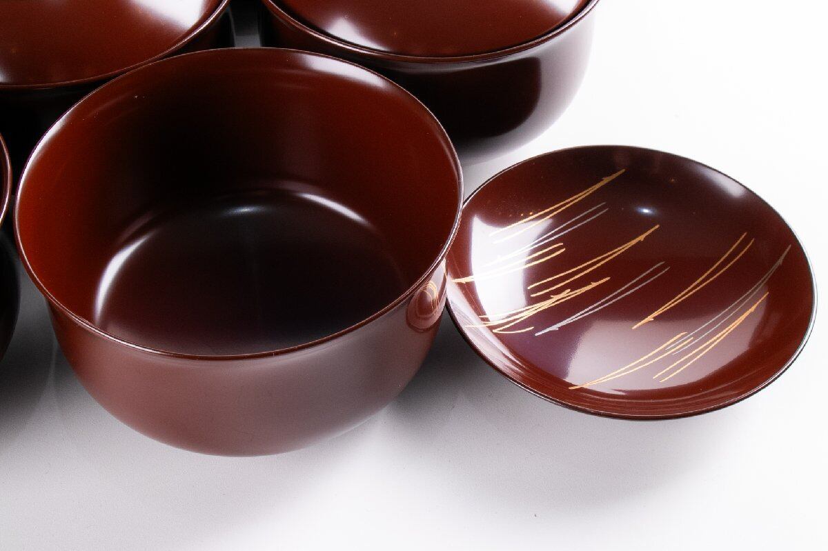 尾張塗 金森春次 うるみ塗松葉重文布袋菜蓋椀 煮物椀 10客 共箱 F235A