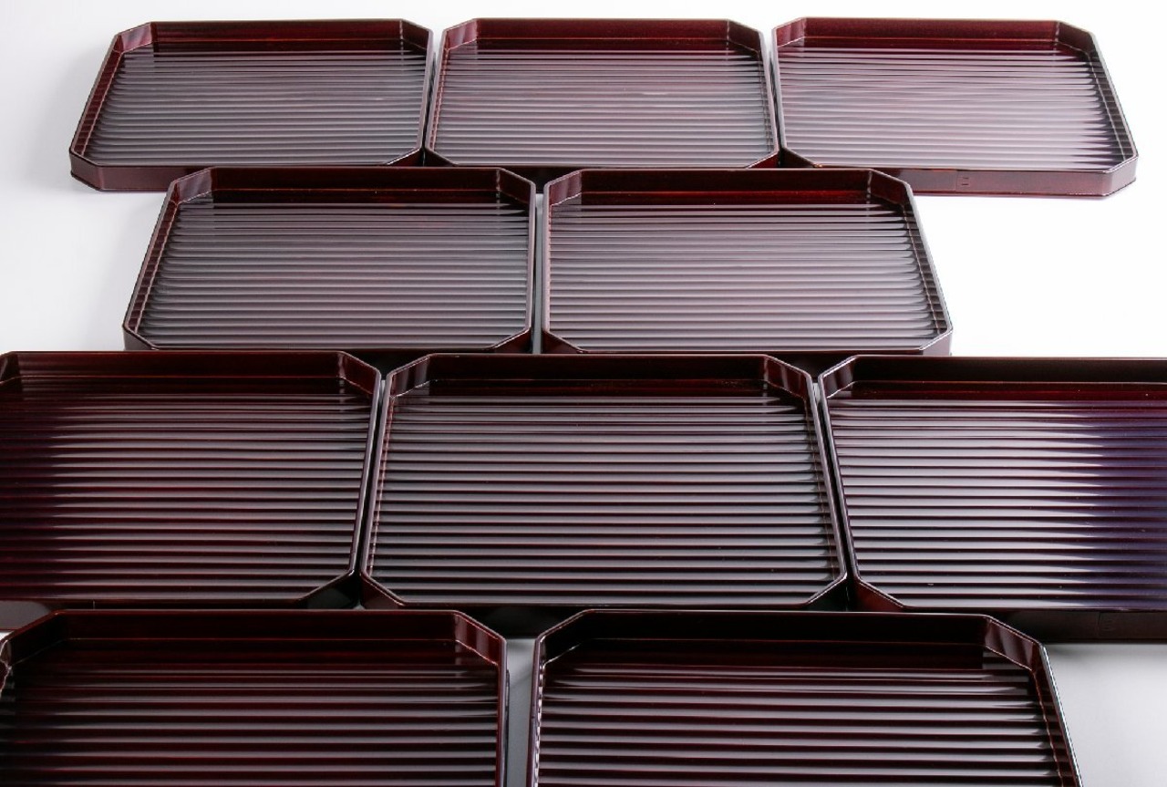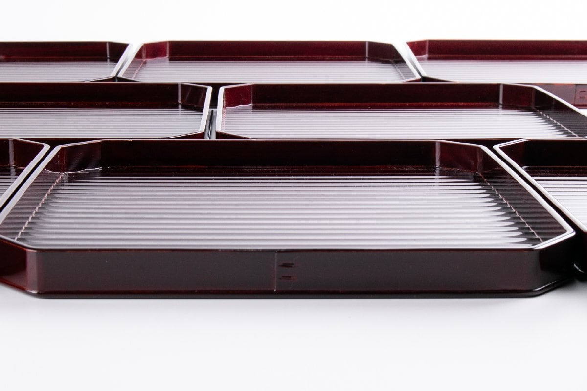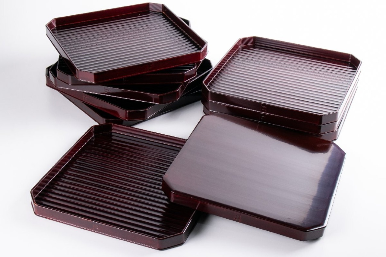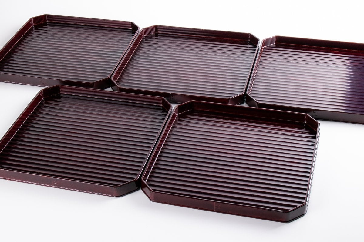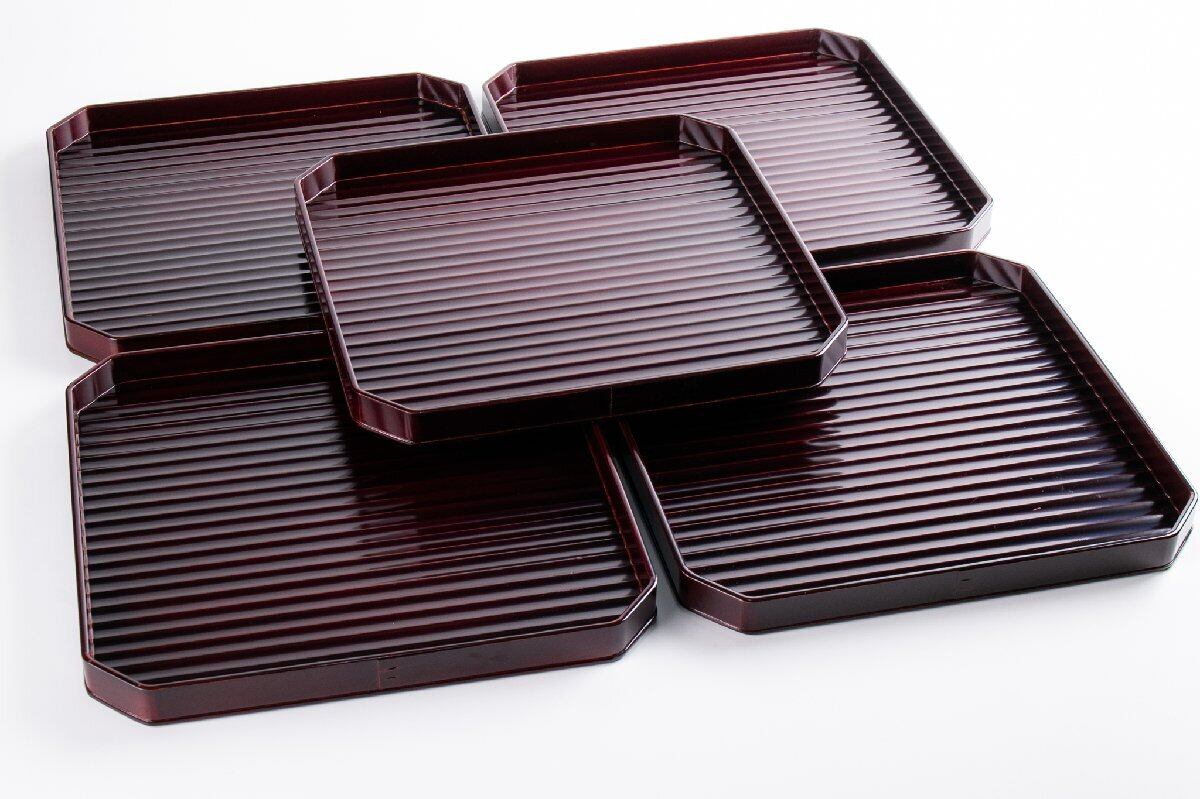 漆匠 川端近左 溜鉋目折敷 10客 共箱 F264