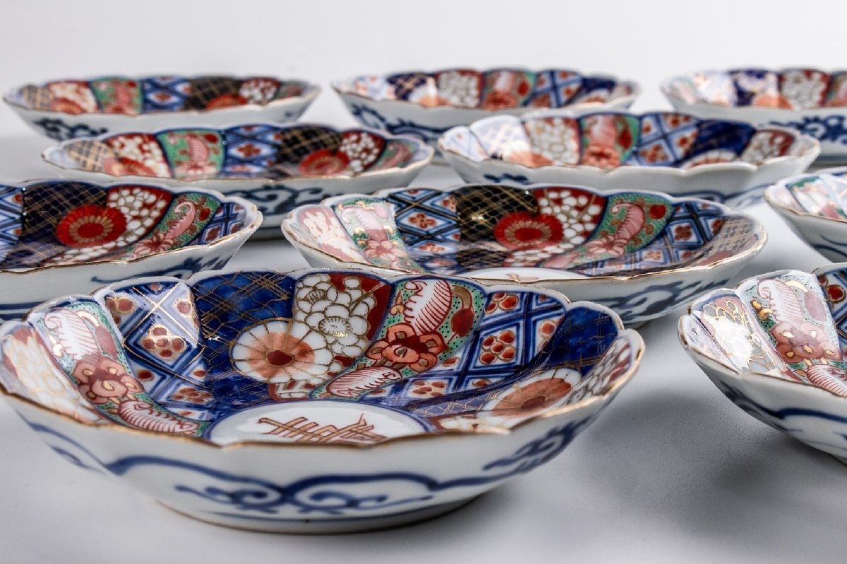 大聖寺伊万里 金襴手輪花捻り文四寸皿 10客 明治時代 F136A バラ売り可能です