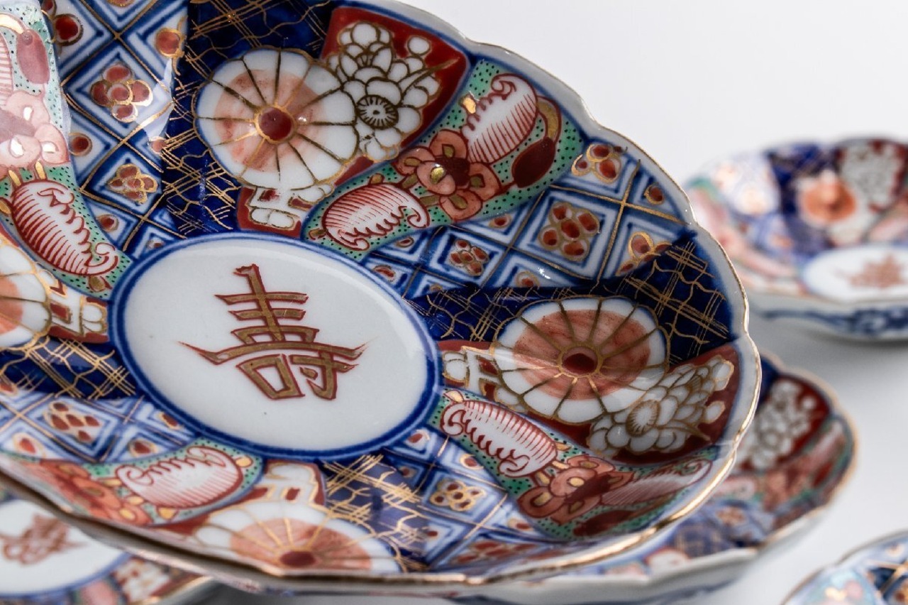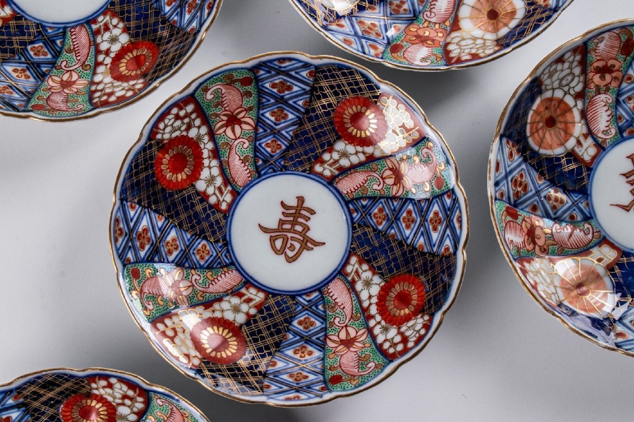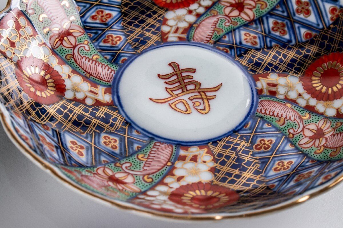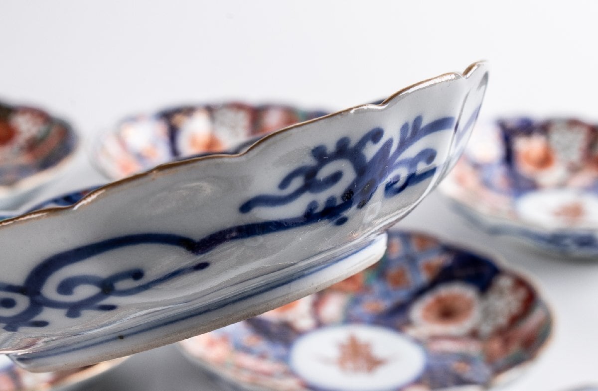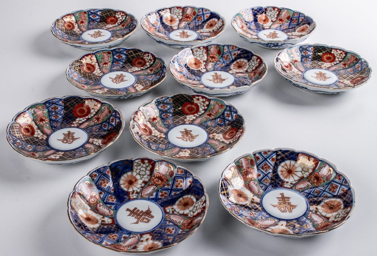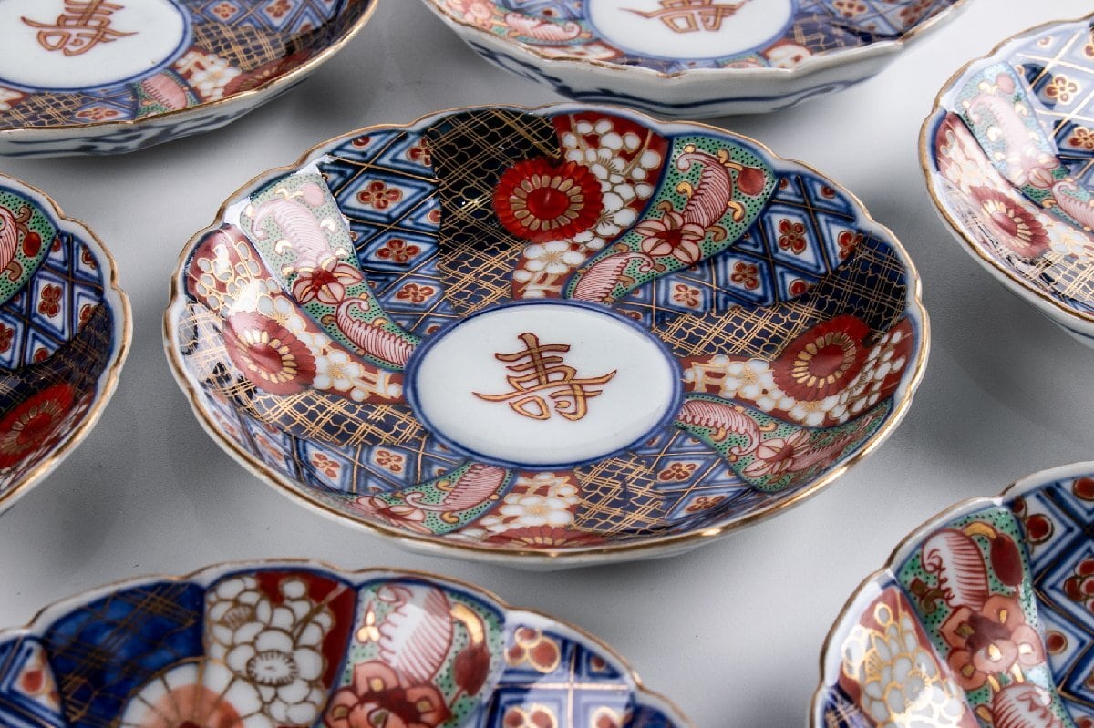 大聖寺伊万里 金襴手輪花捻り文四寸皿 10客 明治時代 F136C バラ売り可能です