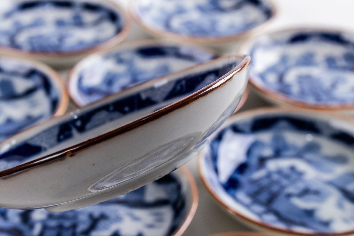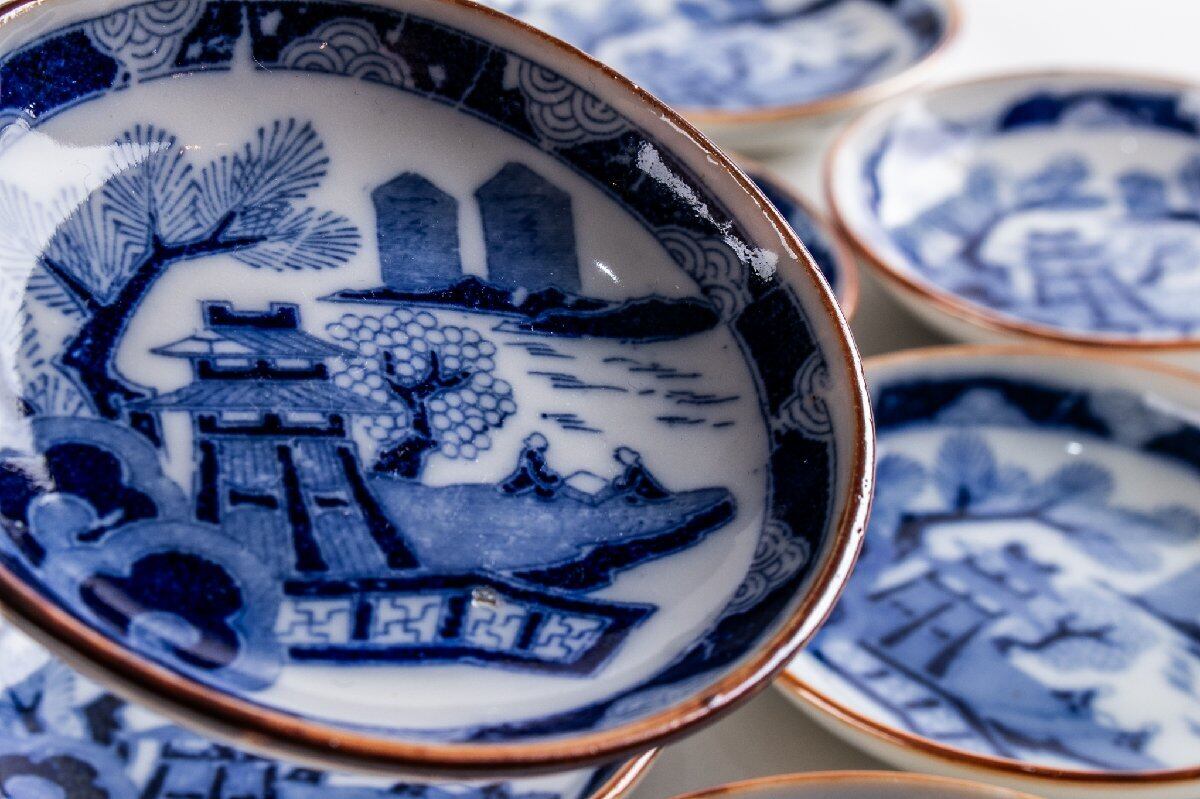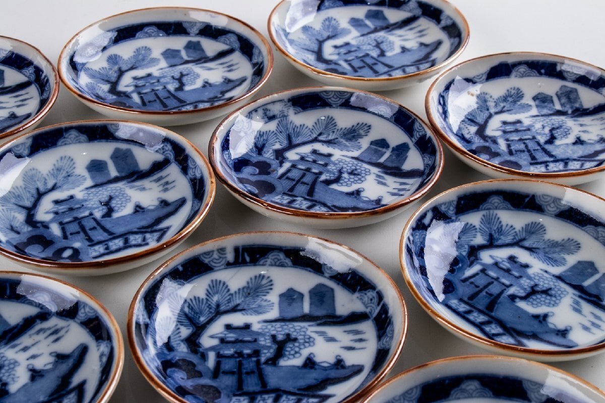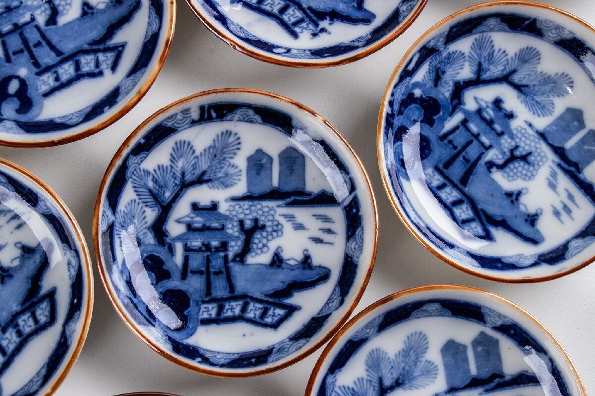 印判手 楼閣山水文手塩皿 小皿 11客 大正時代 F323 バラ売り可能です