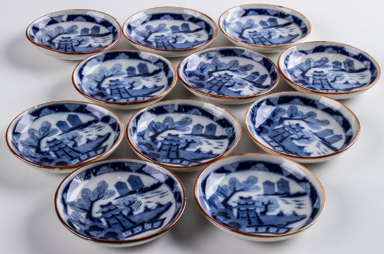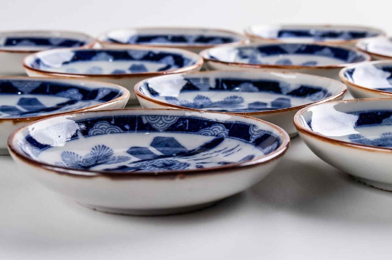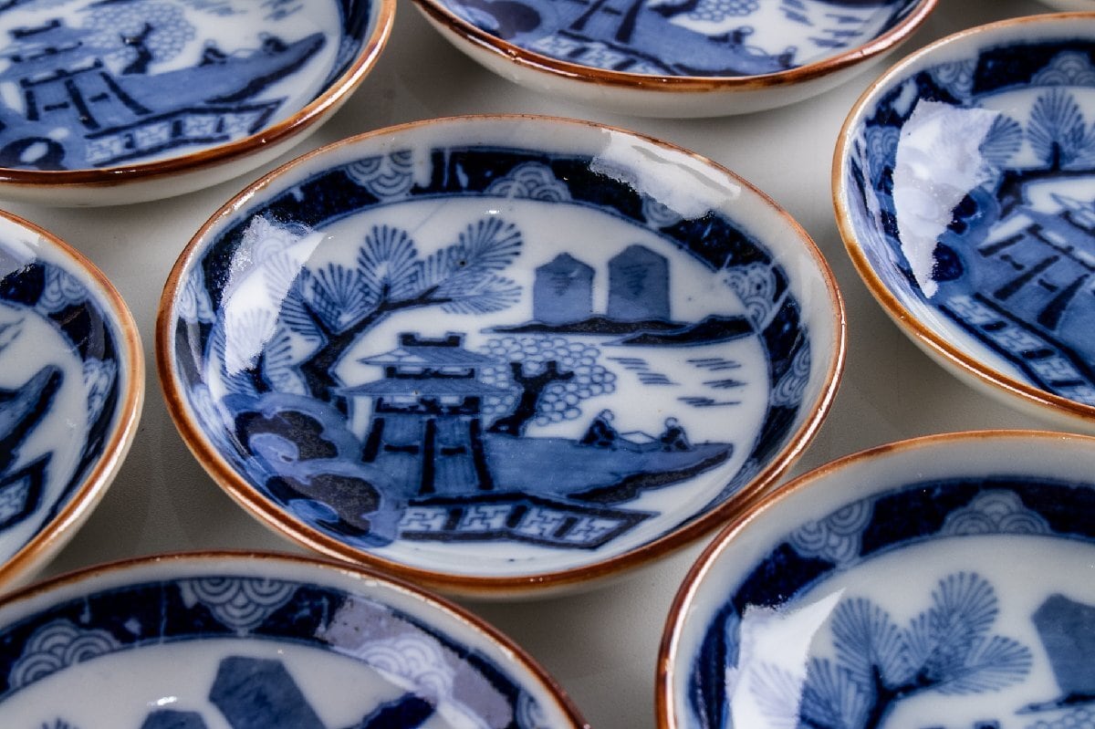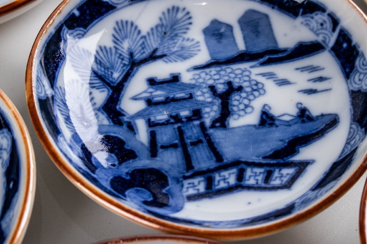 印判手 楼閣山水文手塩皿 小皿 11客 大正時代 F323 バラ売り可能です