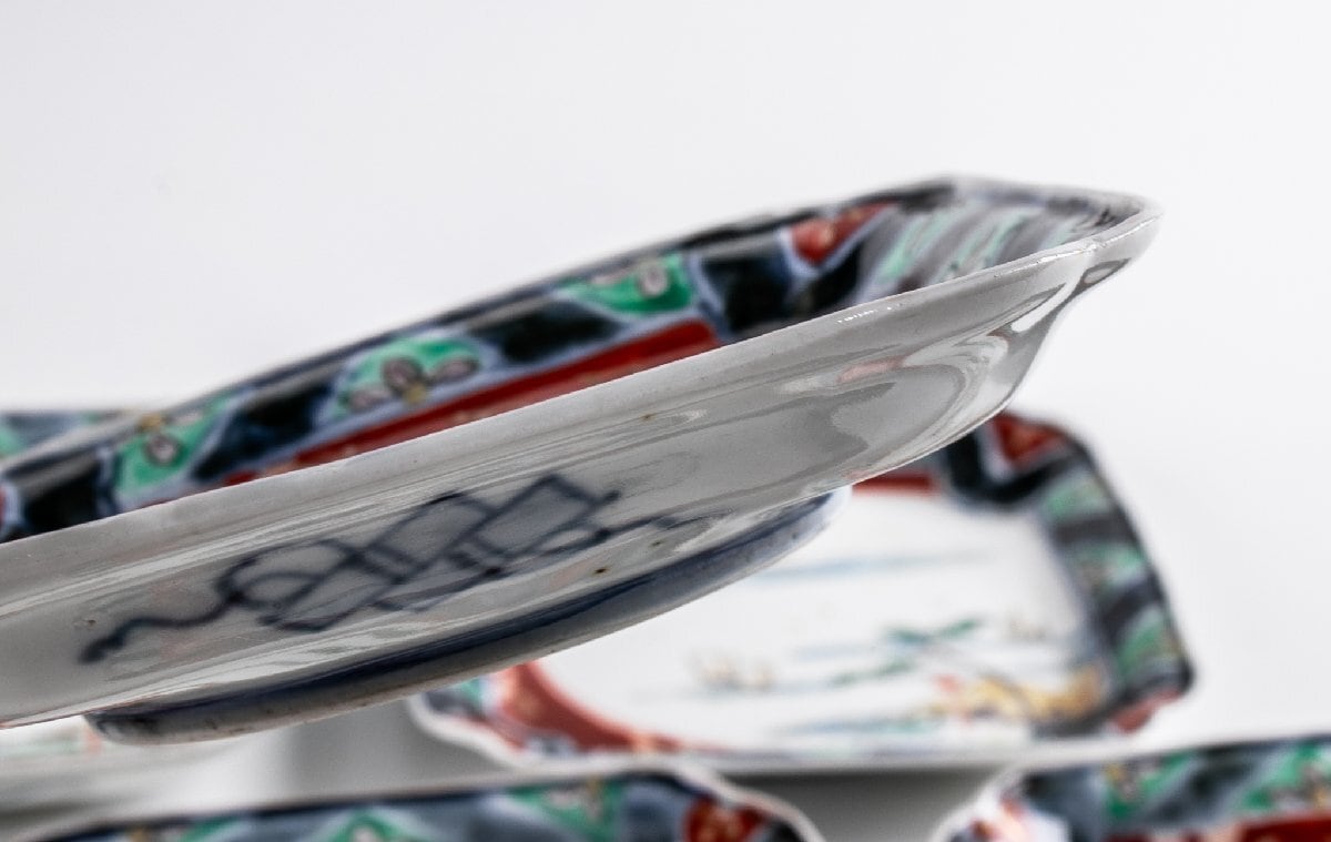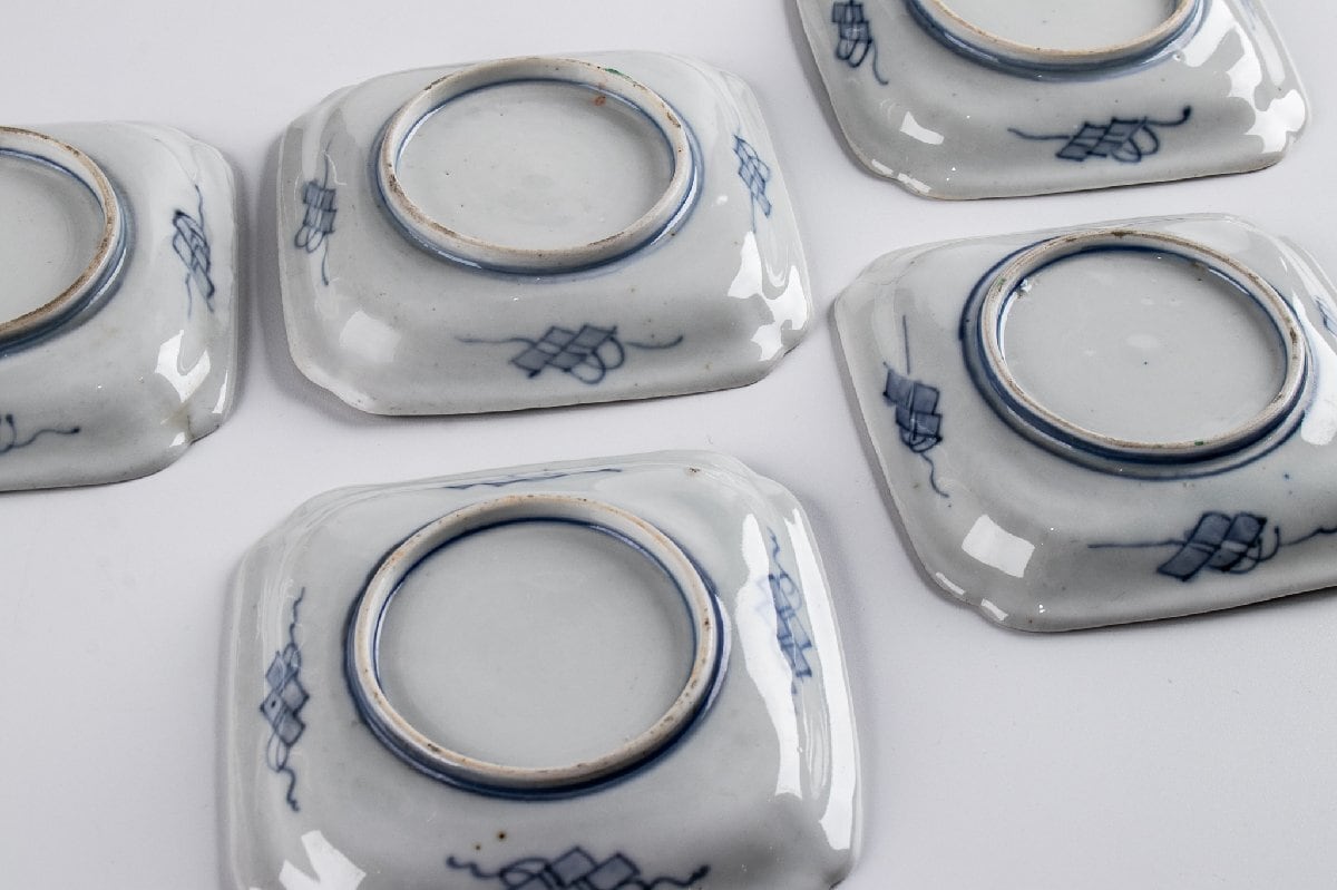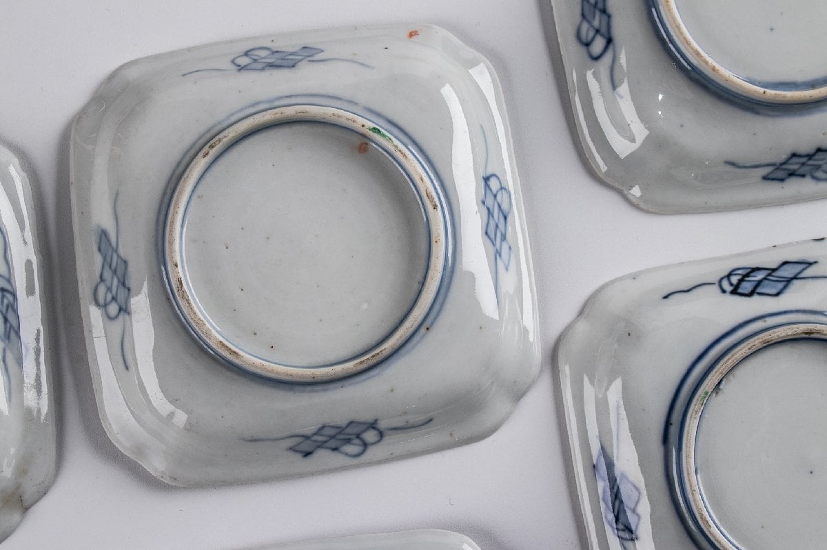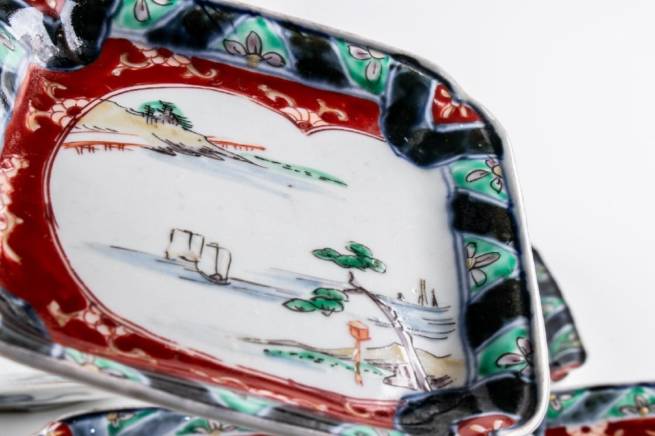 古伊万里 染錦山水帆船文四方皿 7客 明治時代 F277 バラ売り可能です