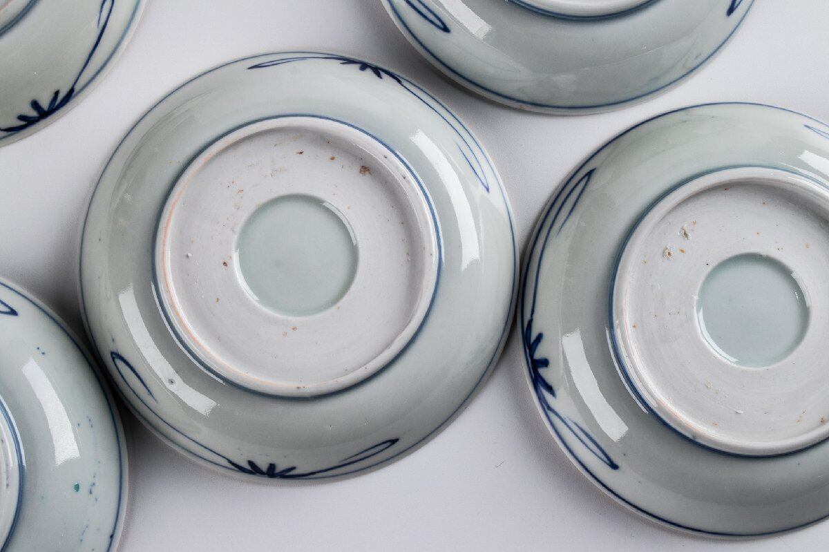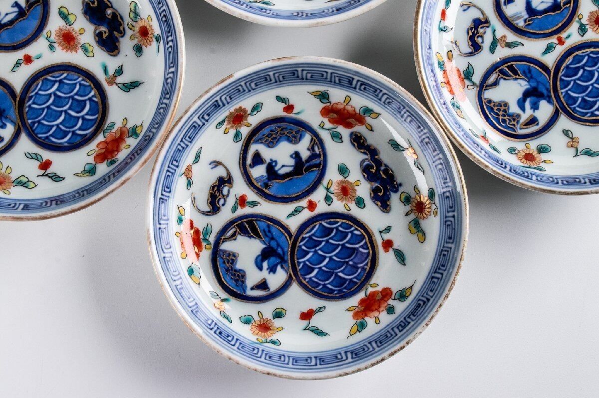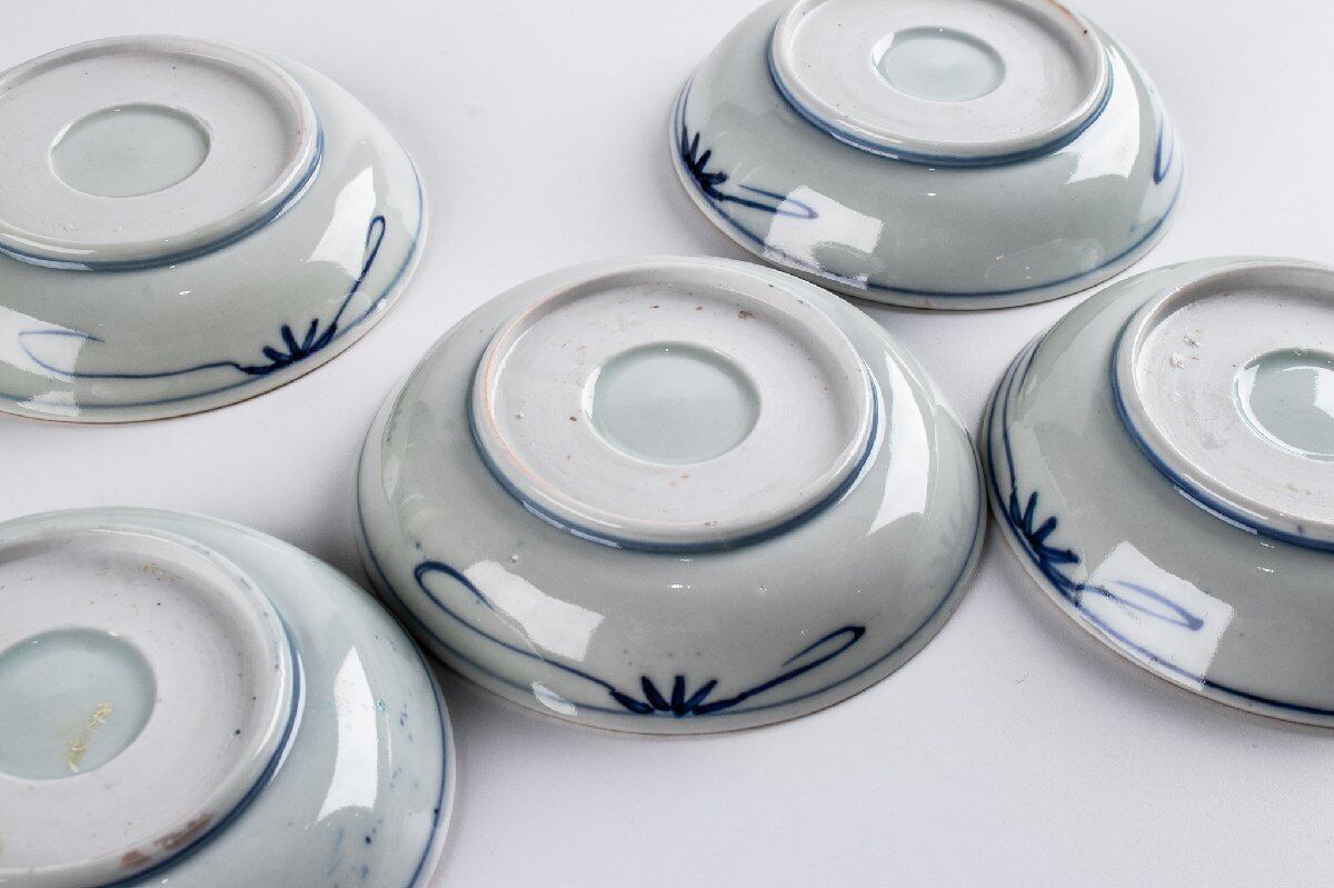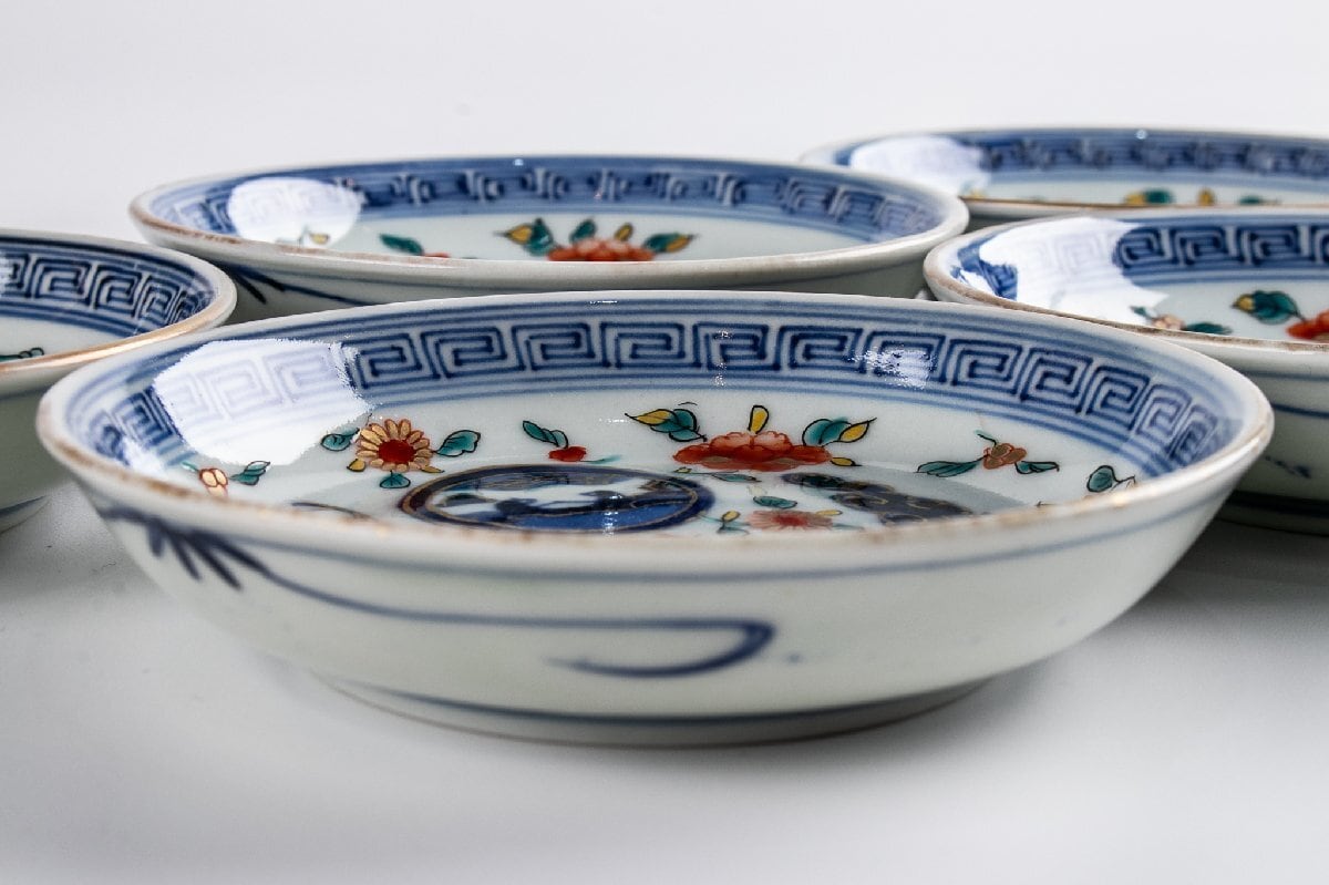古伊万里 染錦丸草花文四寸皿 5客 明治時代 F194B バラ売り可能です