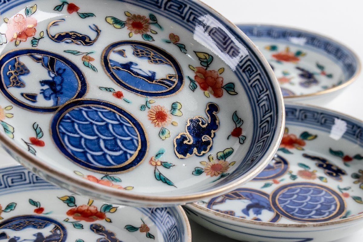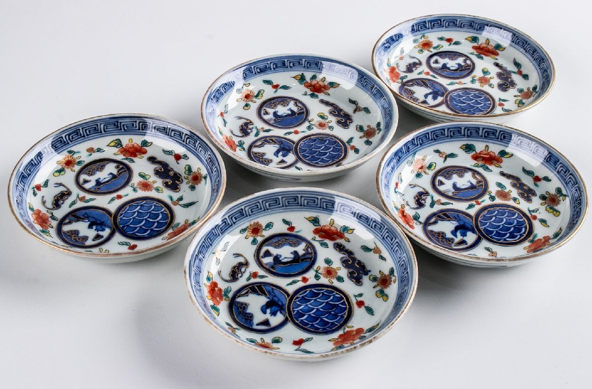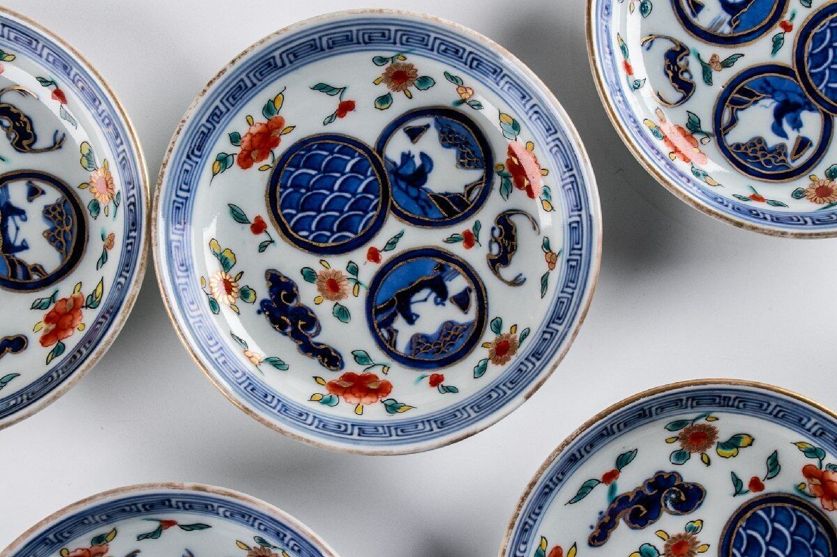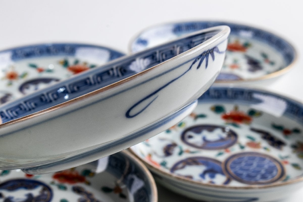 古伊万里 染錦丸草花文四寸皿 5客 明治時代 F194B バラ売り可能です