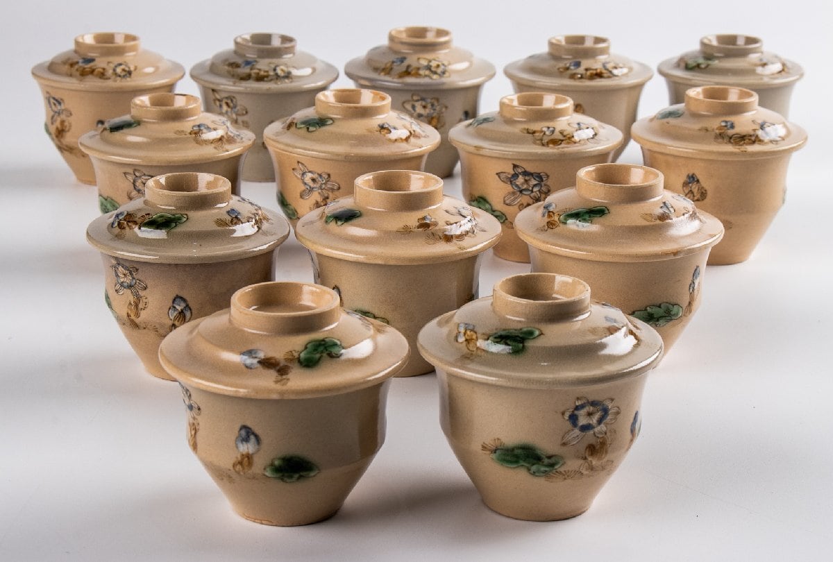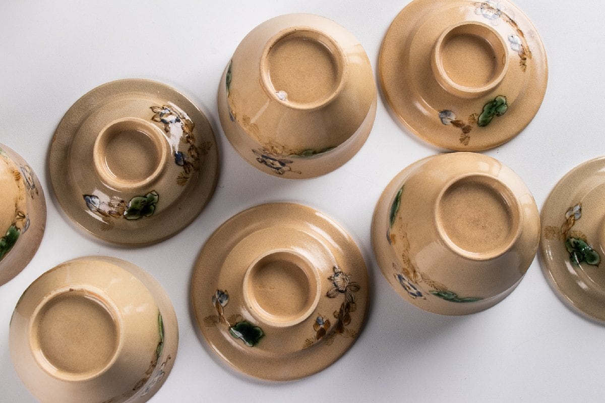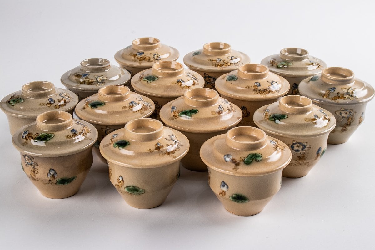 京焼 色絵草花文蓋物 小吸物 14客 F194C バラ売り可能です