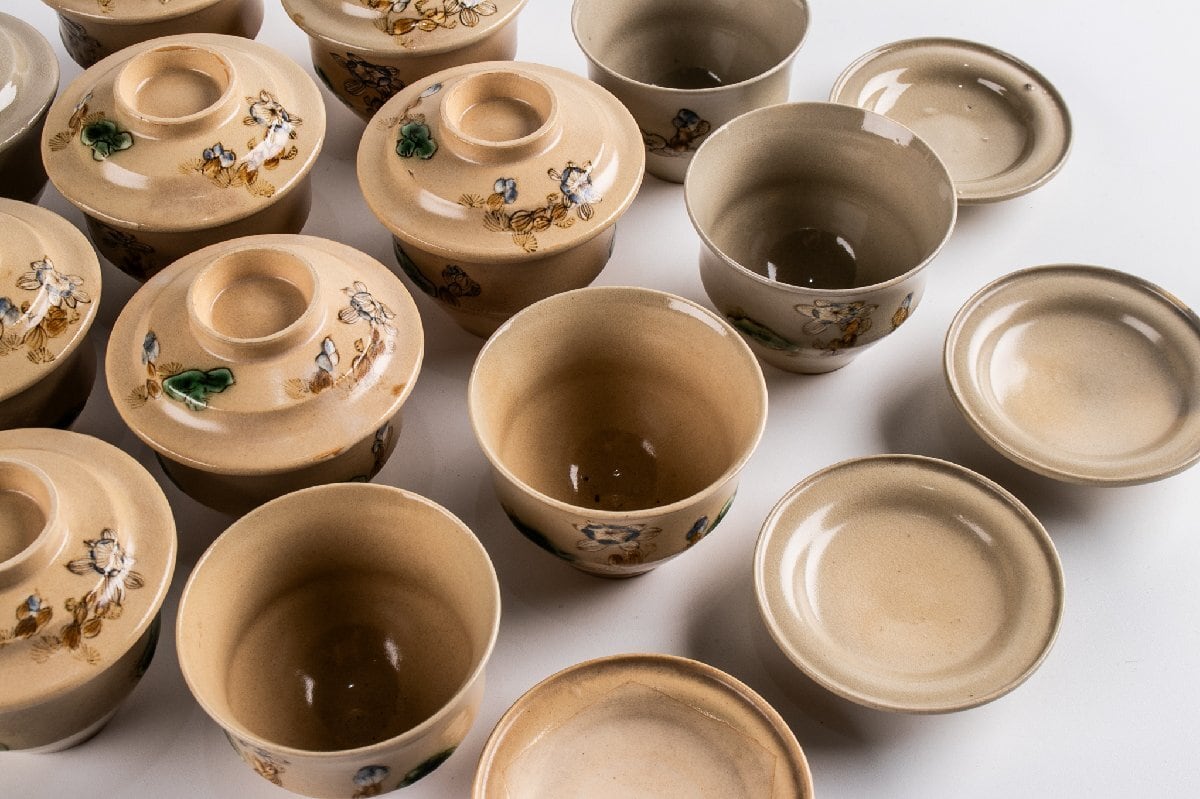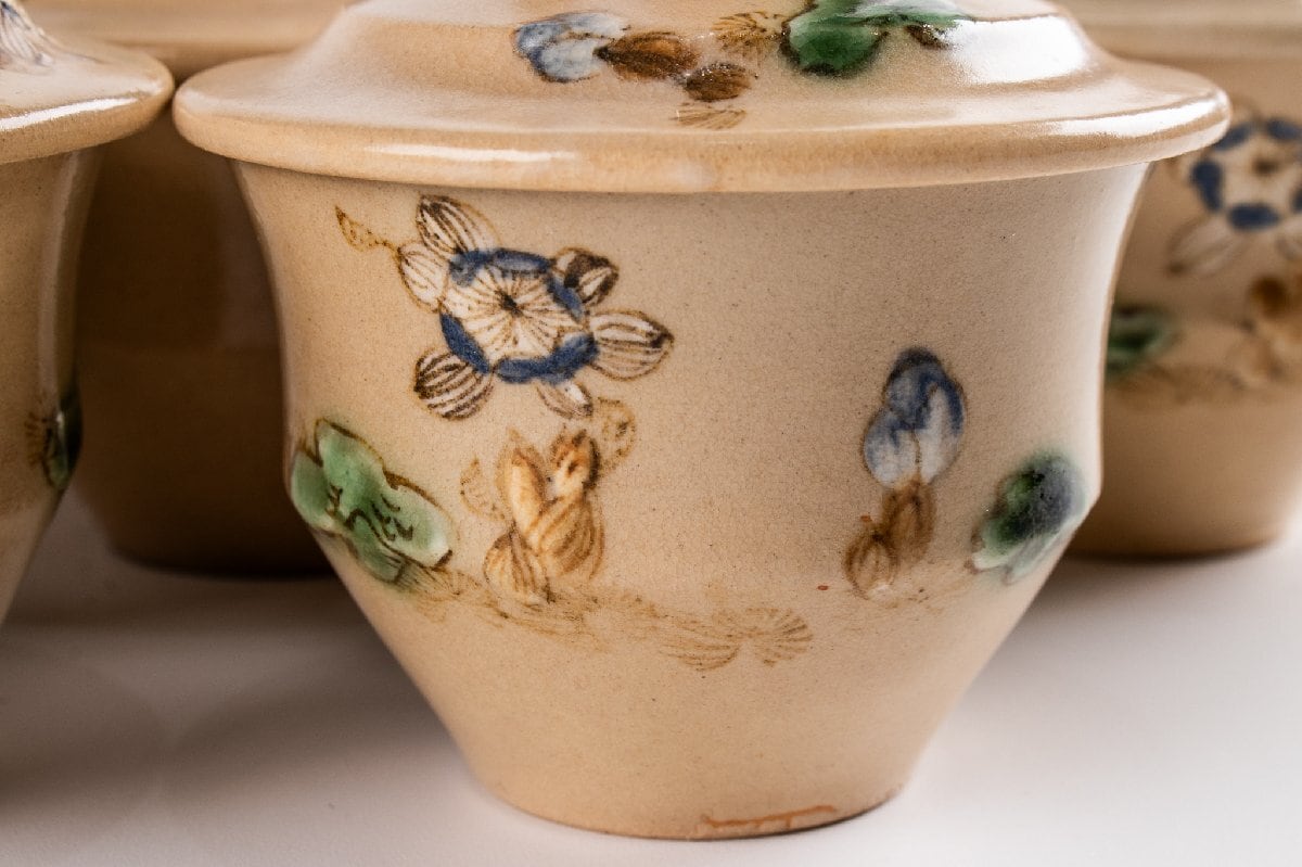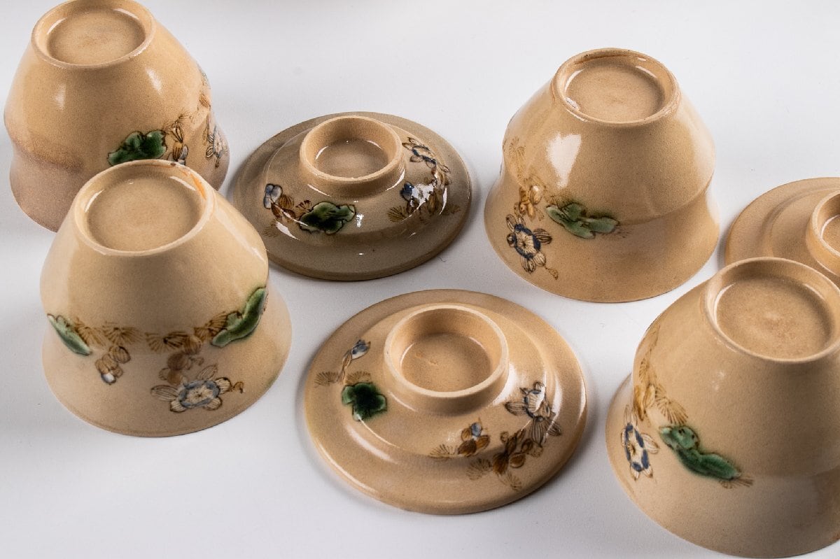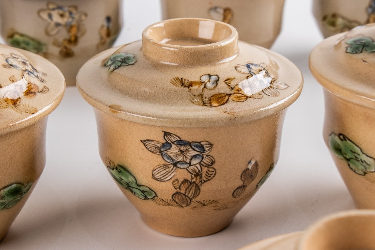 京焼 色絵草花文蓋物 小吸物 14客 F194C バラ売り可能です