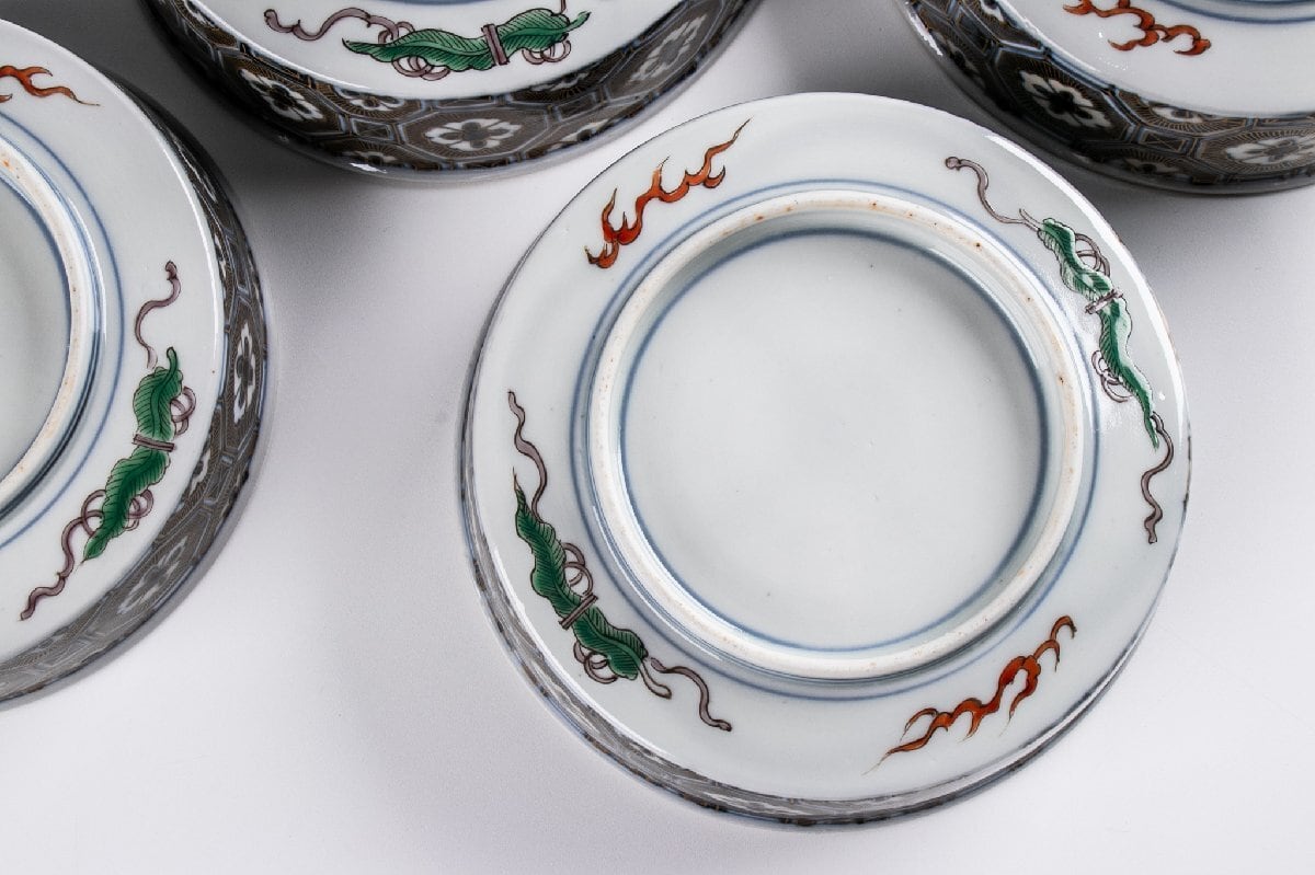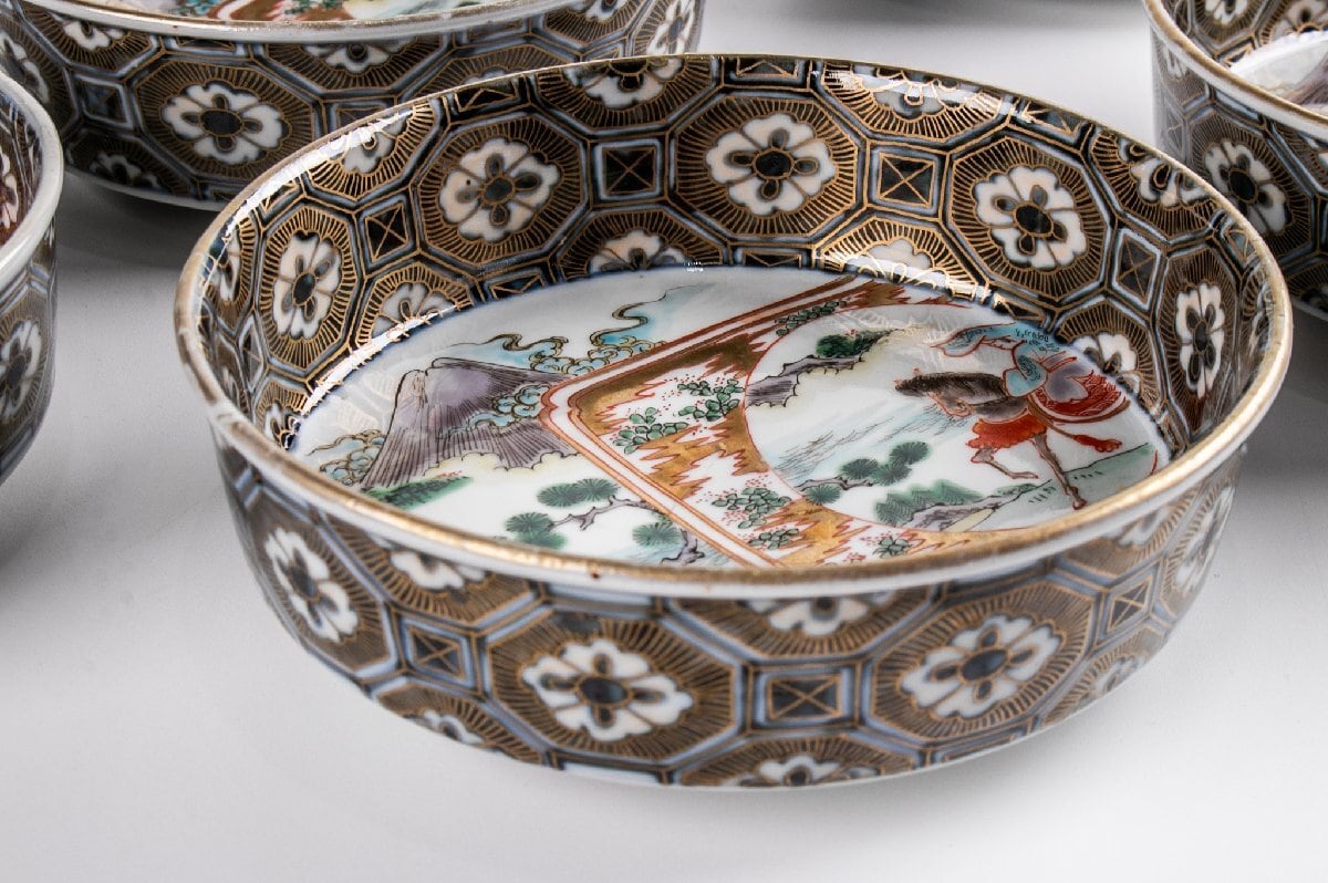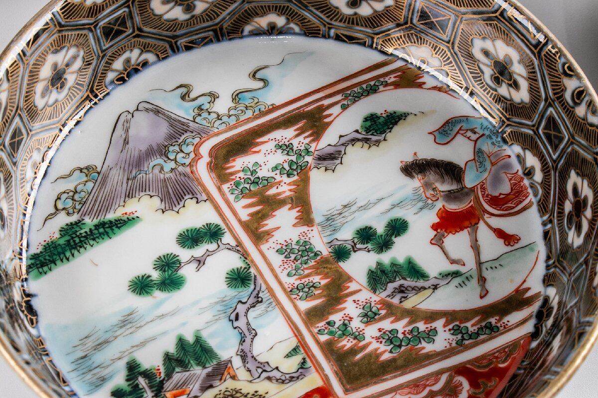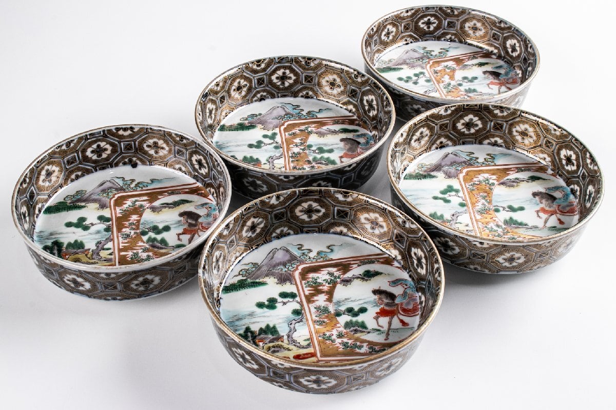 古伊万里 染錦騎馬富士文鉢 5客組 明治時代 箱付 F276