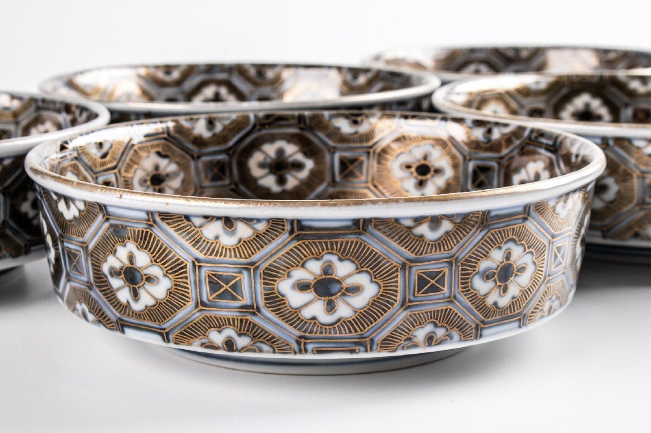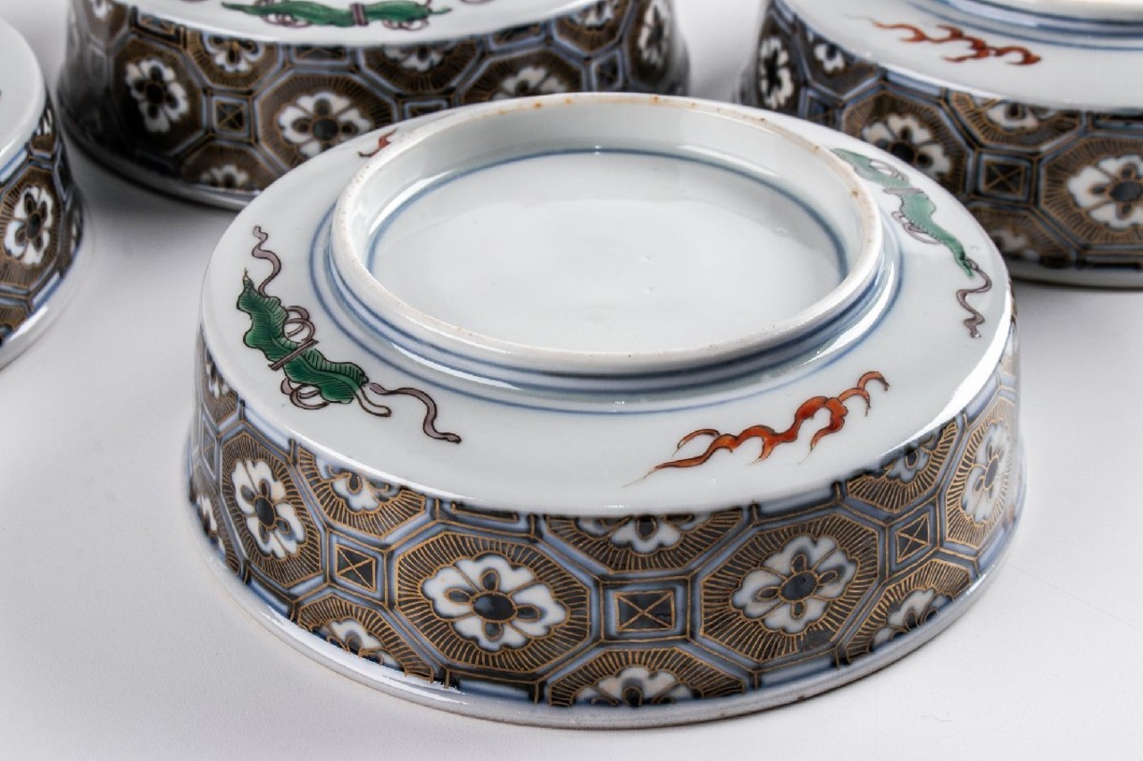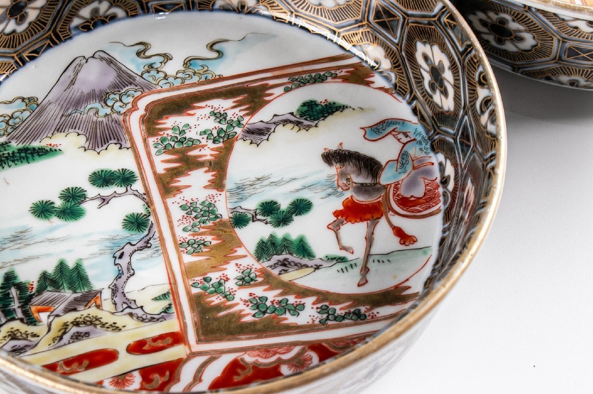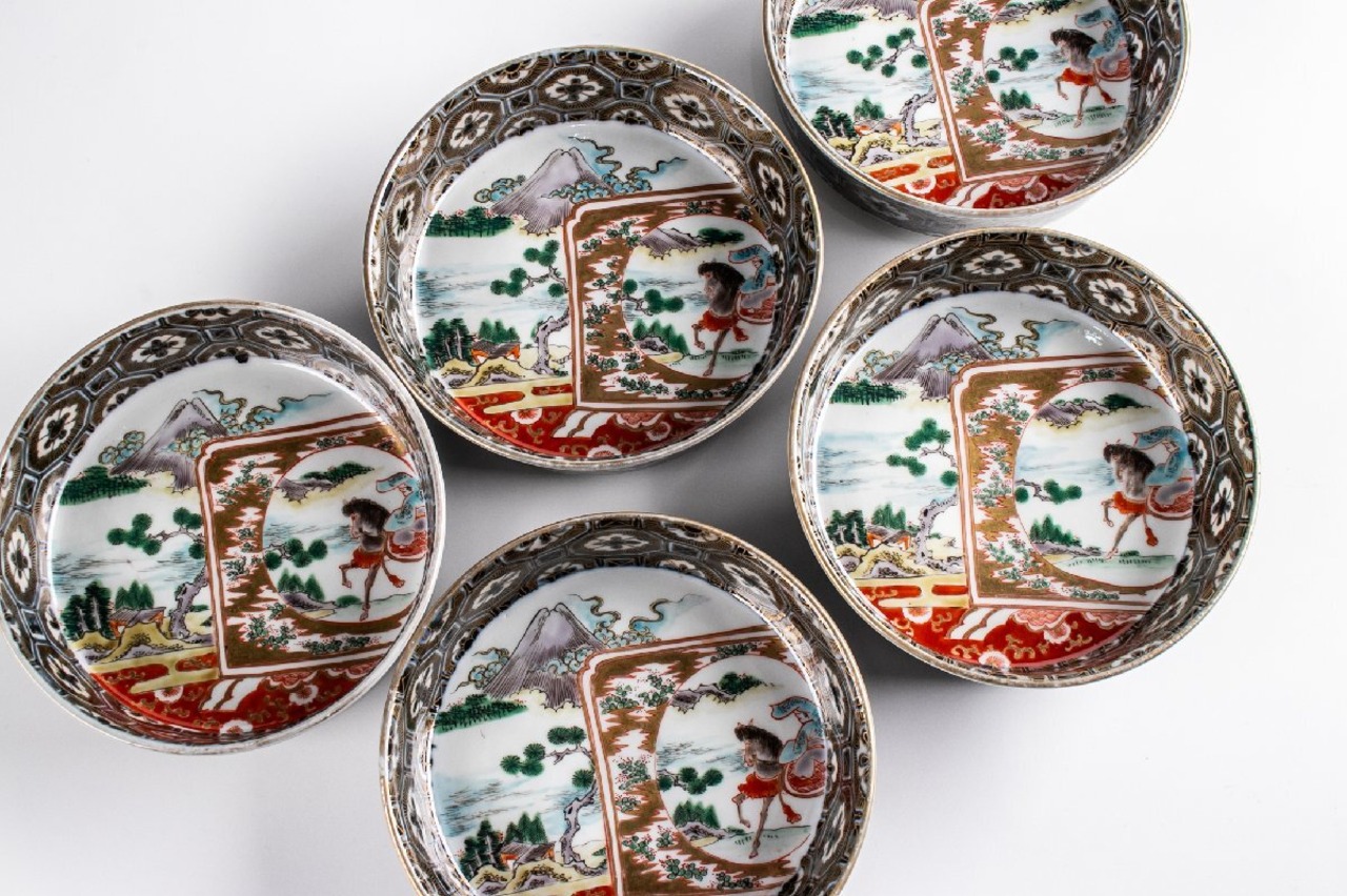 古伊万里 染錦騎馬富士文鉢 5客組 明治時代 箱付 F276