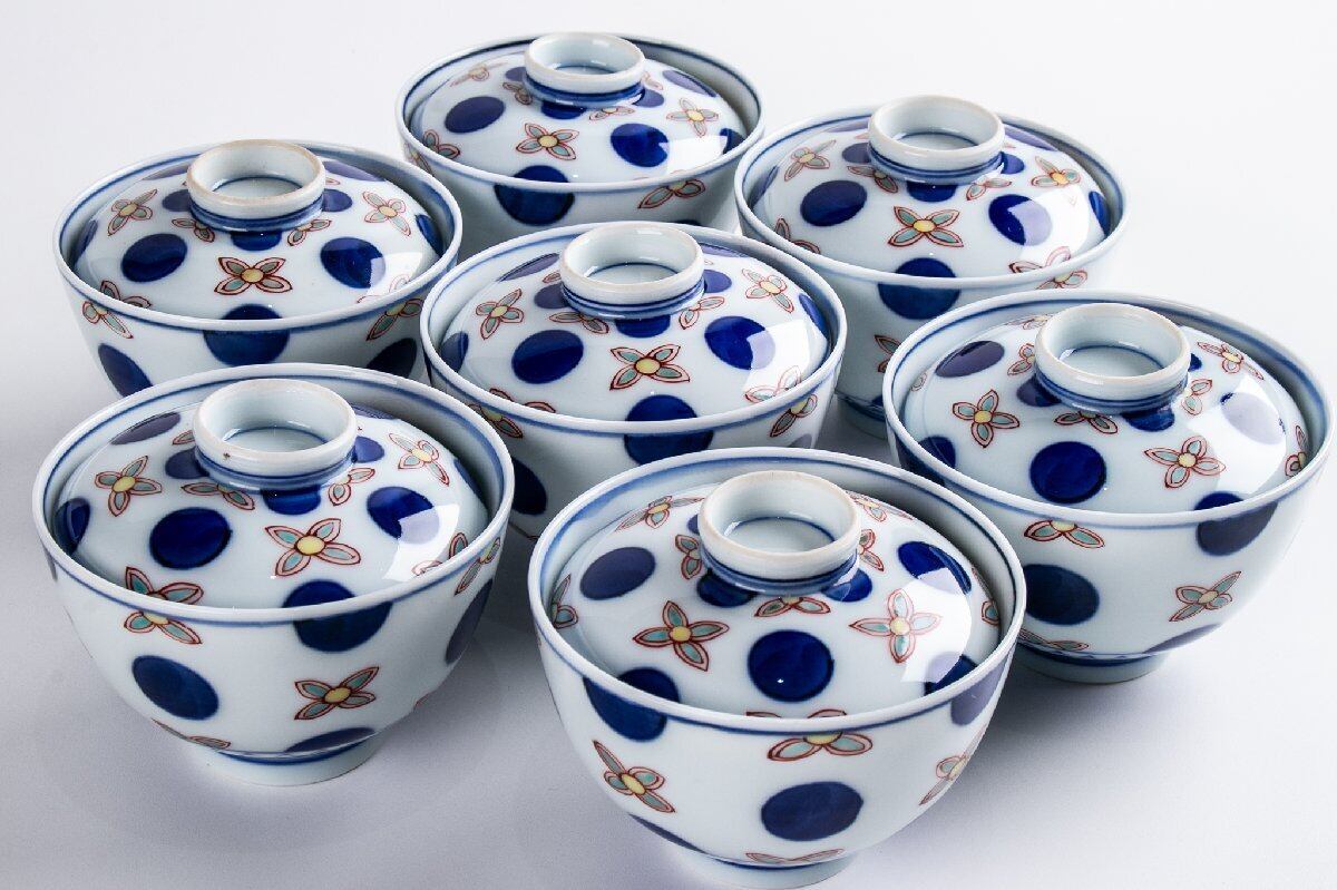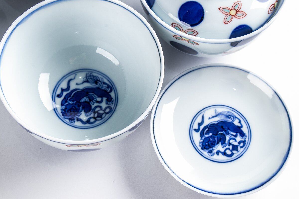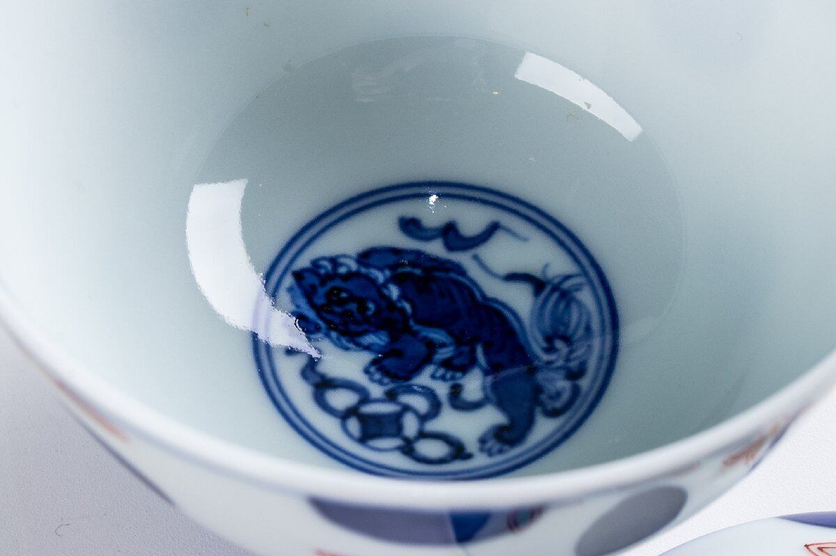 京焼 色絵染付獅子丸文蓋茶碗 蓋物 7客 F320 バラ売り可能です
