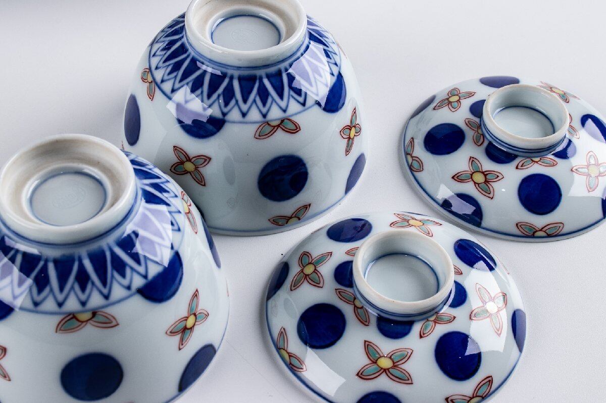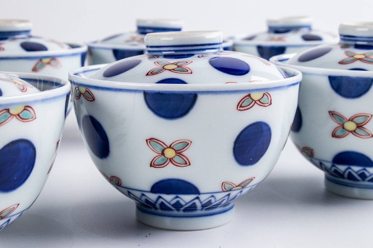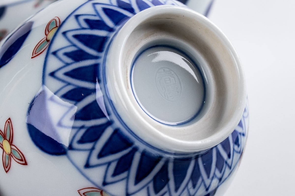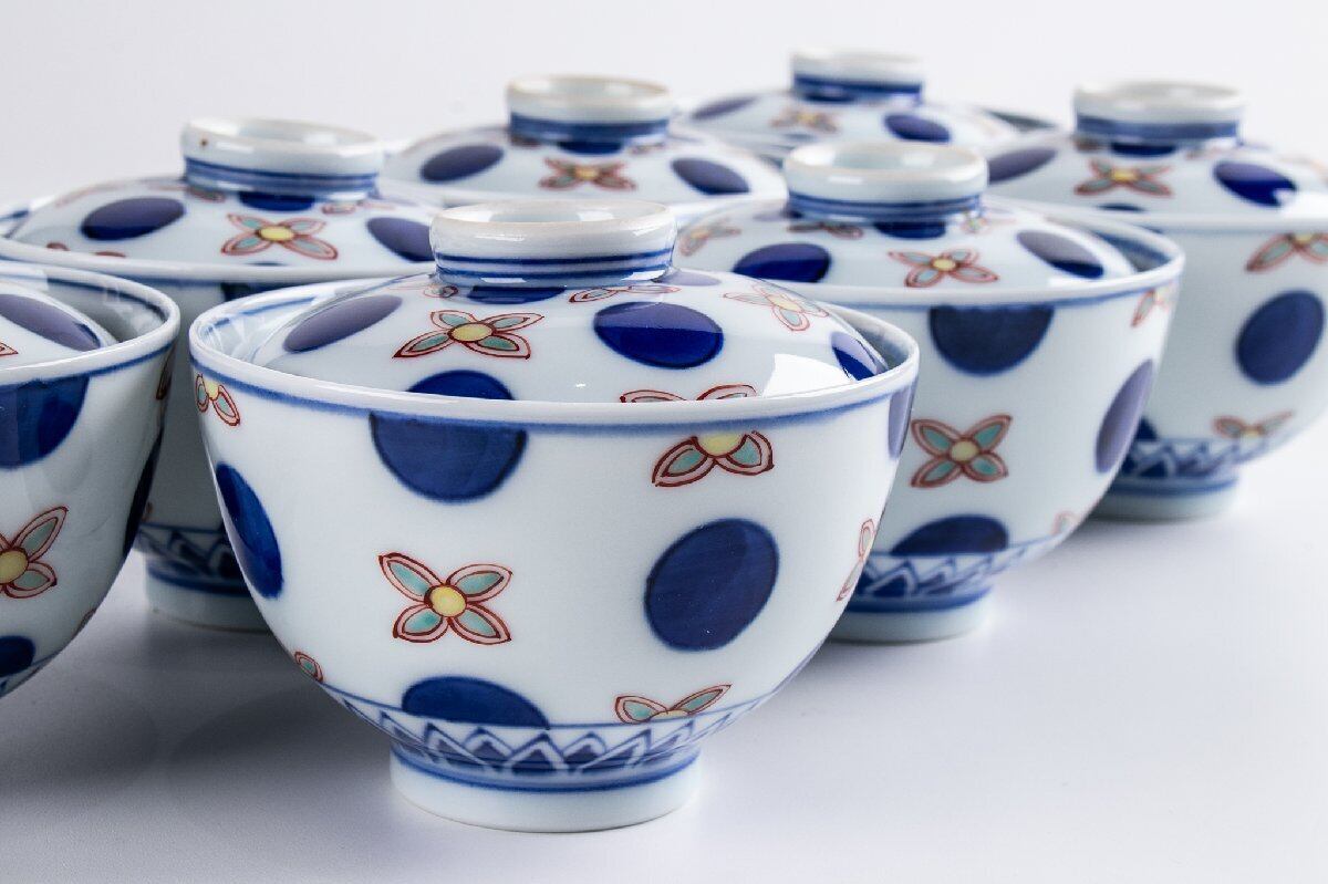 京焼 色絵染付獅子丸文蓋茶碗 蓋物 7客 F320 バラ売り可能です
