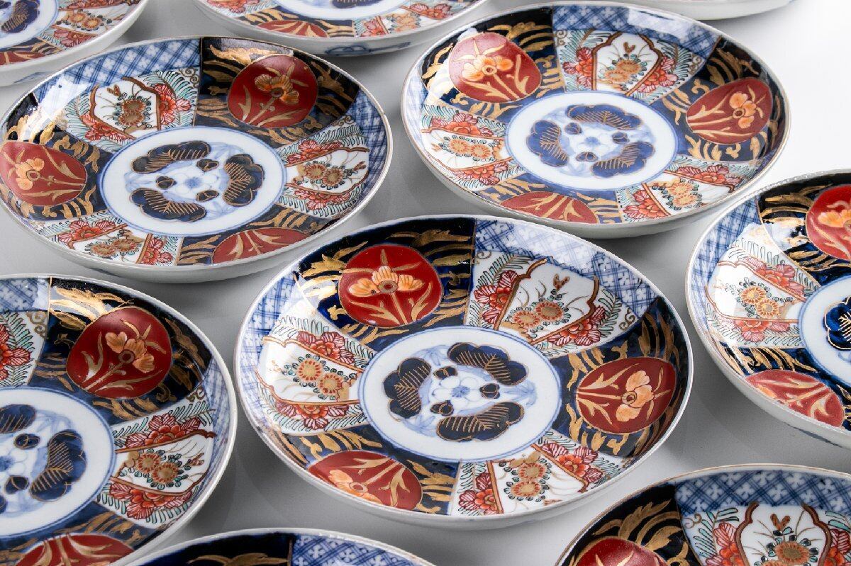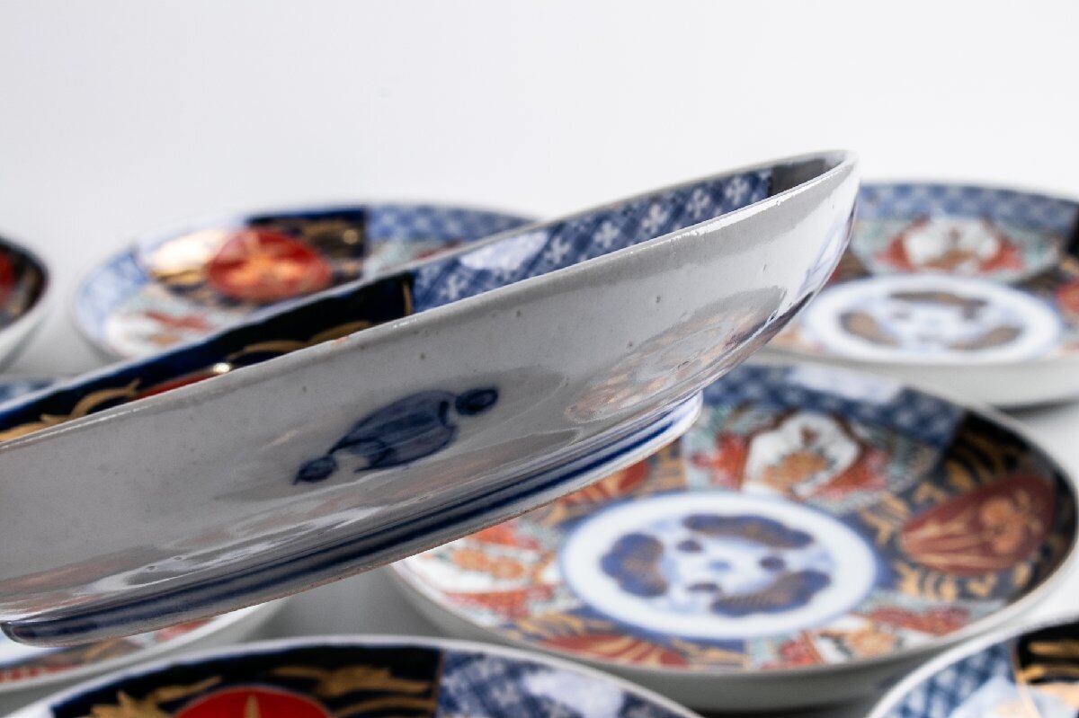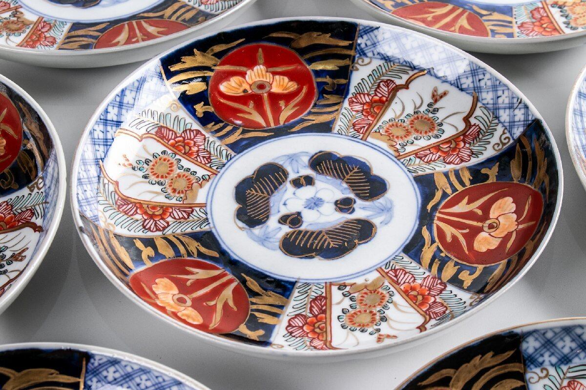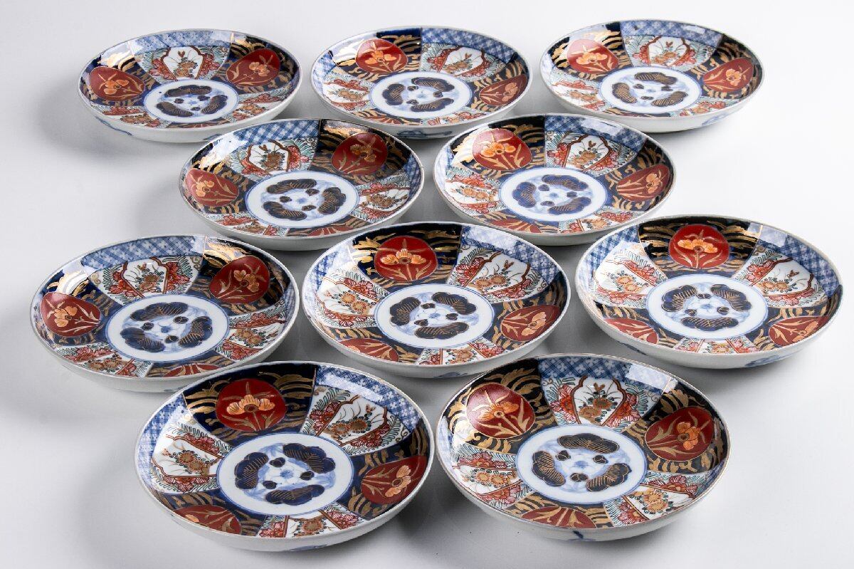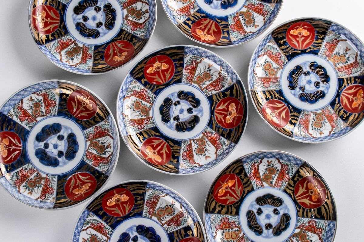 古伊万里 染錦草花三友文中皿 10客 明治時代 F305A バラ売り可能です