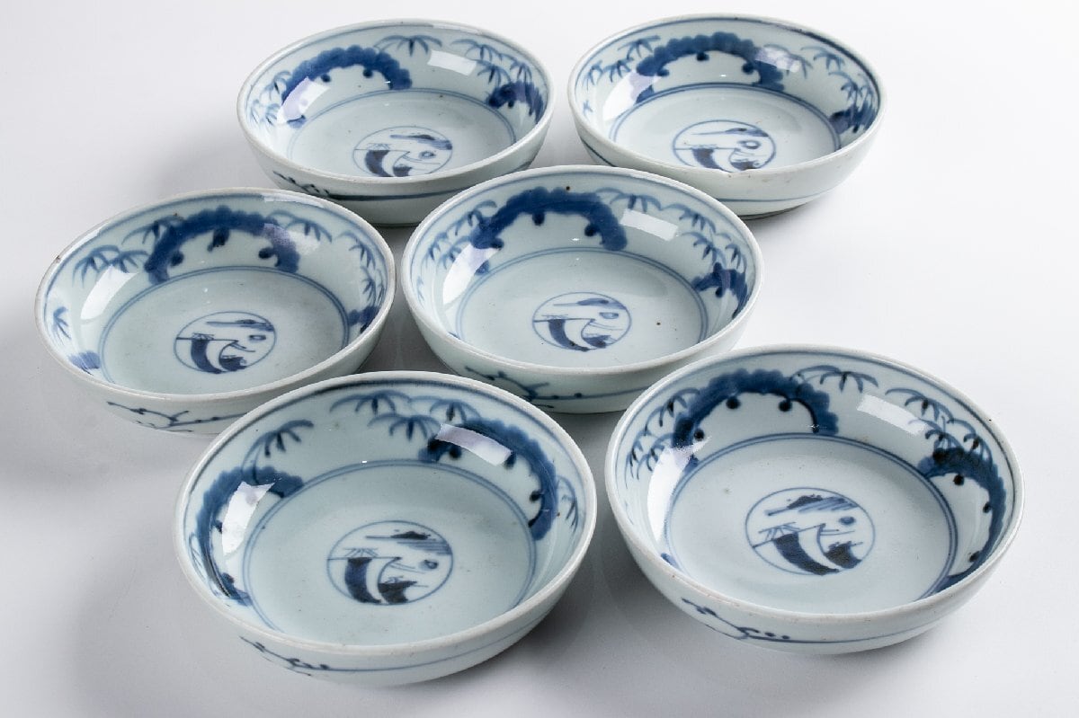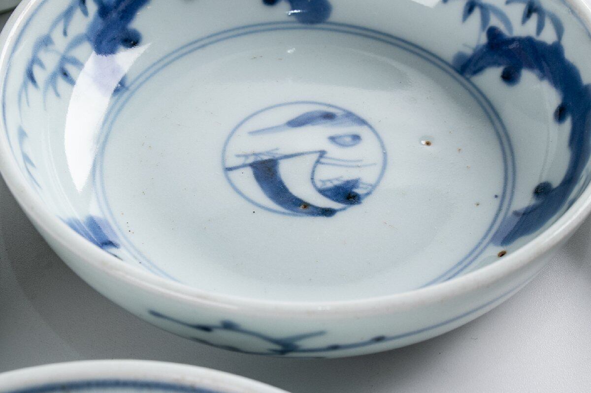 古伊万里 染付くらわんか笹雪の輪文向付 6客 江戸後期 F404 バラ売り可能です