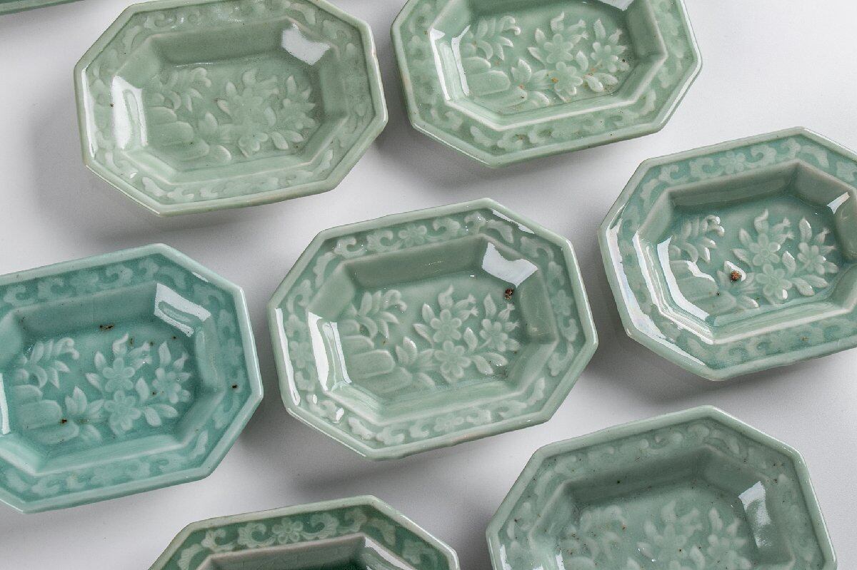 三田青磁 陽刻草花文八角小皿 10客 F386B バラ売り可能です
