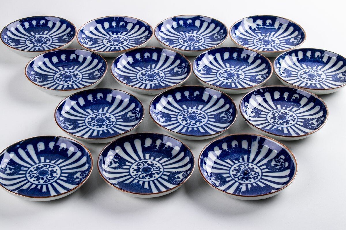 印判菊花桐葉鳳凰文中皿 7客 F399 バラ売り可能です