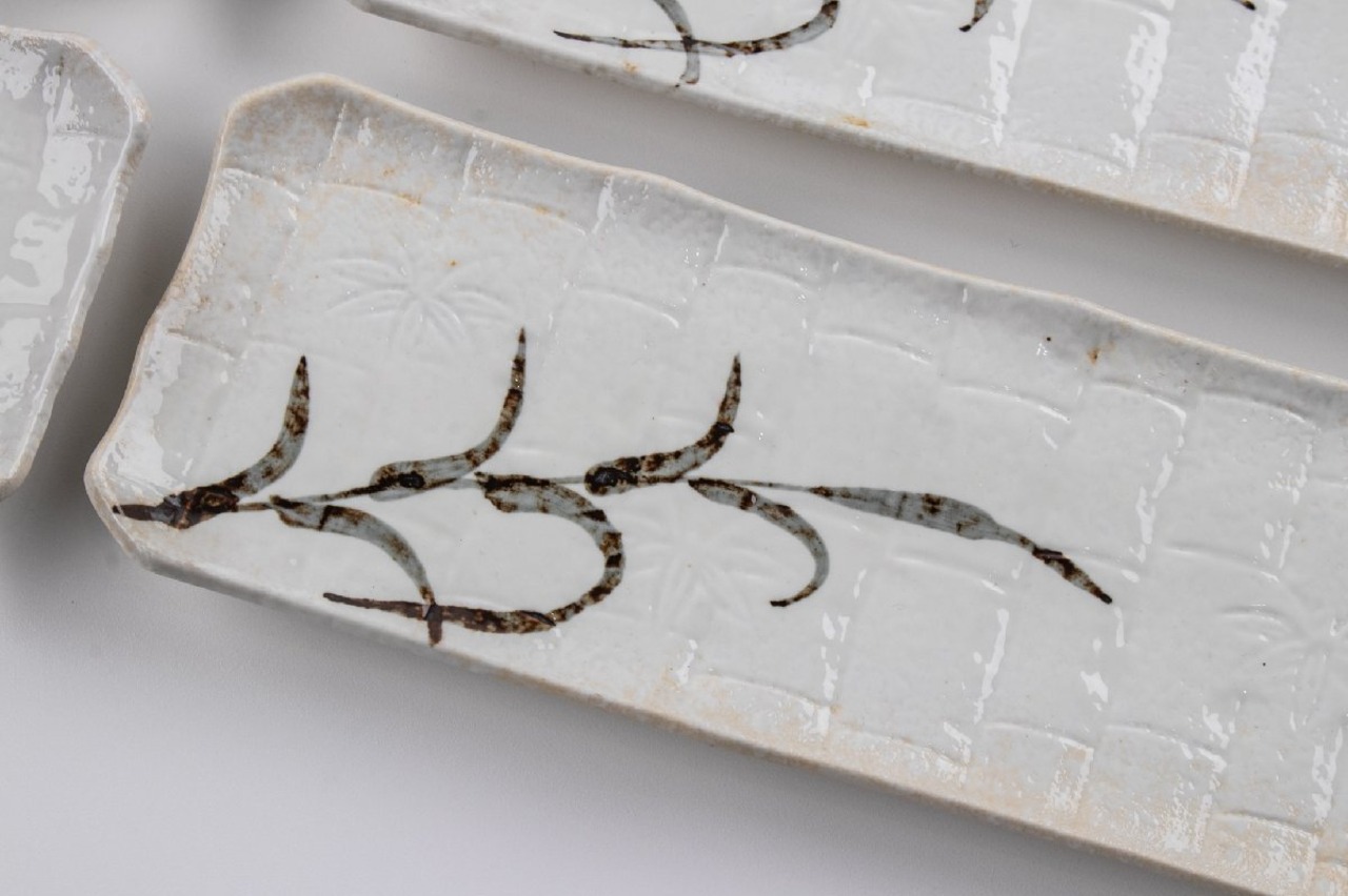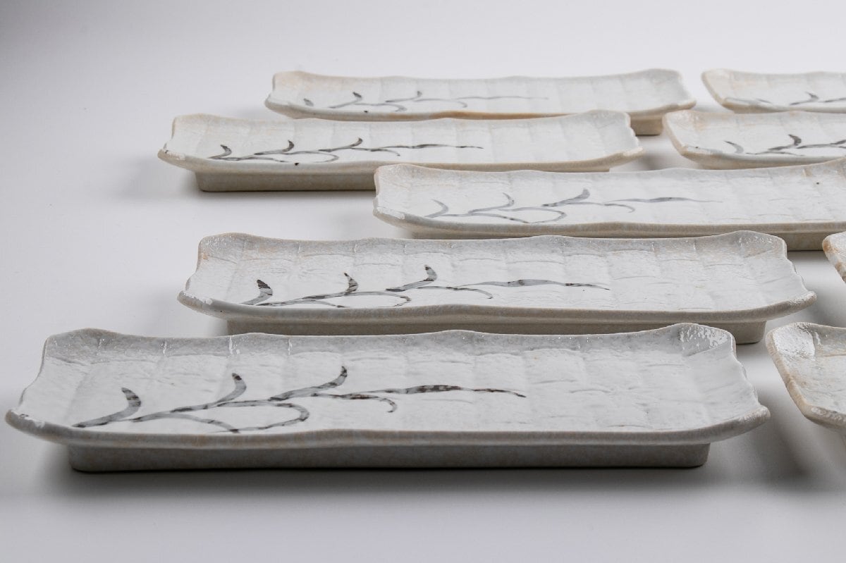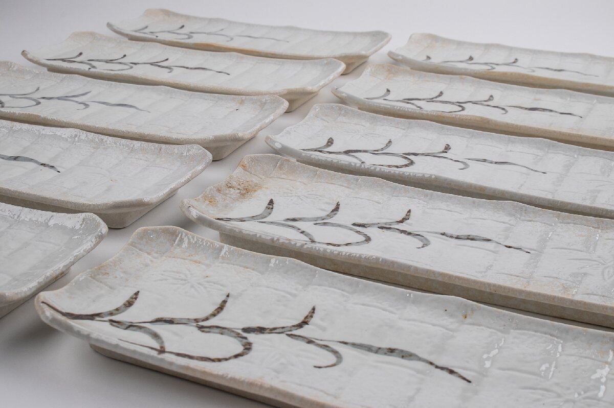 志野 草絵長皿 10客 E2313C