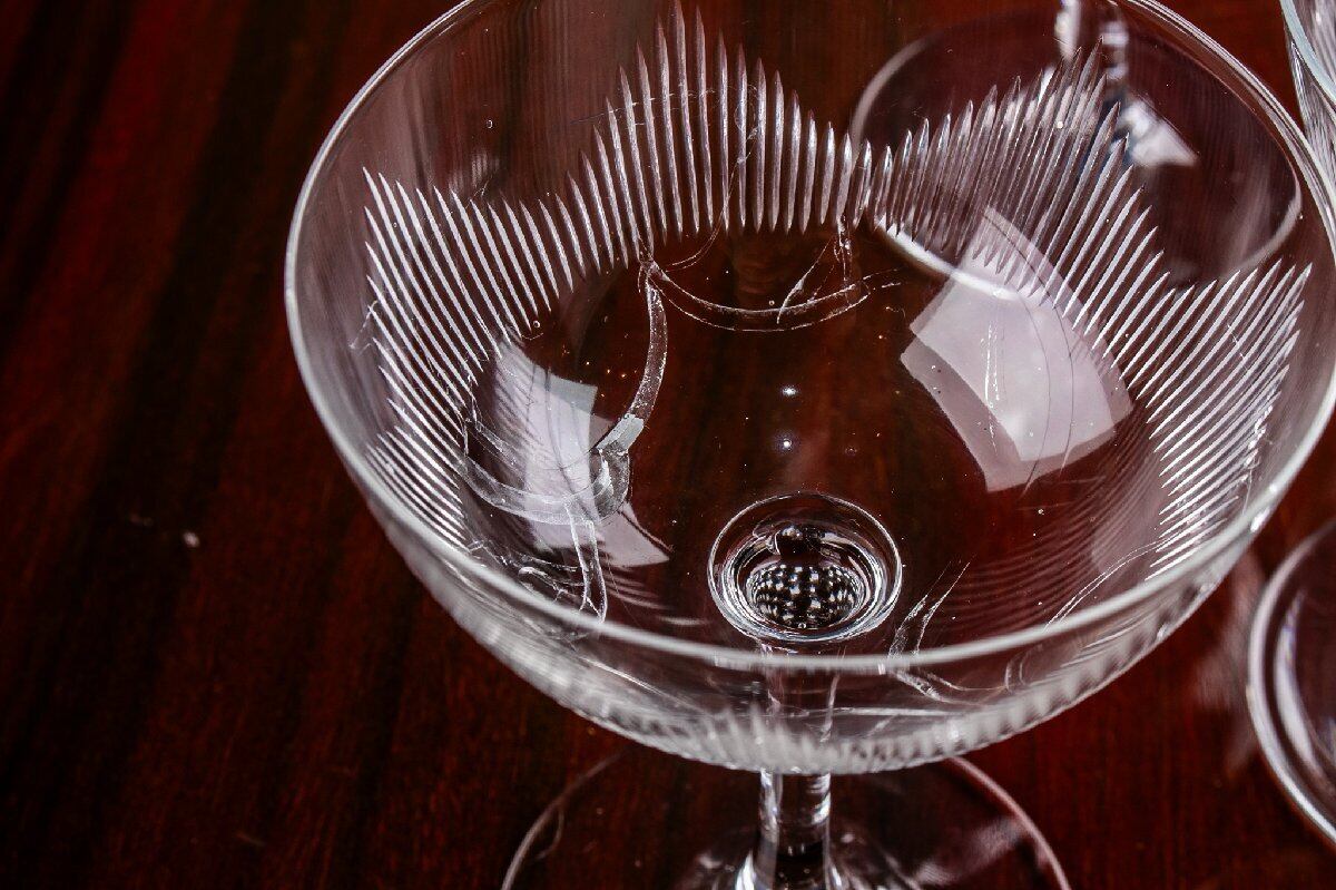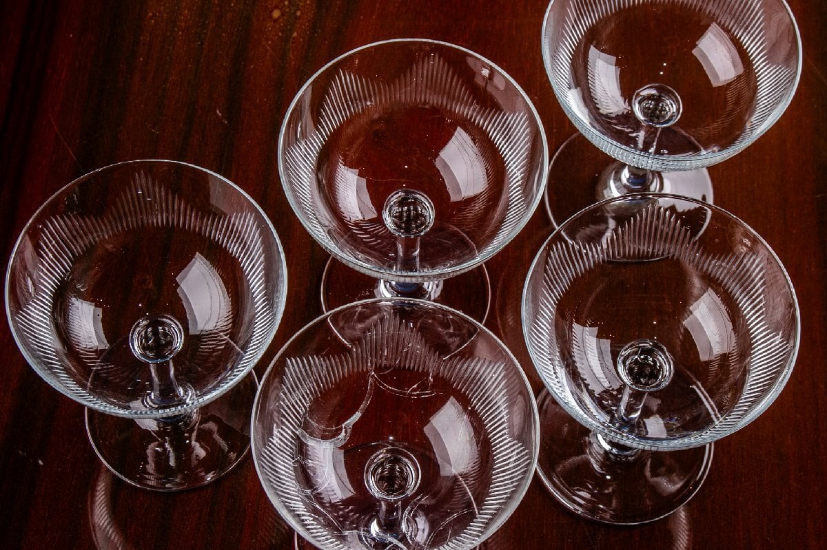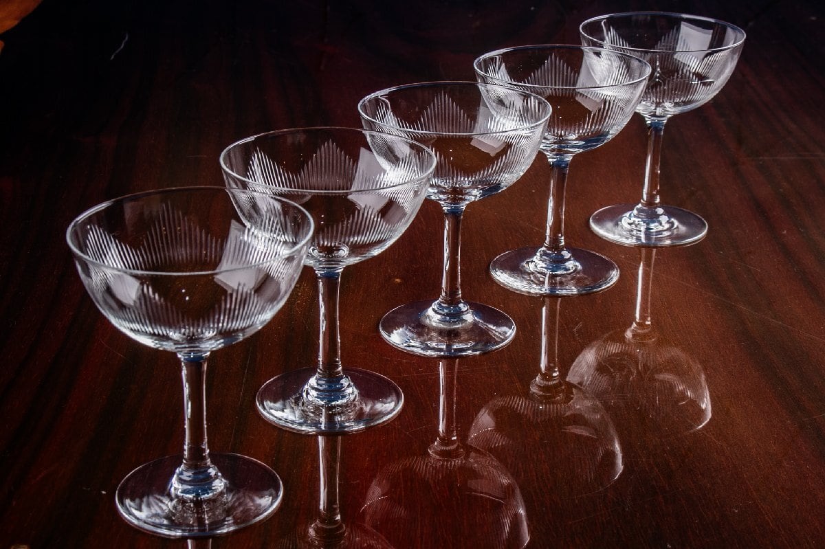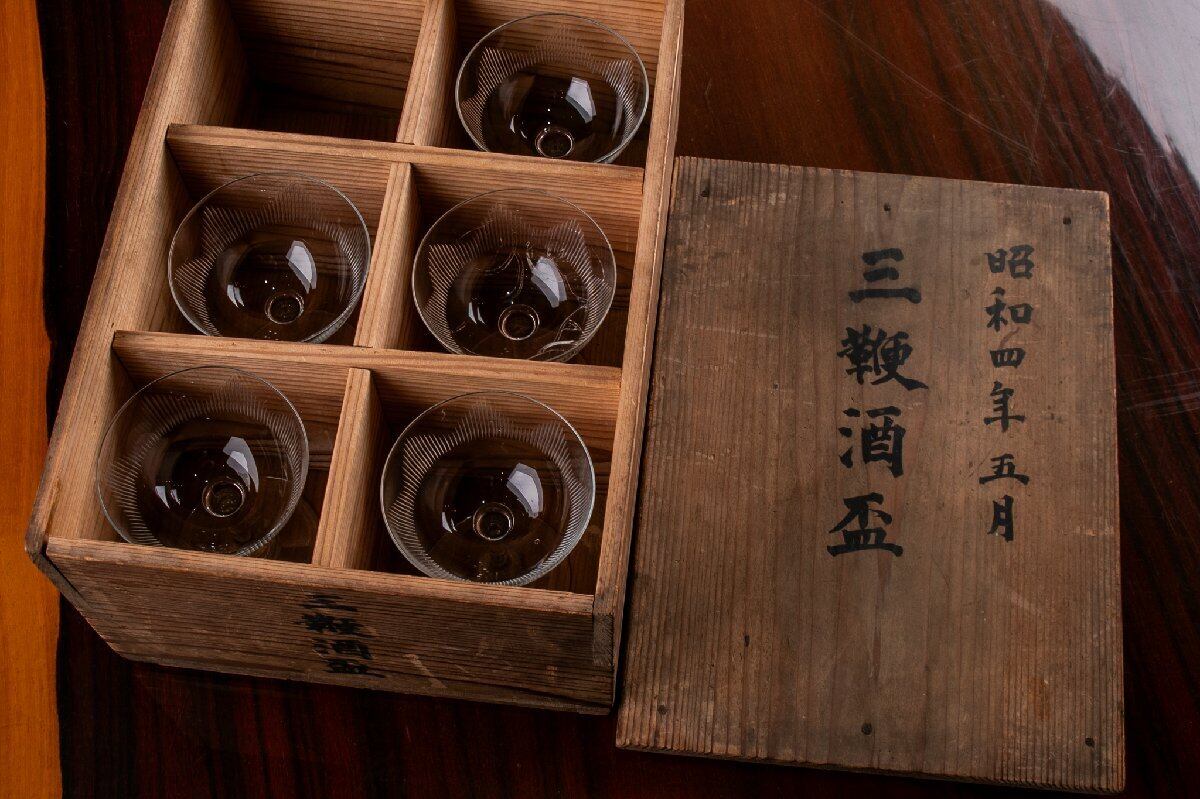 カットガラス 三鞭酒器 ギヤマン ワイングラス 5客 箱付 F198A