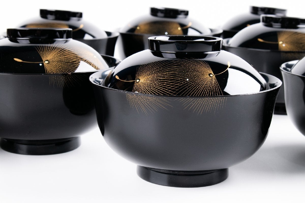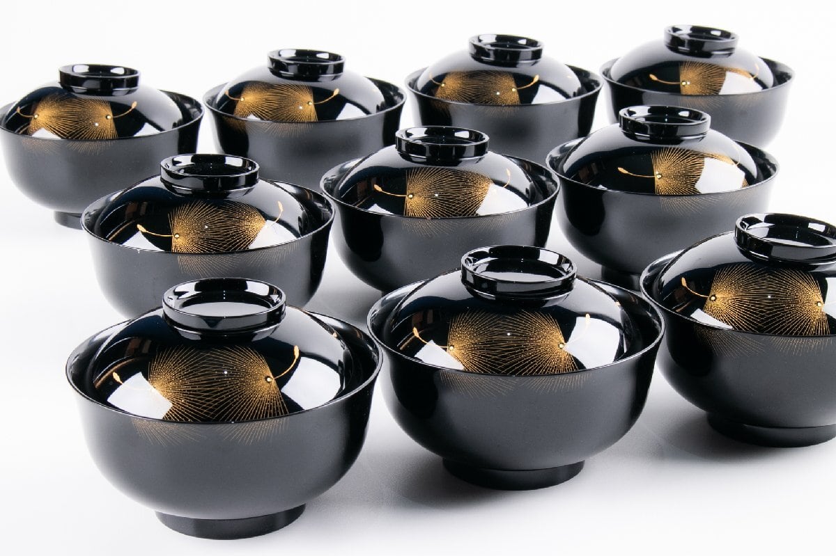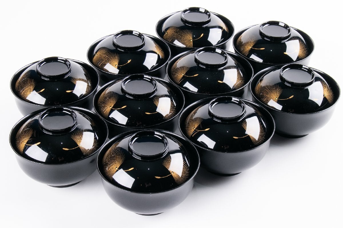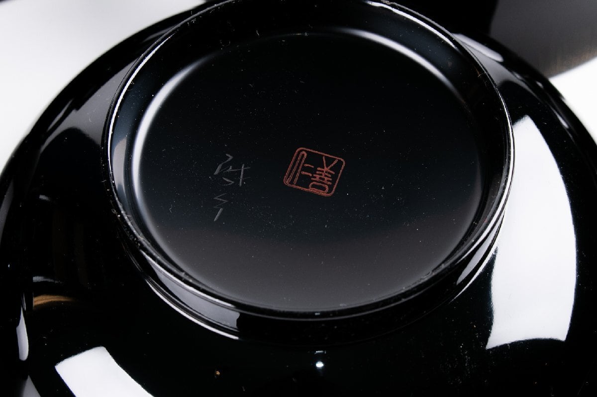輪島屋善仁 黒塗呂色仕上 吸物椀 10客 小西啓介 刻 共箱 F535