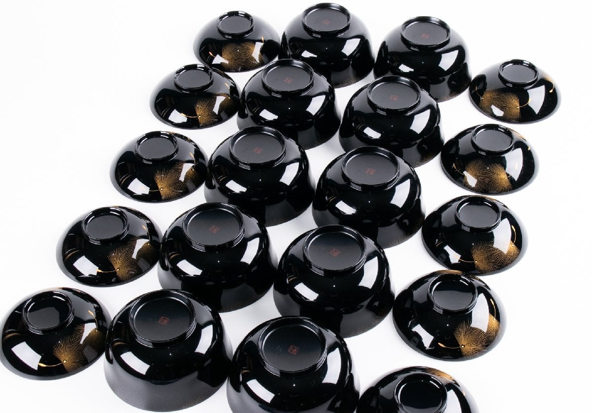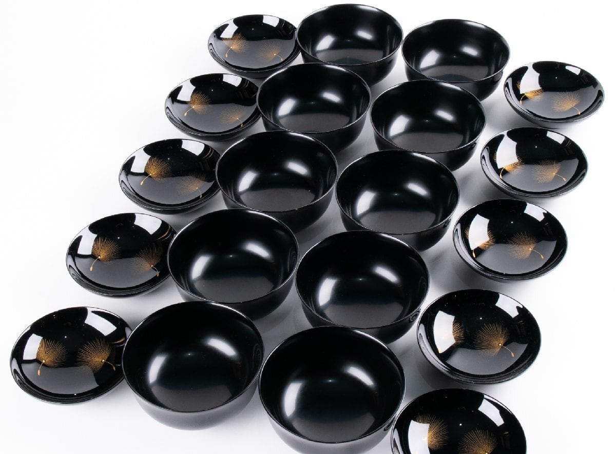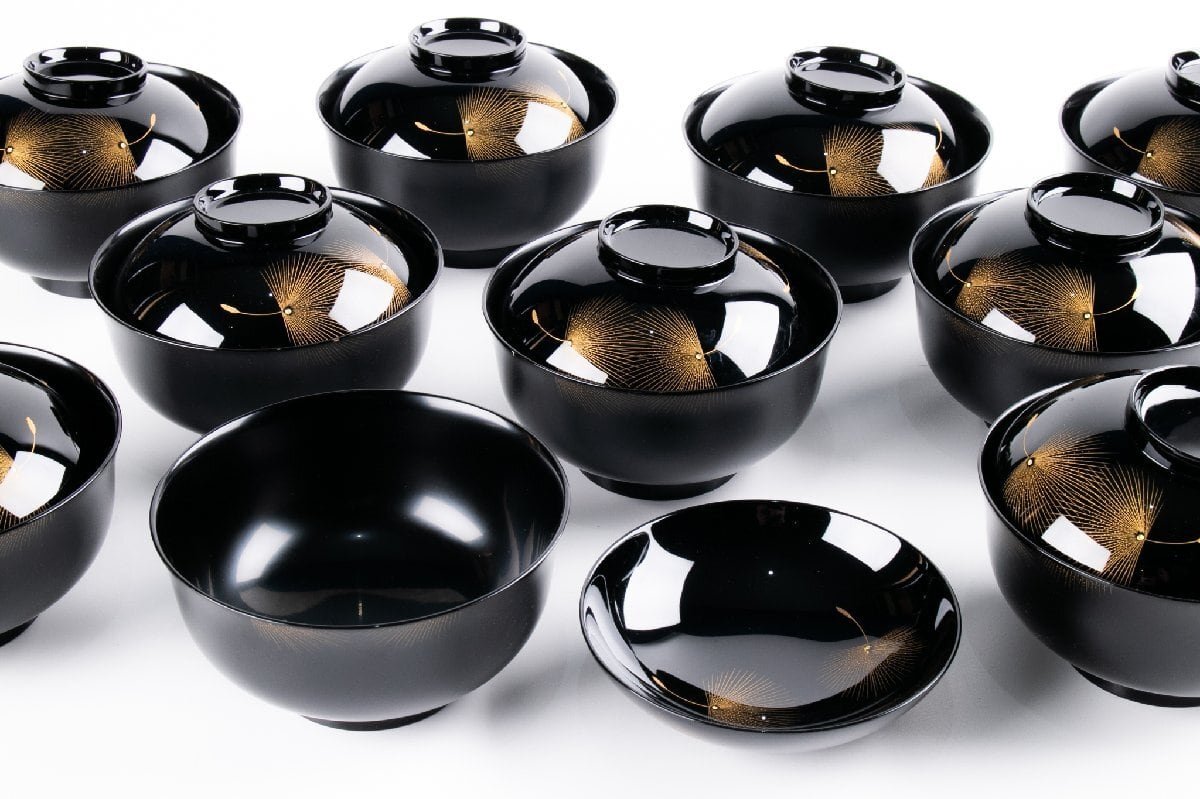 輪島屋善仁 黒塗呂色仕上 吸物椀 10客 小西啓介 刻 共箱 F535