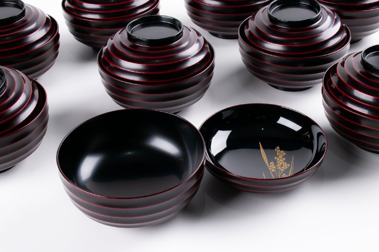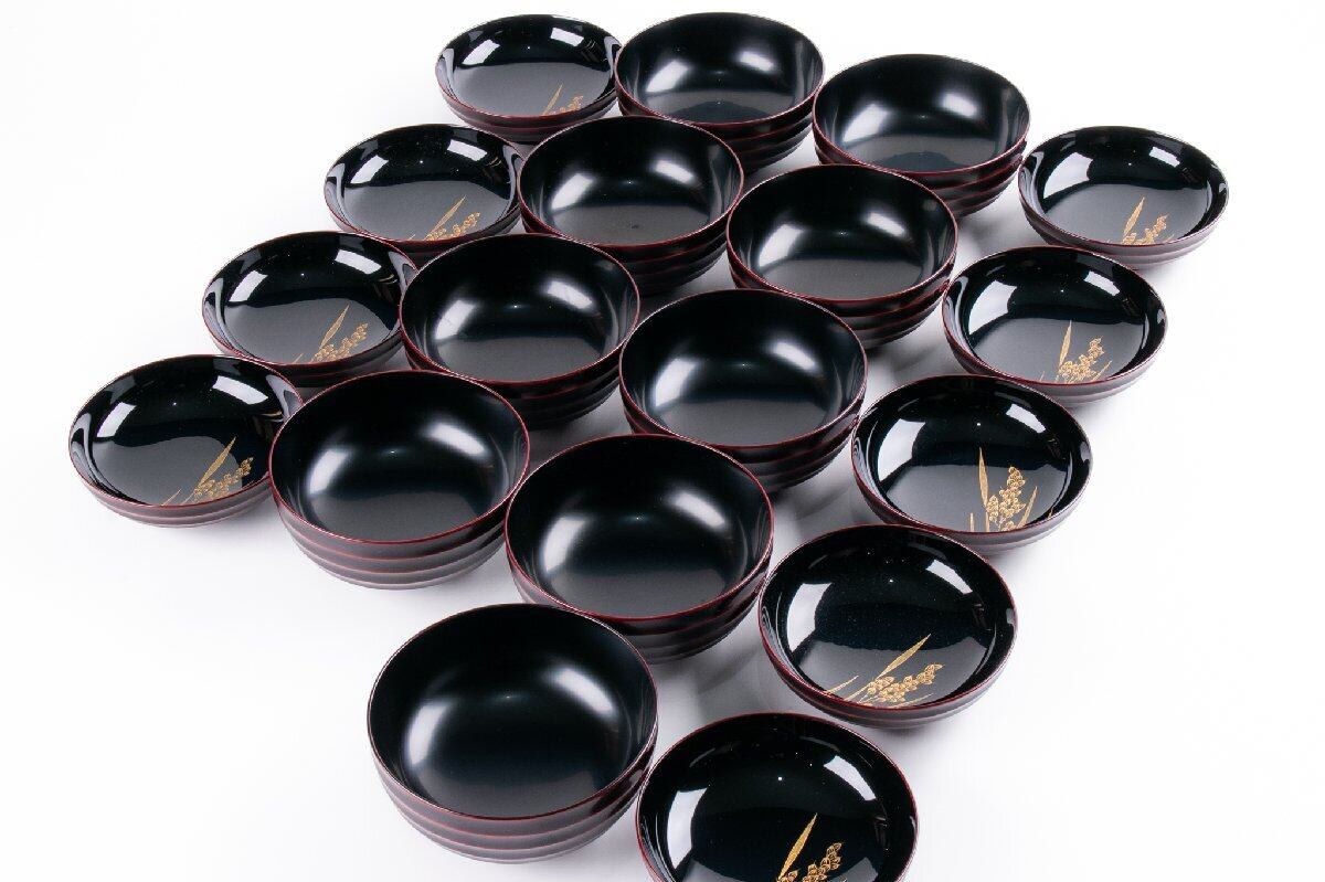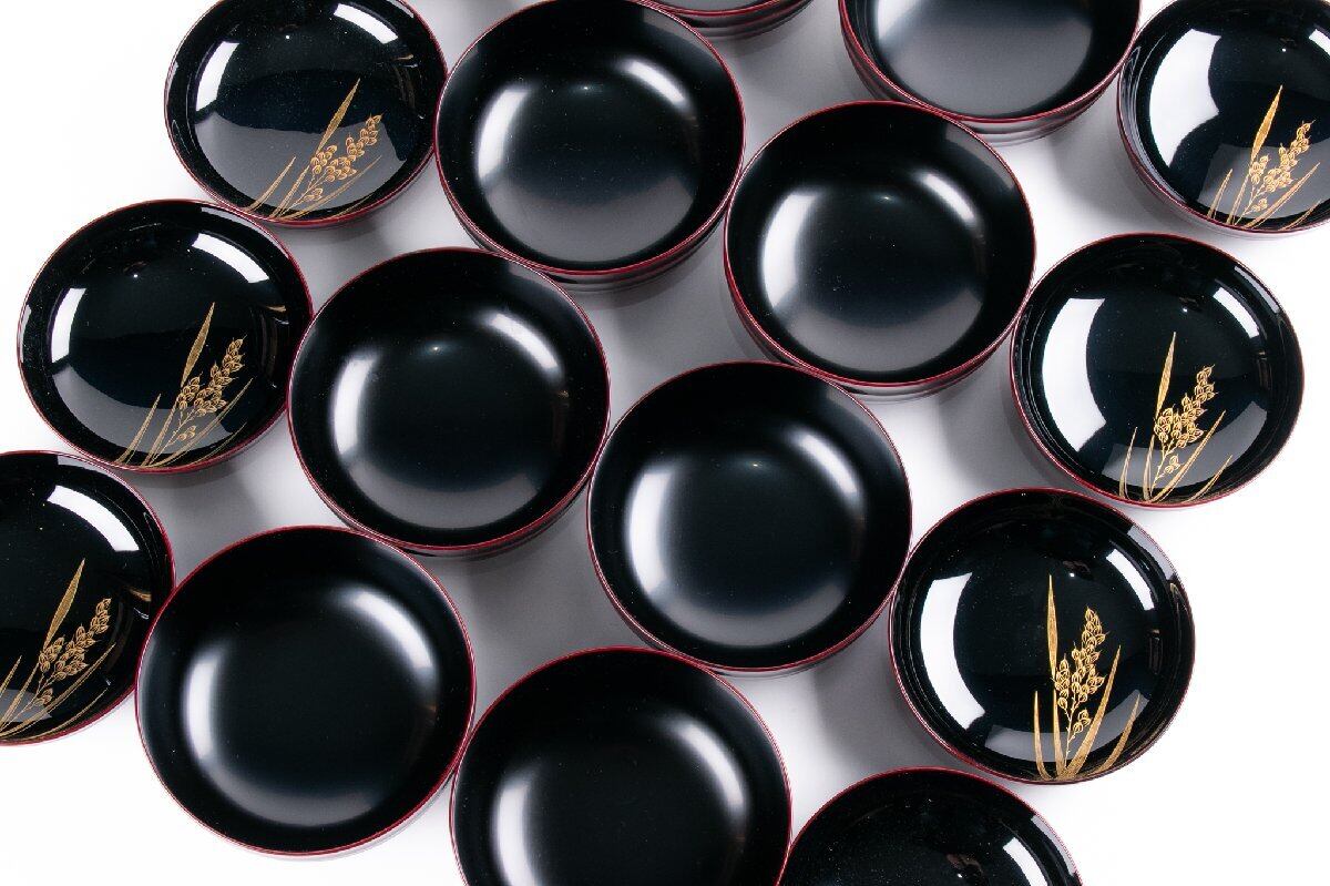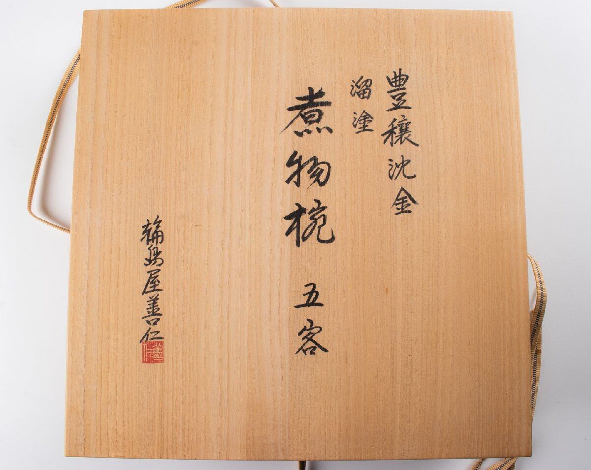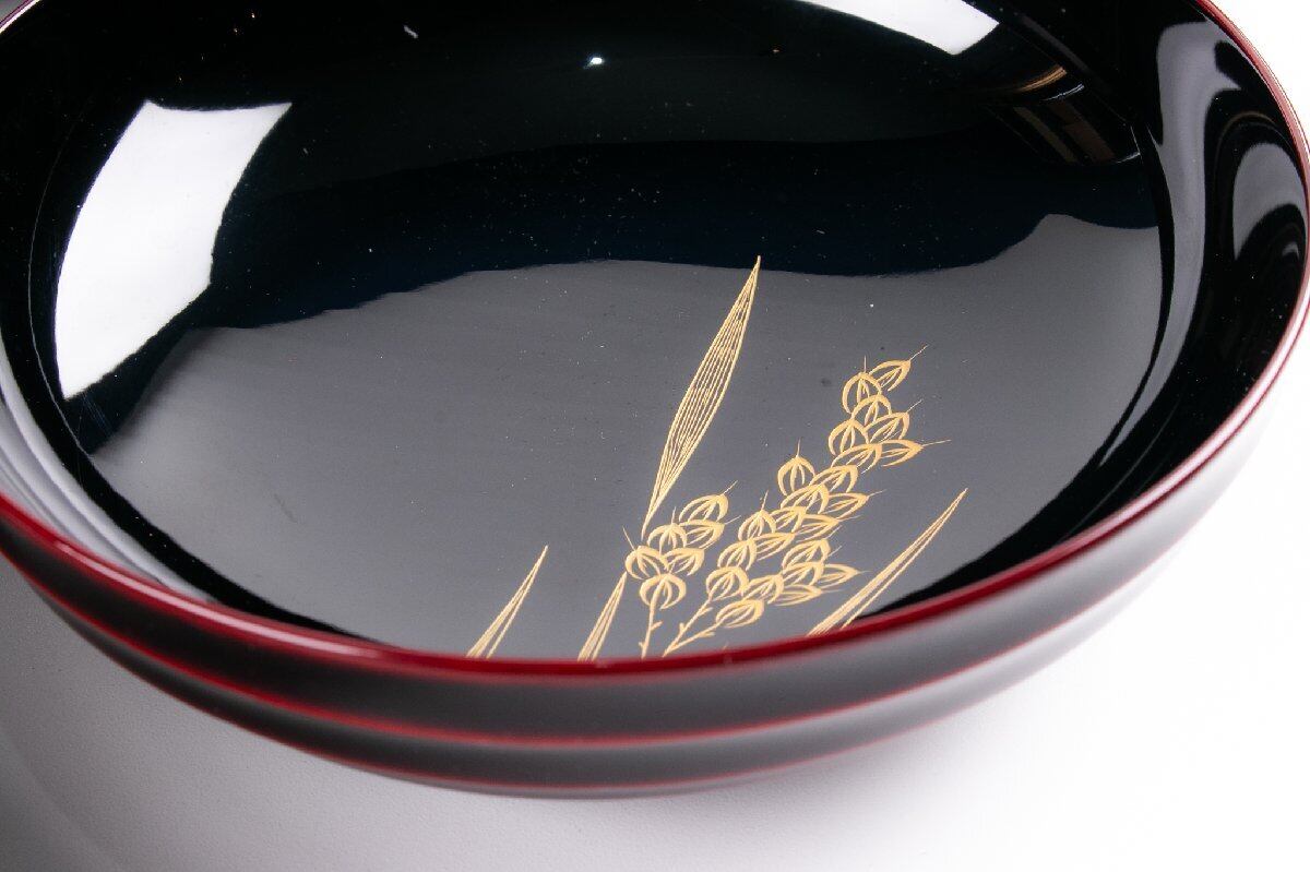 輪島屋善仁 溜塗 豊穣沈金蒔絵 煮物椀 9客 共箱 F534