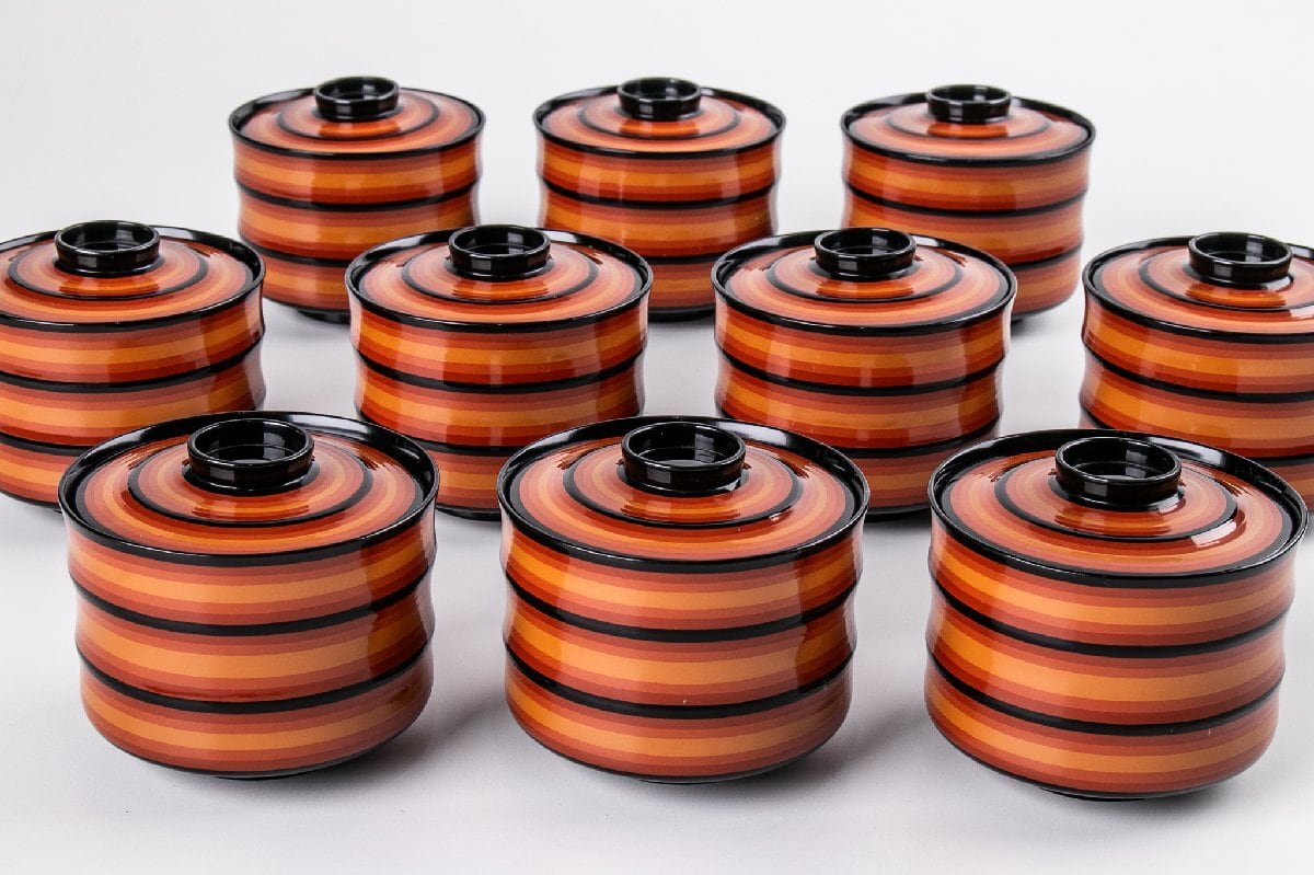 輪島塗 松雲堂 独楽塗吸物椀 10客 共箱 F518B