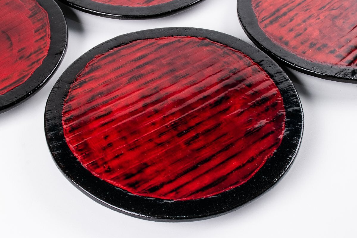 輪島塗 溜塗根来盆 2客 F437 バラ売り可能です