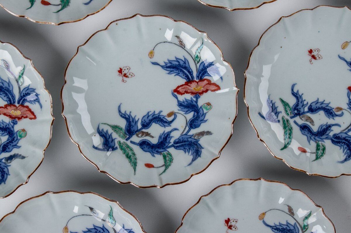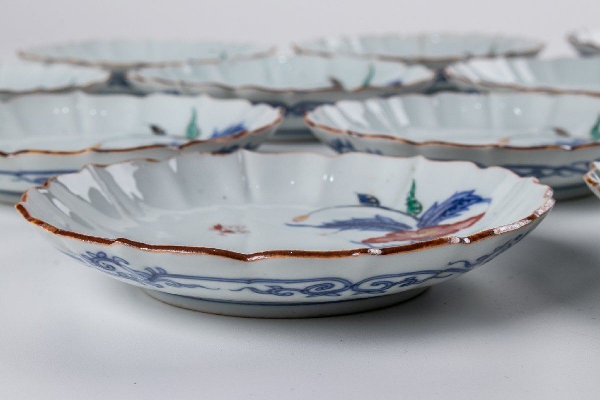 古伊万里 柿右衛門手輪花皿 8客 明治時代 F576A2 バラ売り可能です