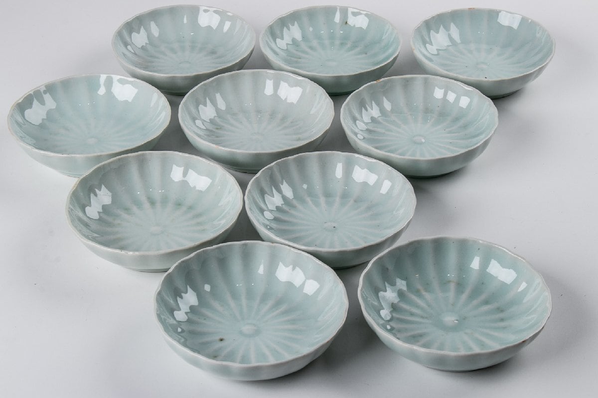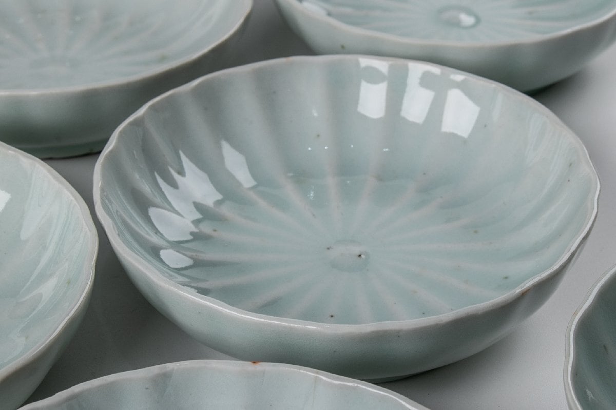 古伊万里 白磁陽刻輪花平鉢 10客 江戸後期 F575A バラ売り可能です