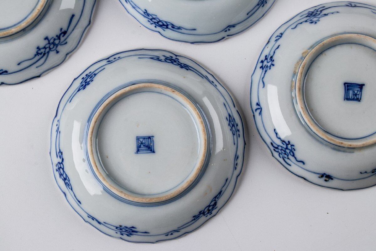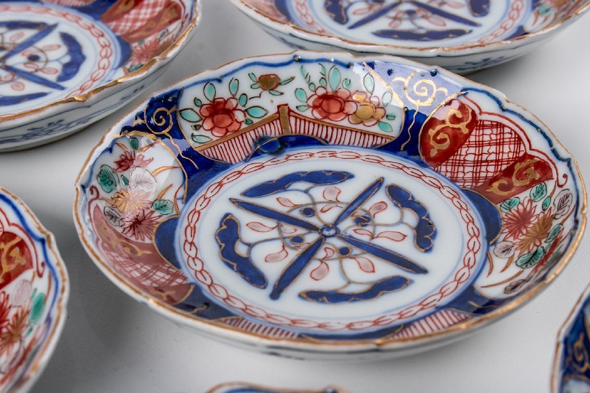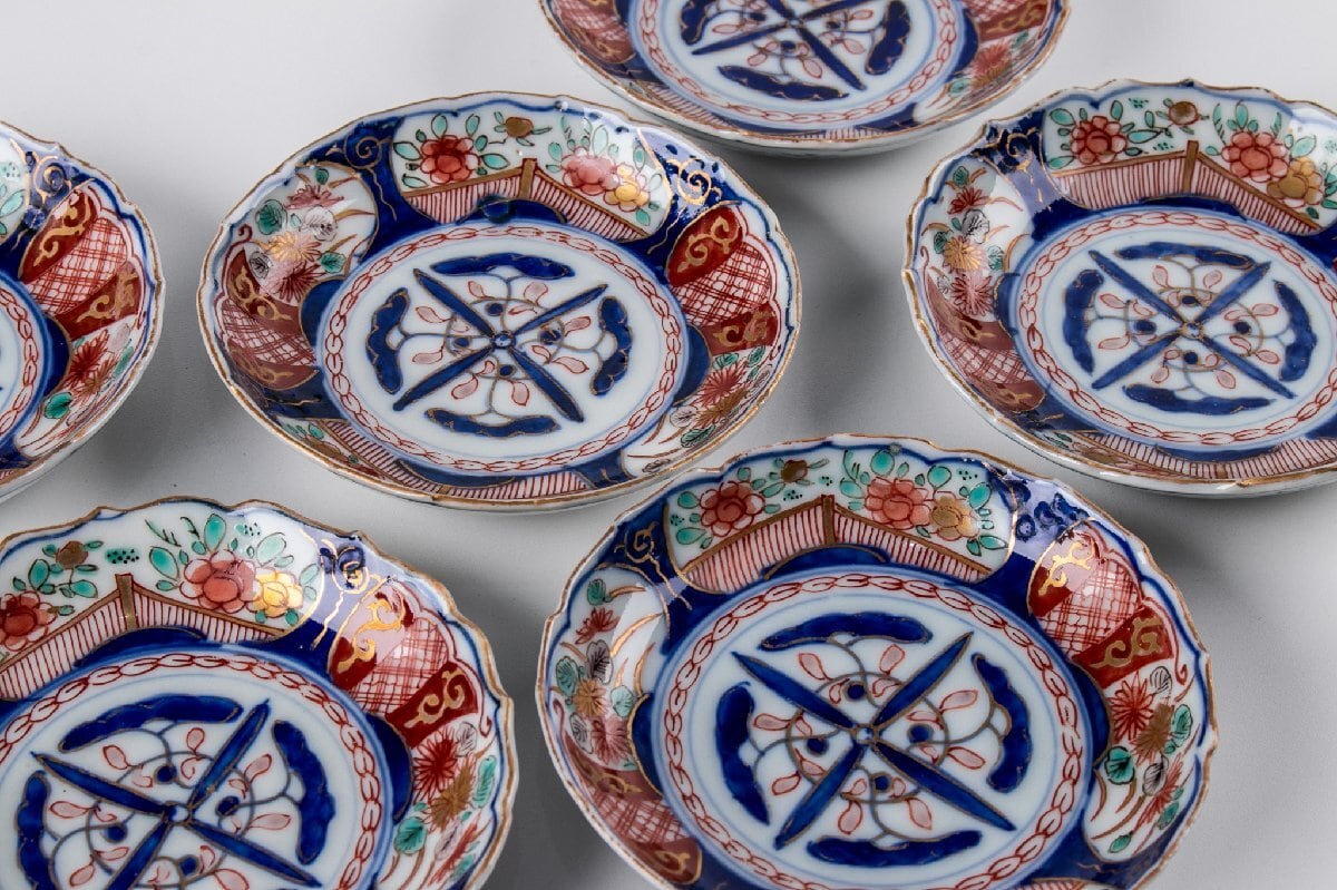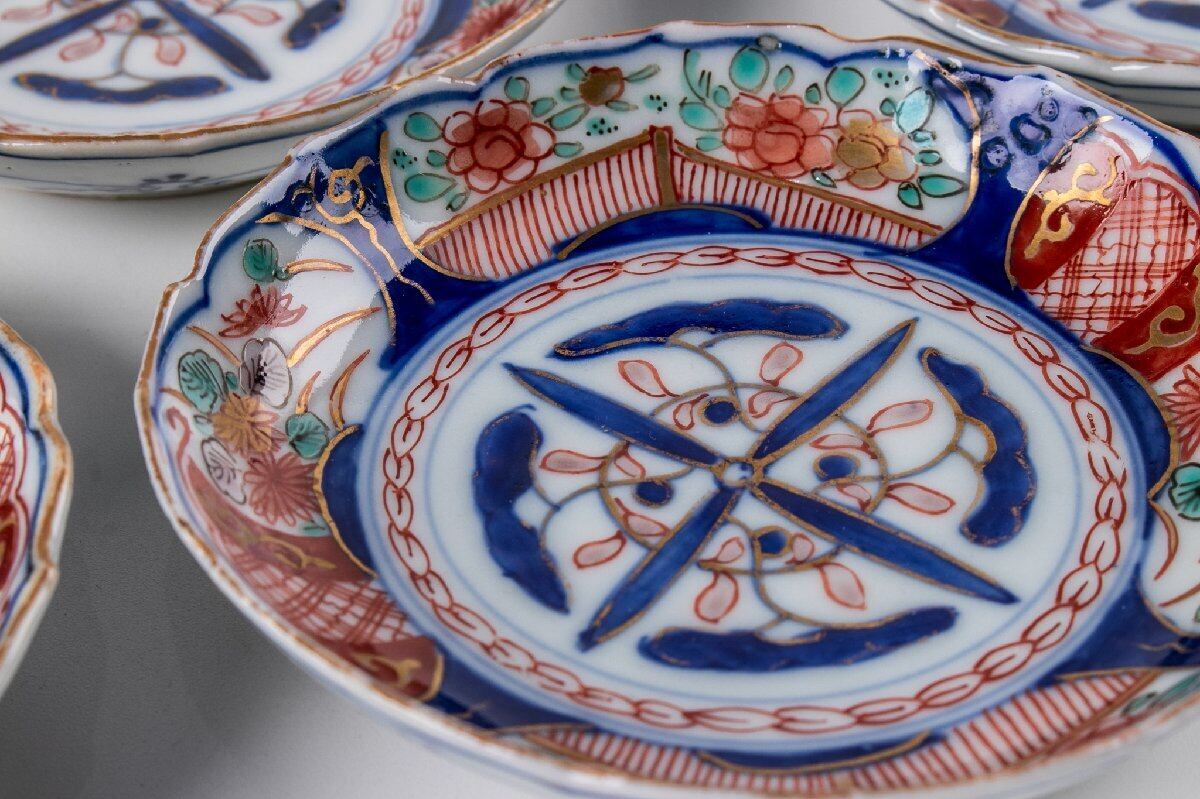 古伊万里 染錦草花文四寸皿 6客 明治時代 F565G バラ売り可能です